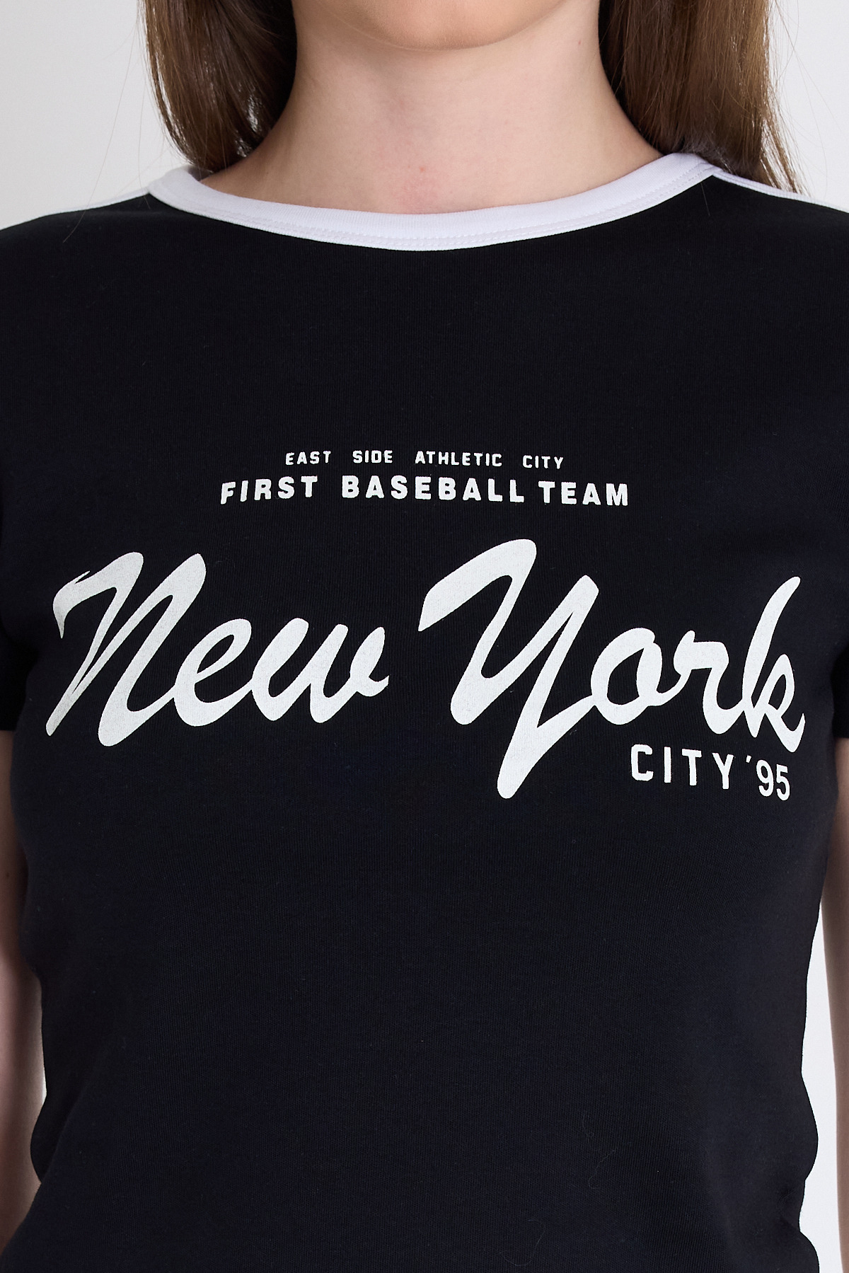 Siyah Yazı Baskılı Slim Fit Crop Tişört 6059