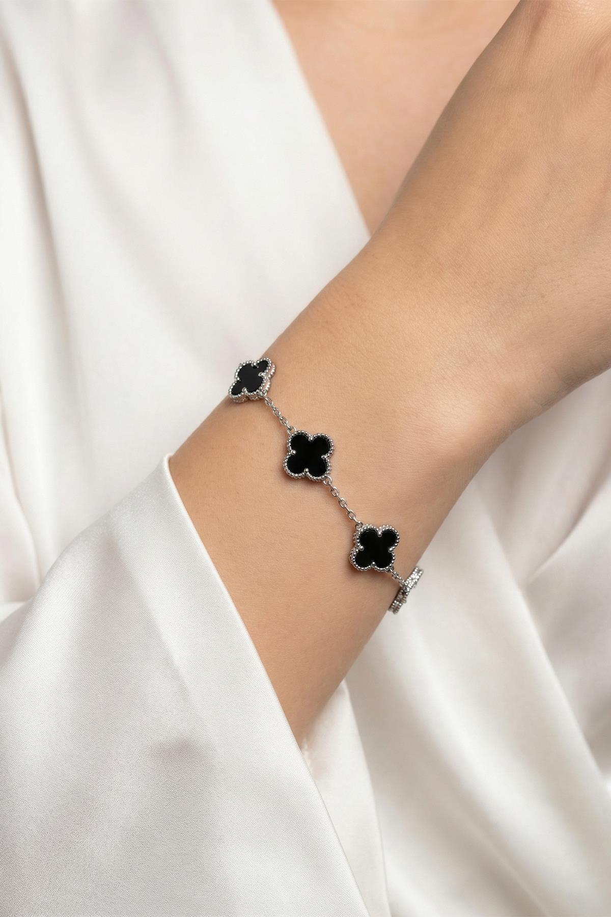 Siyah Yonca Figürlü Silver Renk Bileklik 0128