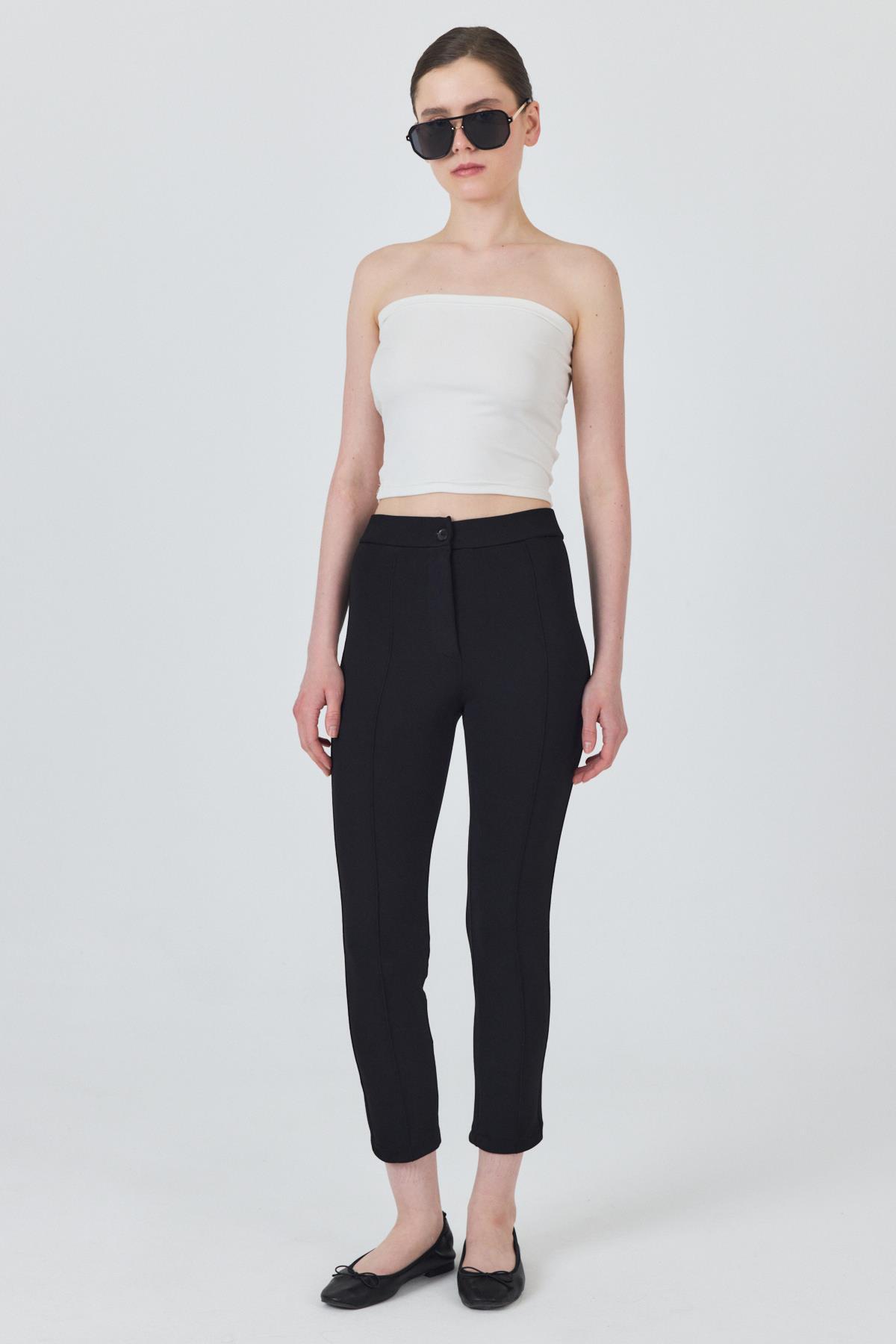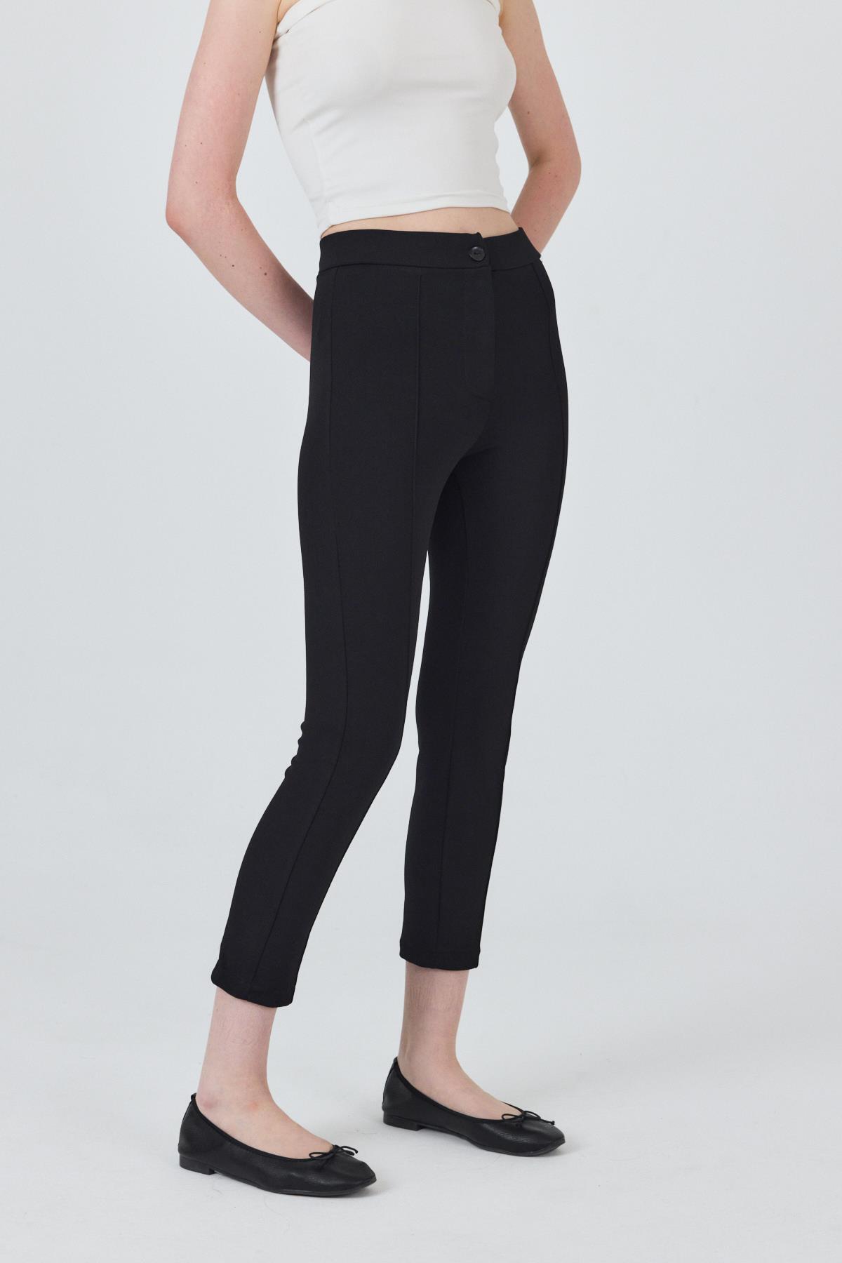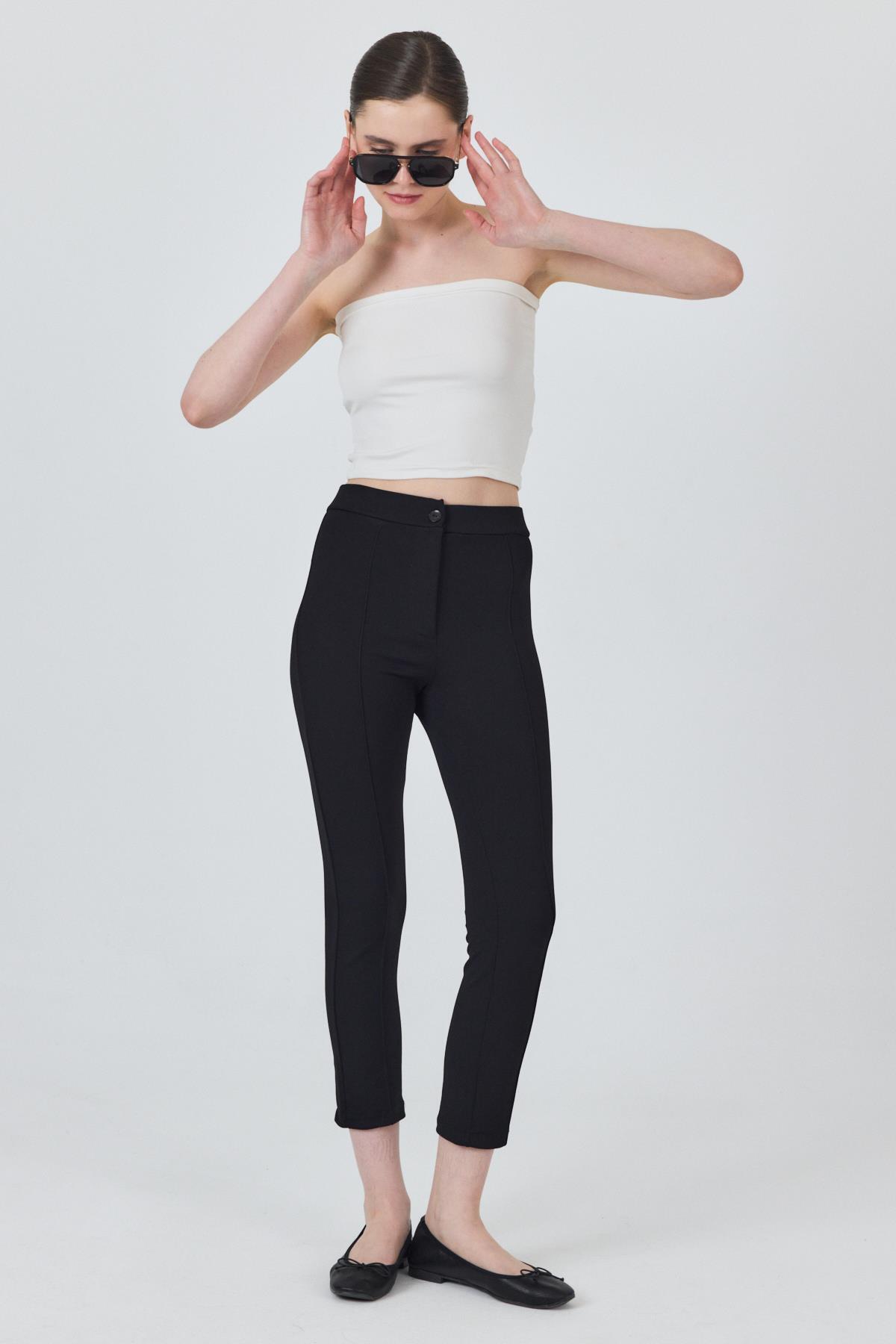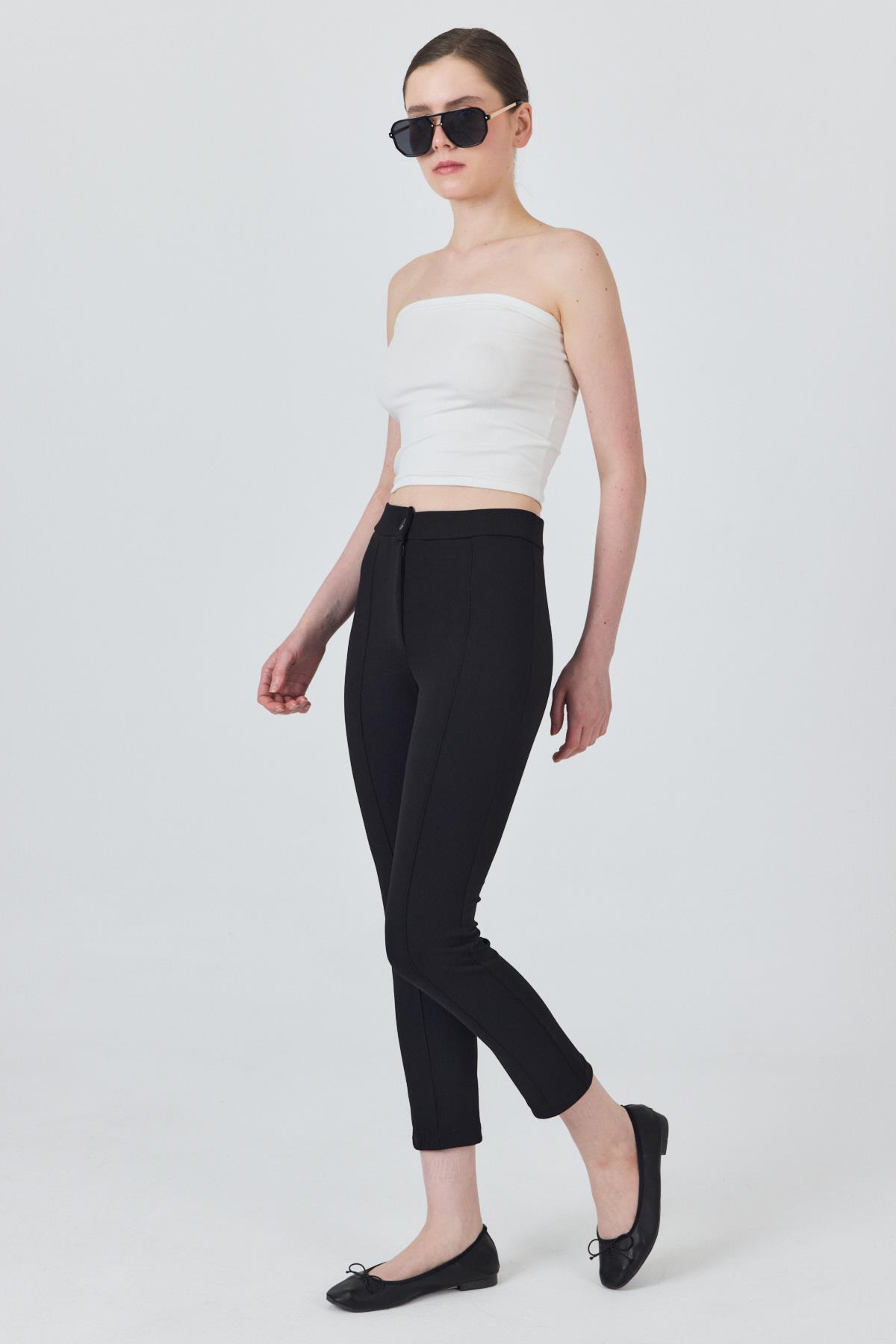 Siyah Yüksek Bel Nervür Dikiş Detaylı Tayt Pantolon 6875A