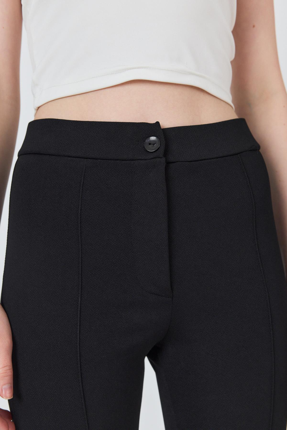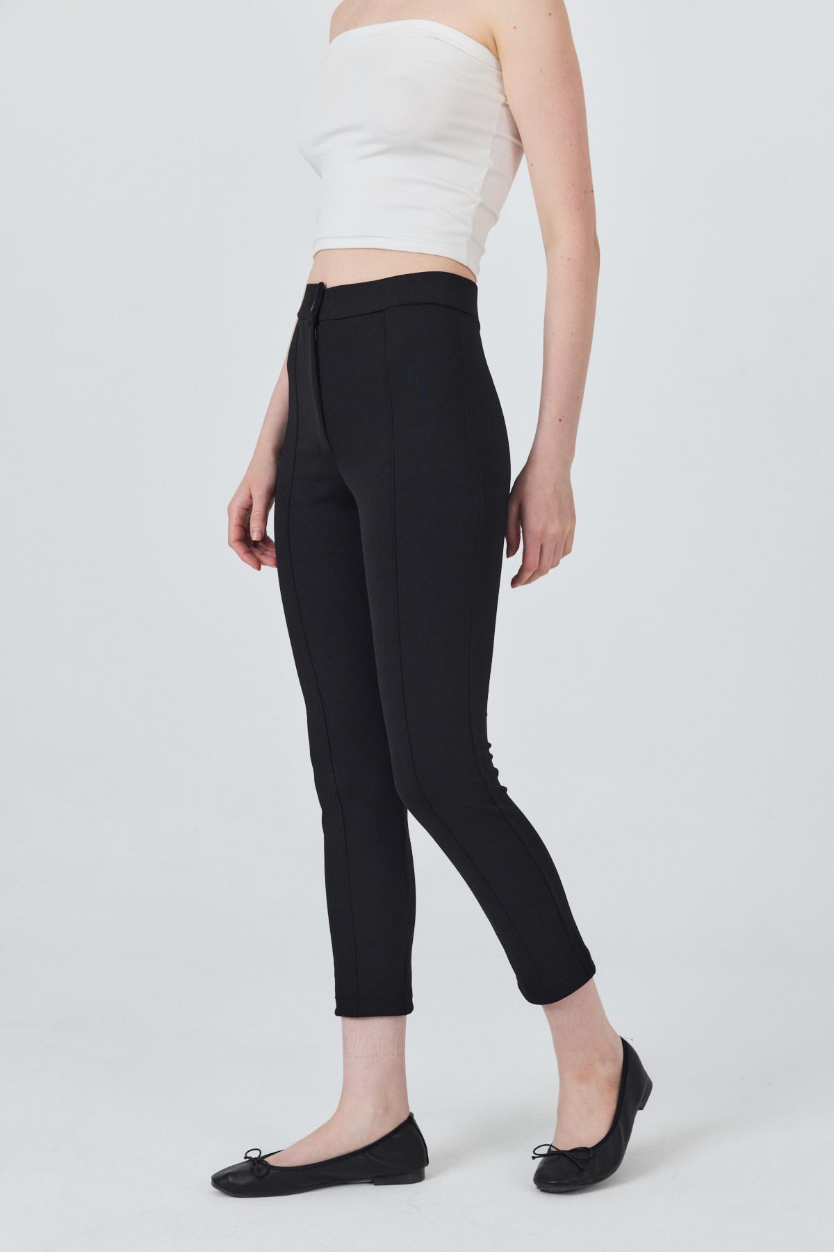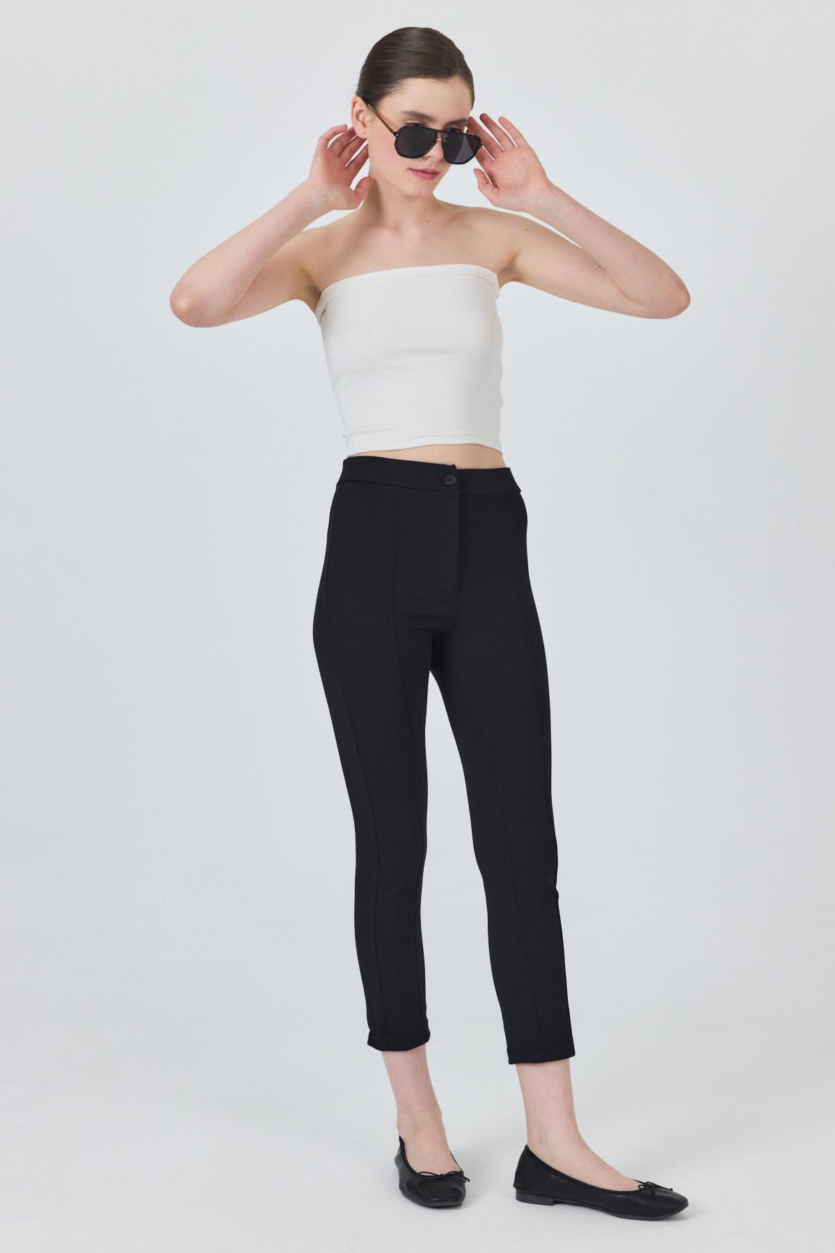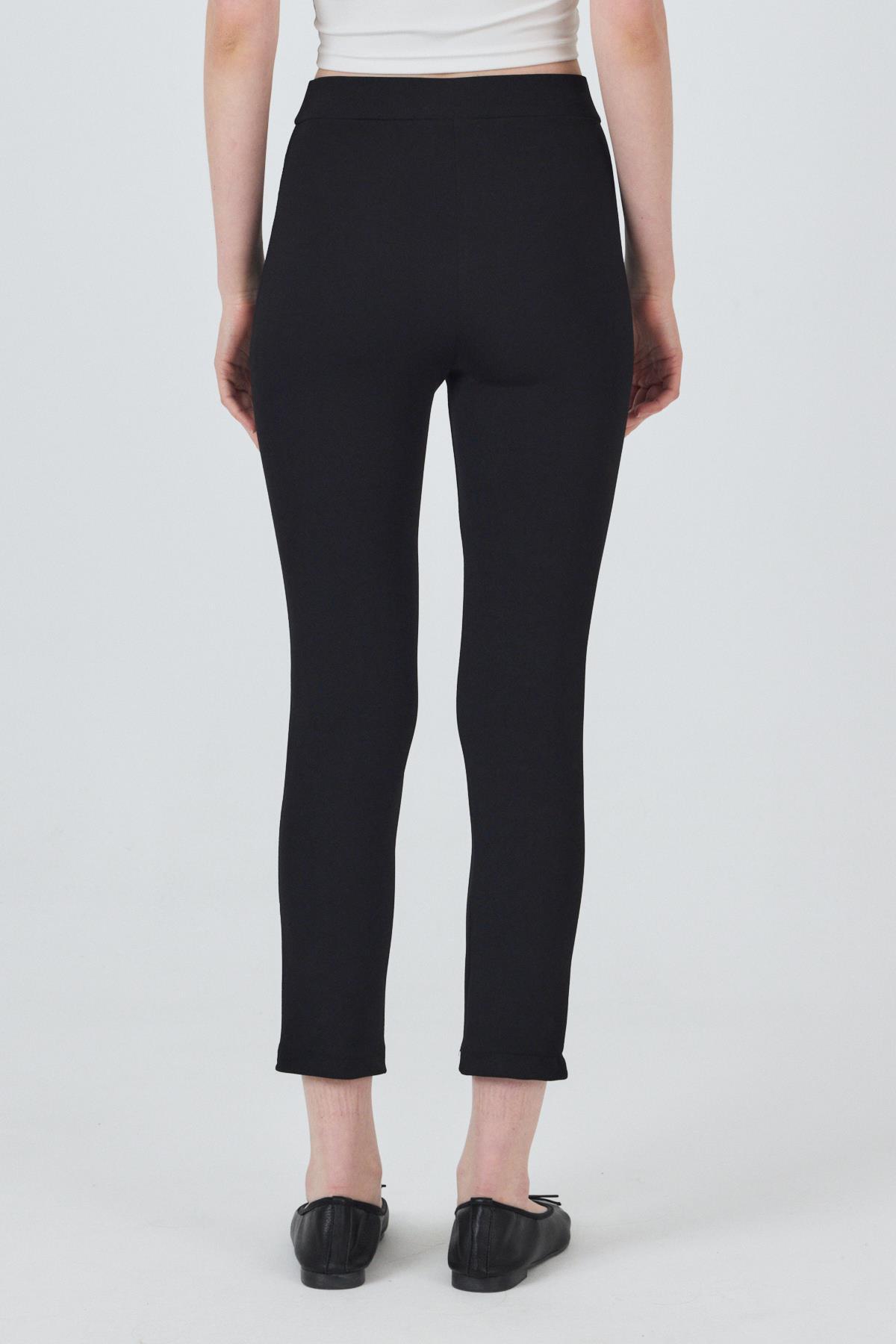 Siyah Yüksek Bel Nervür Dikiş Detaylı Tayt Pantolon 6875A
