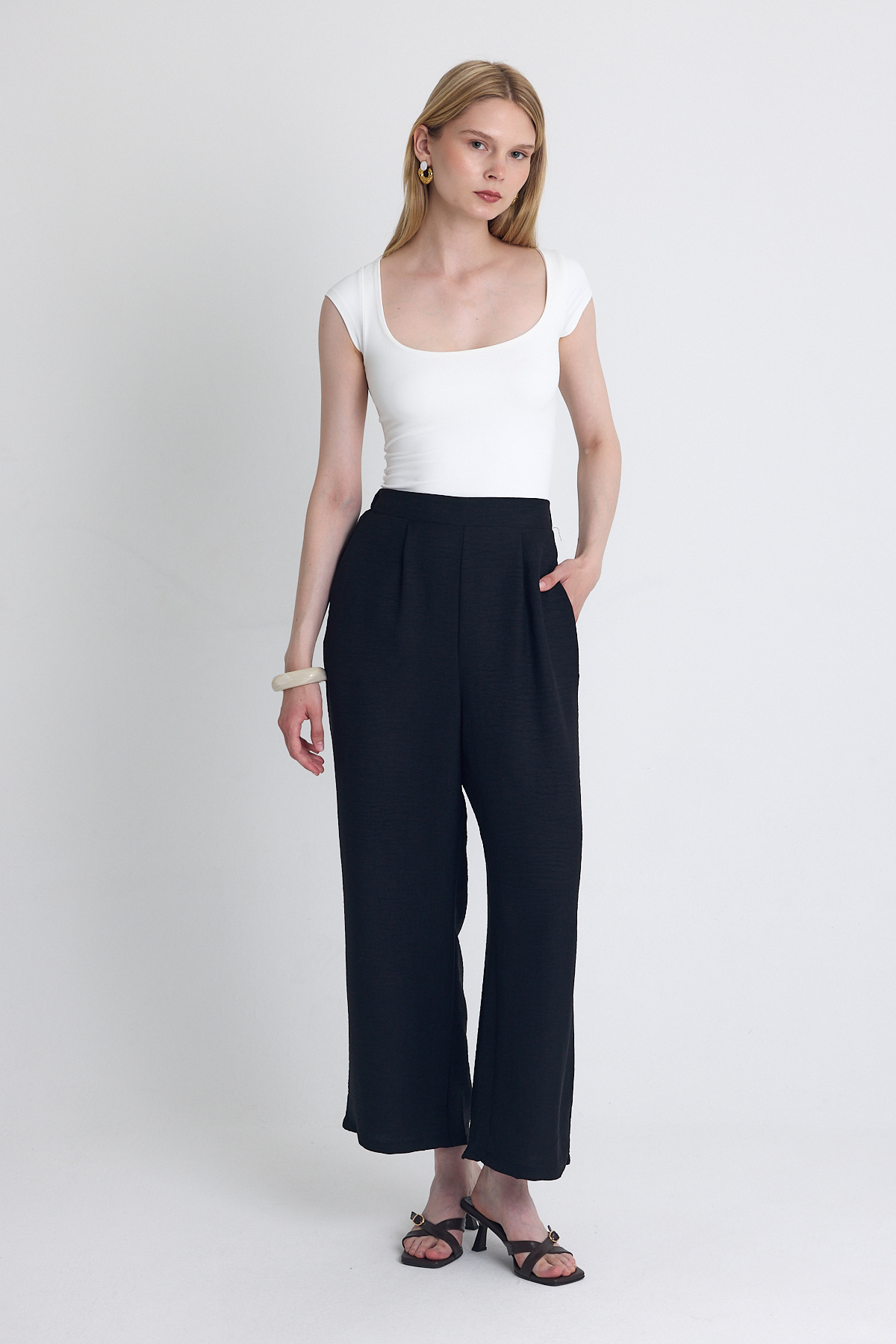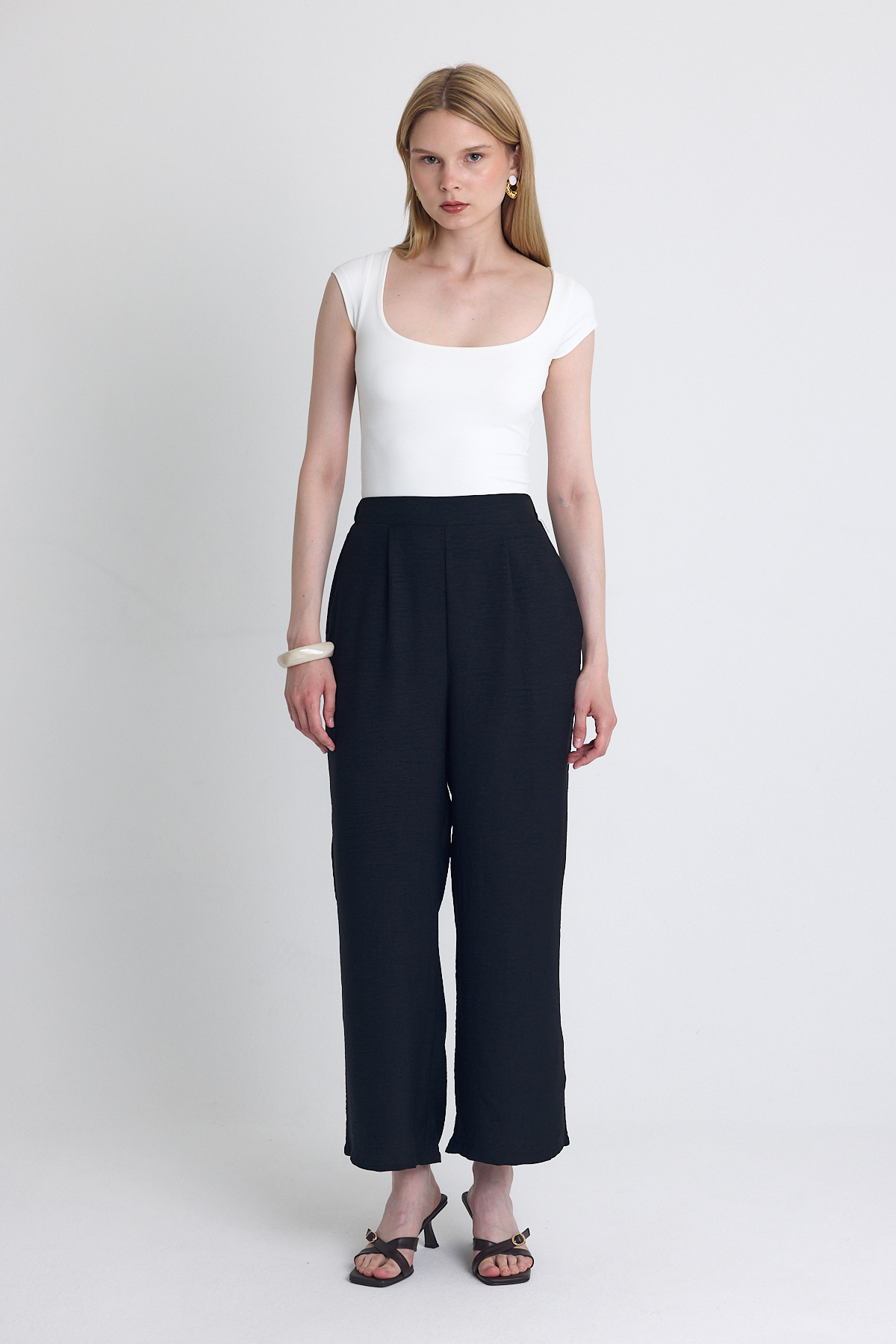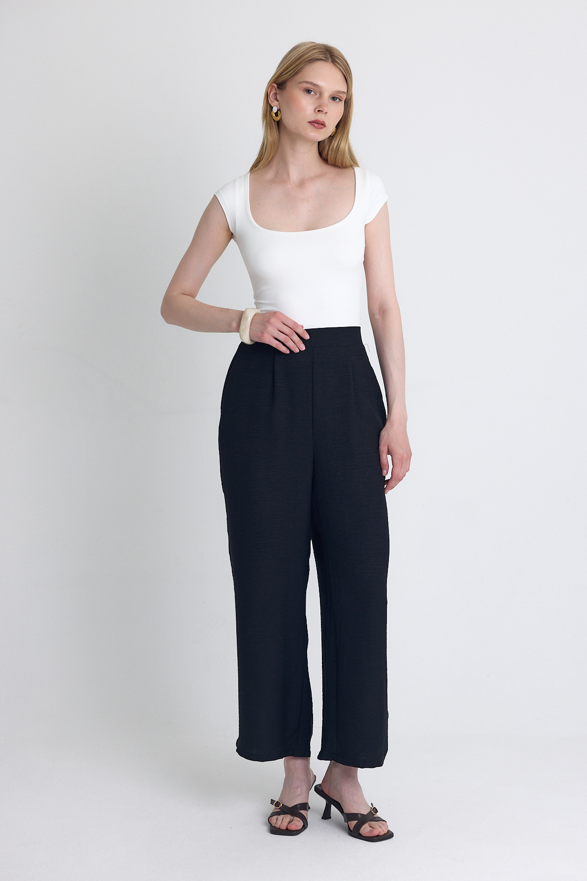 Siyah Pileli Palazzo Pantolon 3871 - RAYS Siyah Pileli Palazzo Pantolon 3871 - RAYS (1)