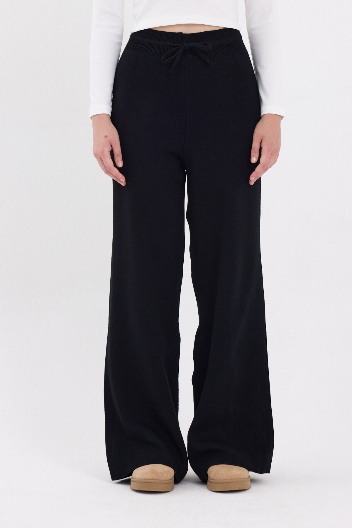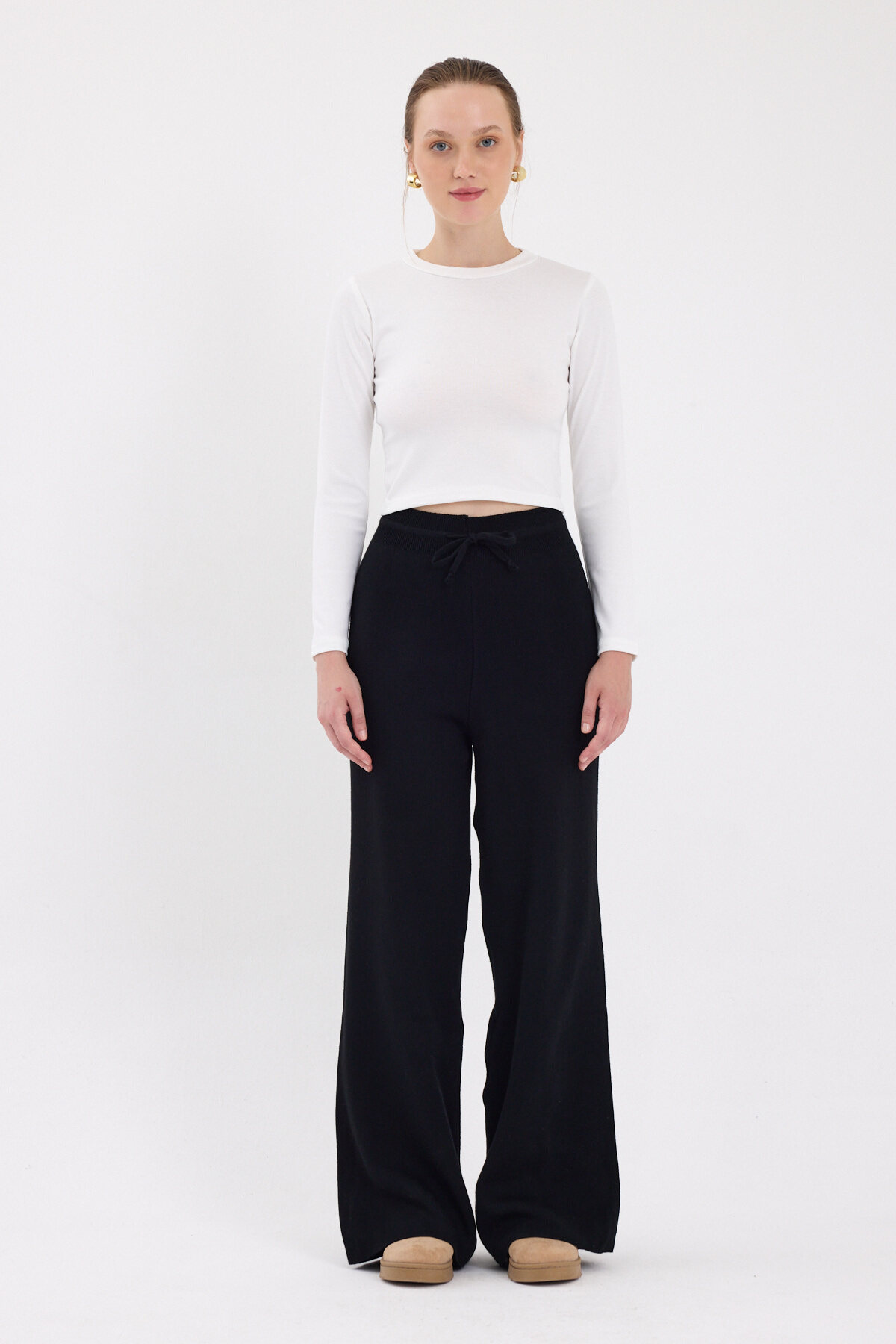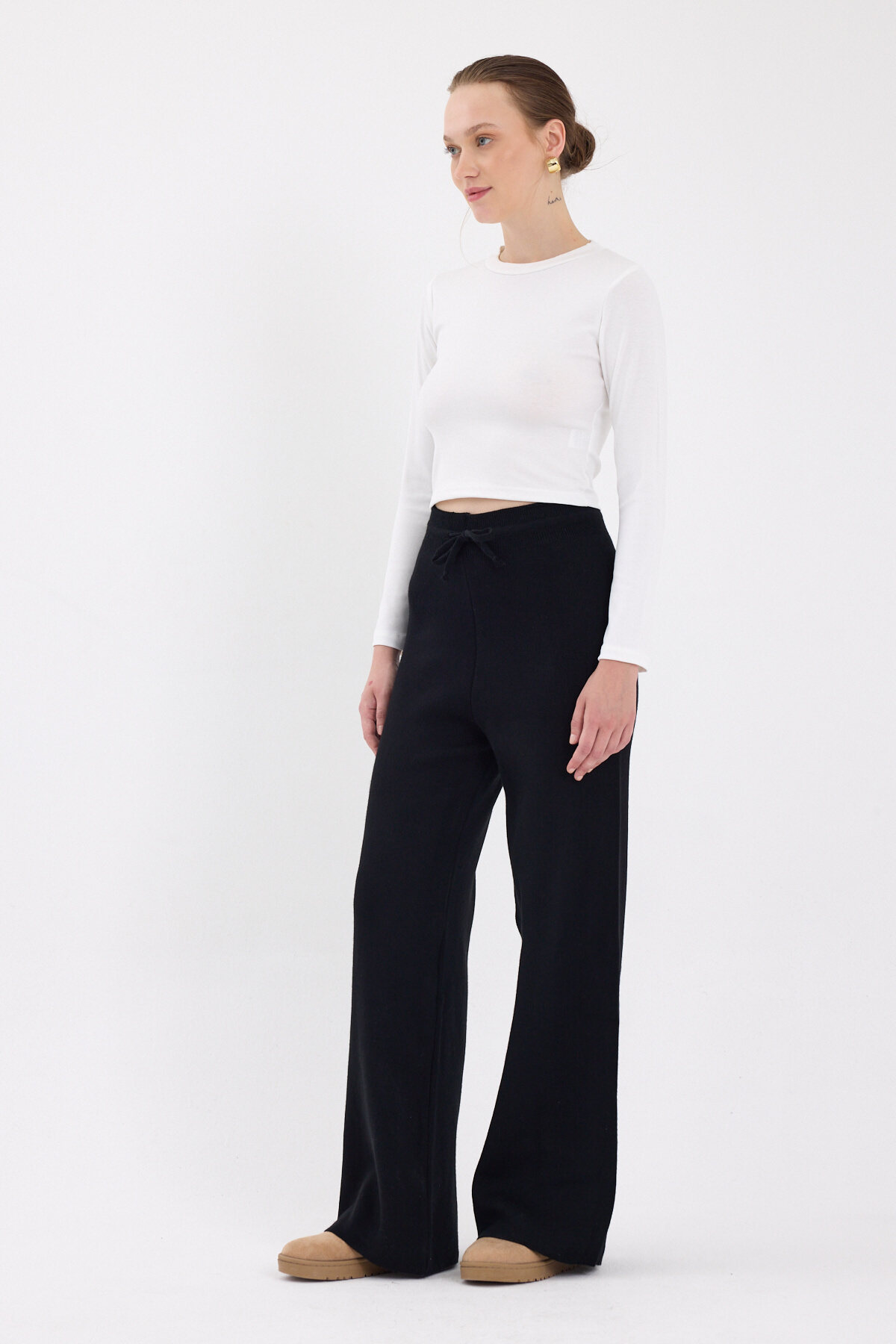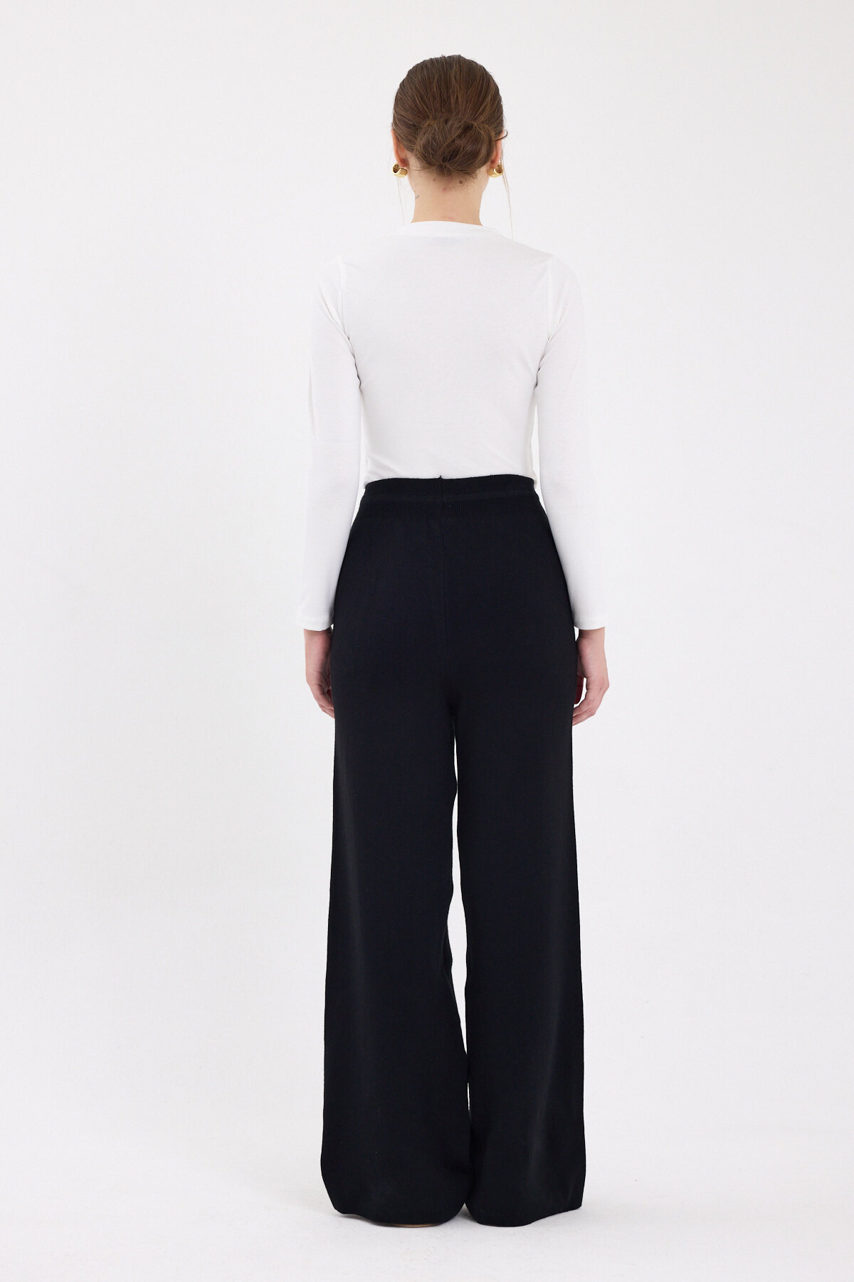Siyah Yüksek Bel Triko Palazzo Kadın Pantolon 2251