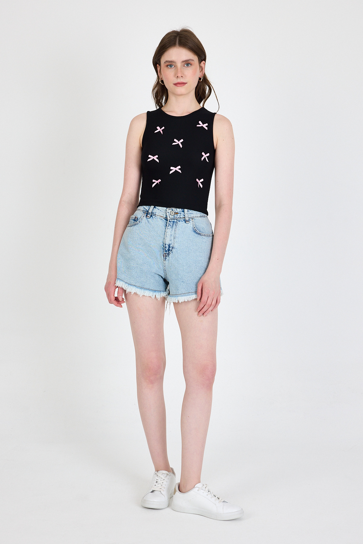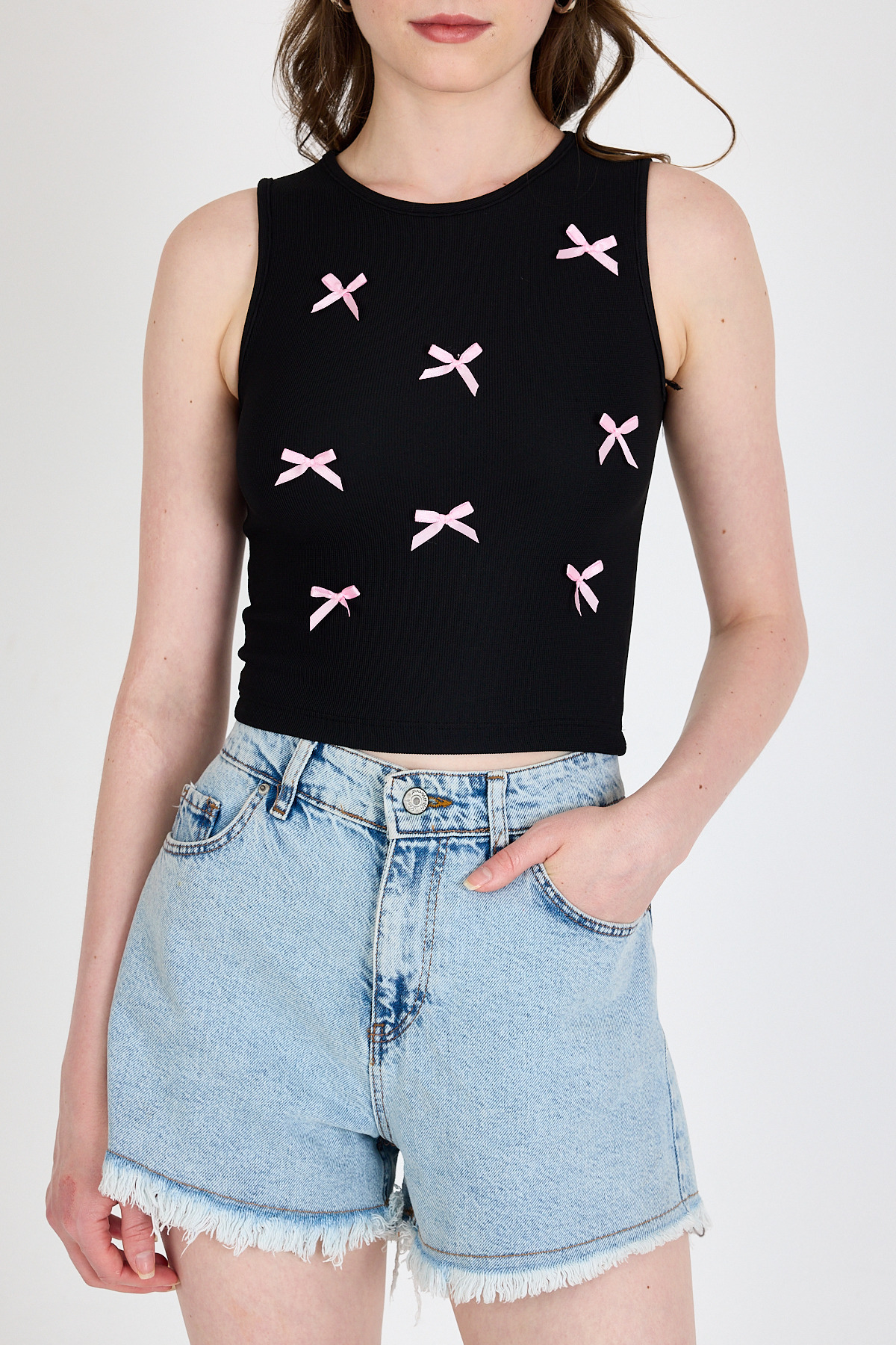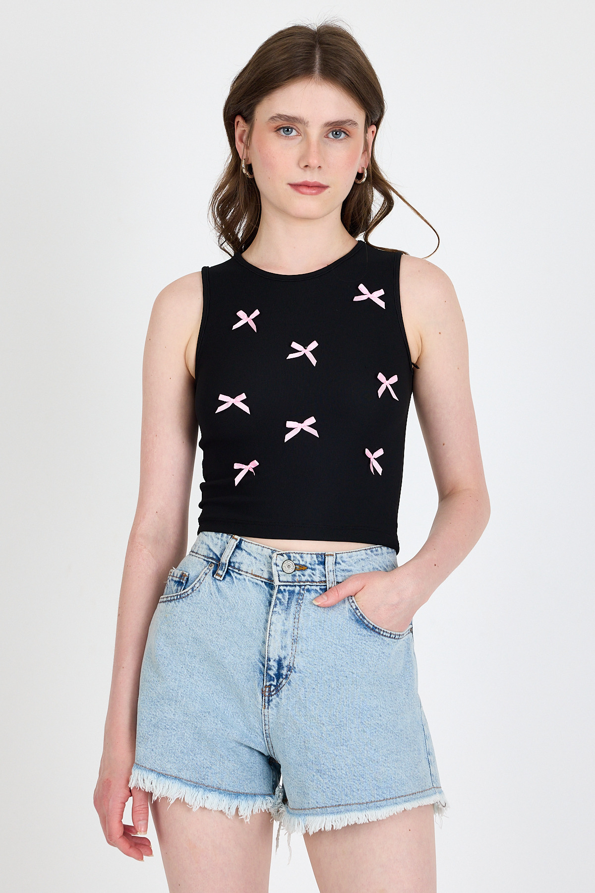 Syah Fiyonk İşlemeli Crop Örme Atlet 0849