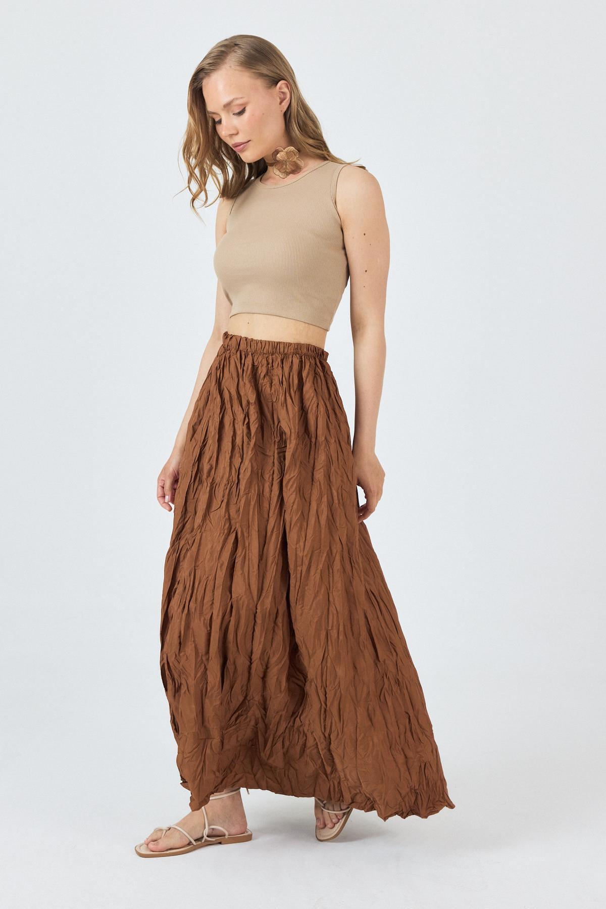 Taba Bel Lastikli Kırışık Kumaş Etek 3483