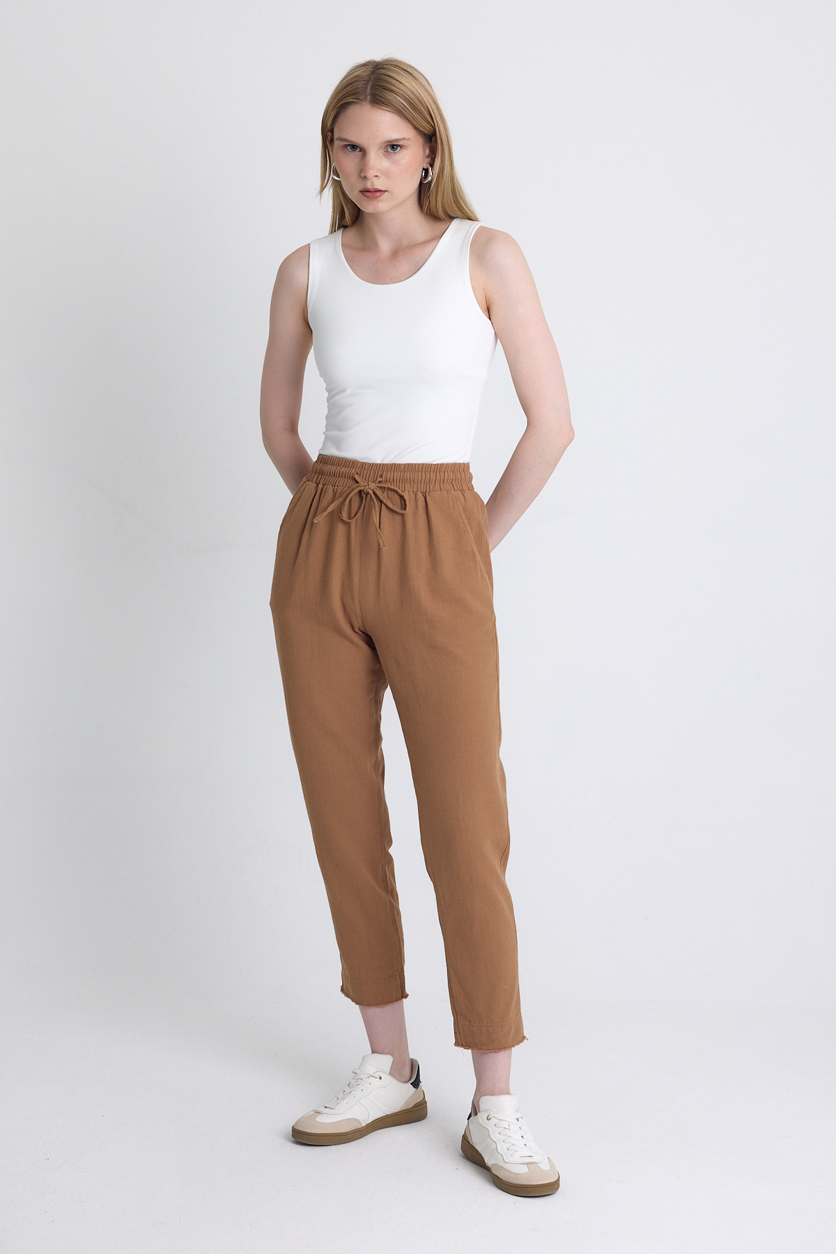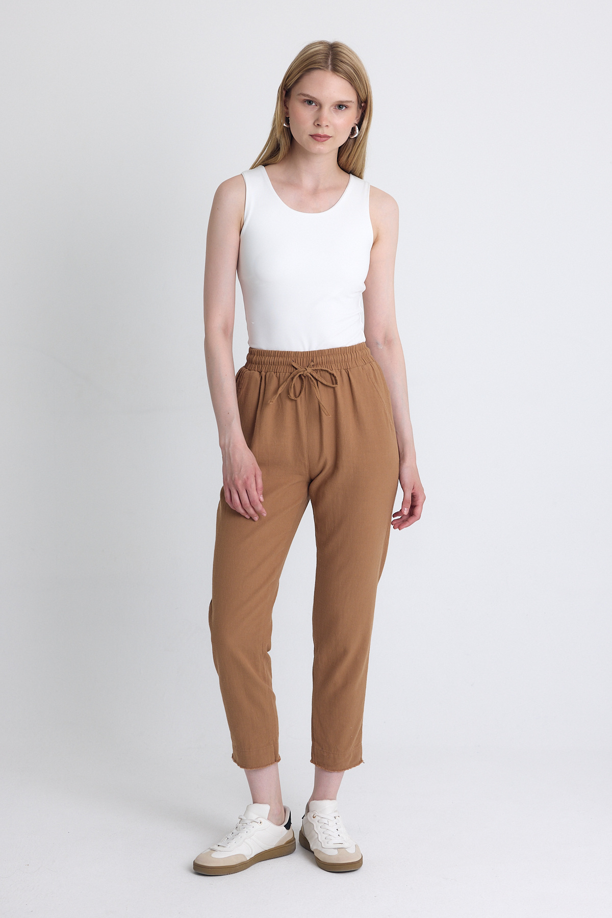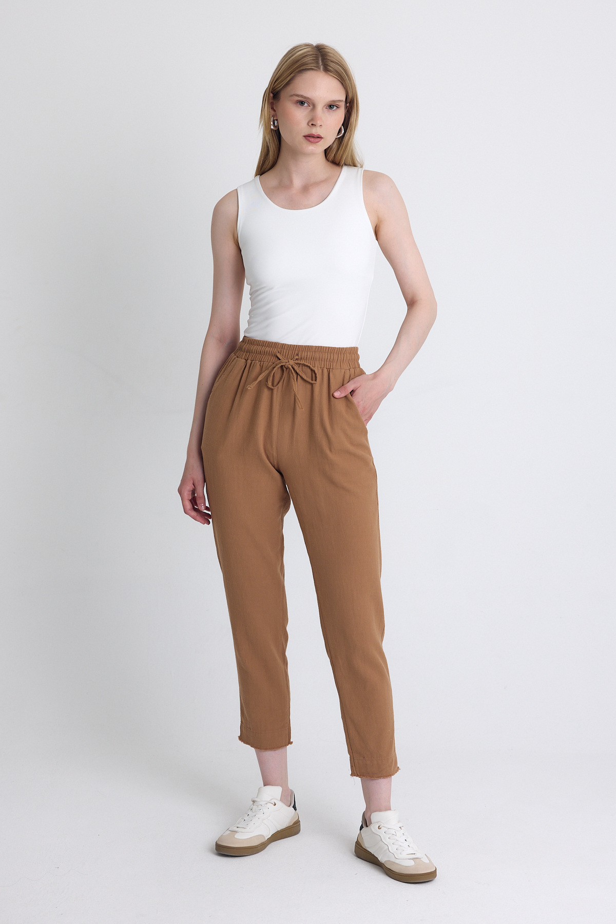 Taba Paça Püskül Detaylı Cepli Lastikli Pantolon 4228