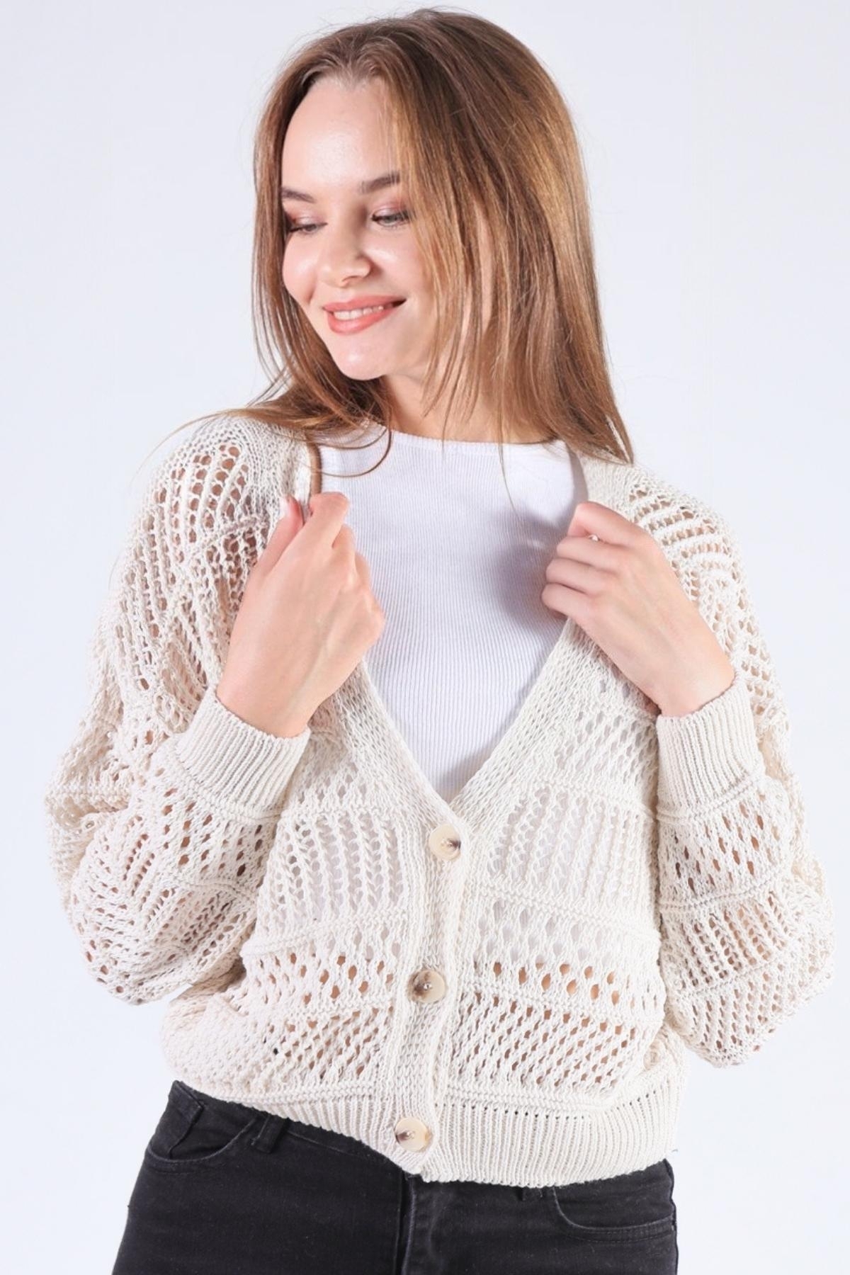Tahta Düğmeli Bayan Hırka - 1520 Taş