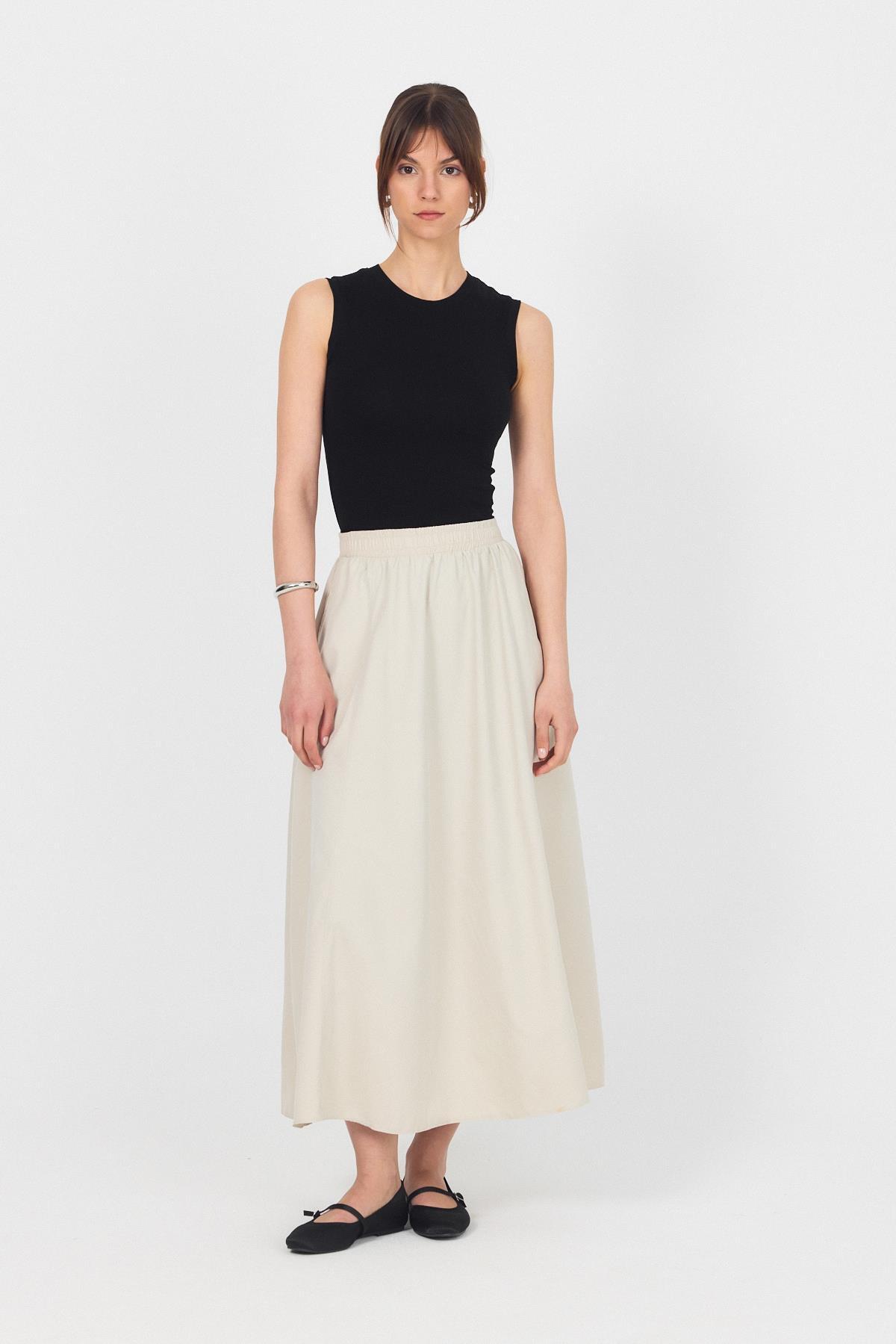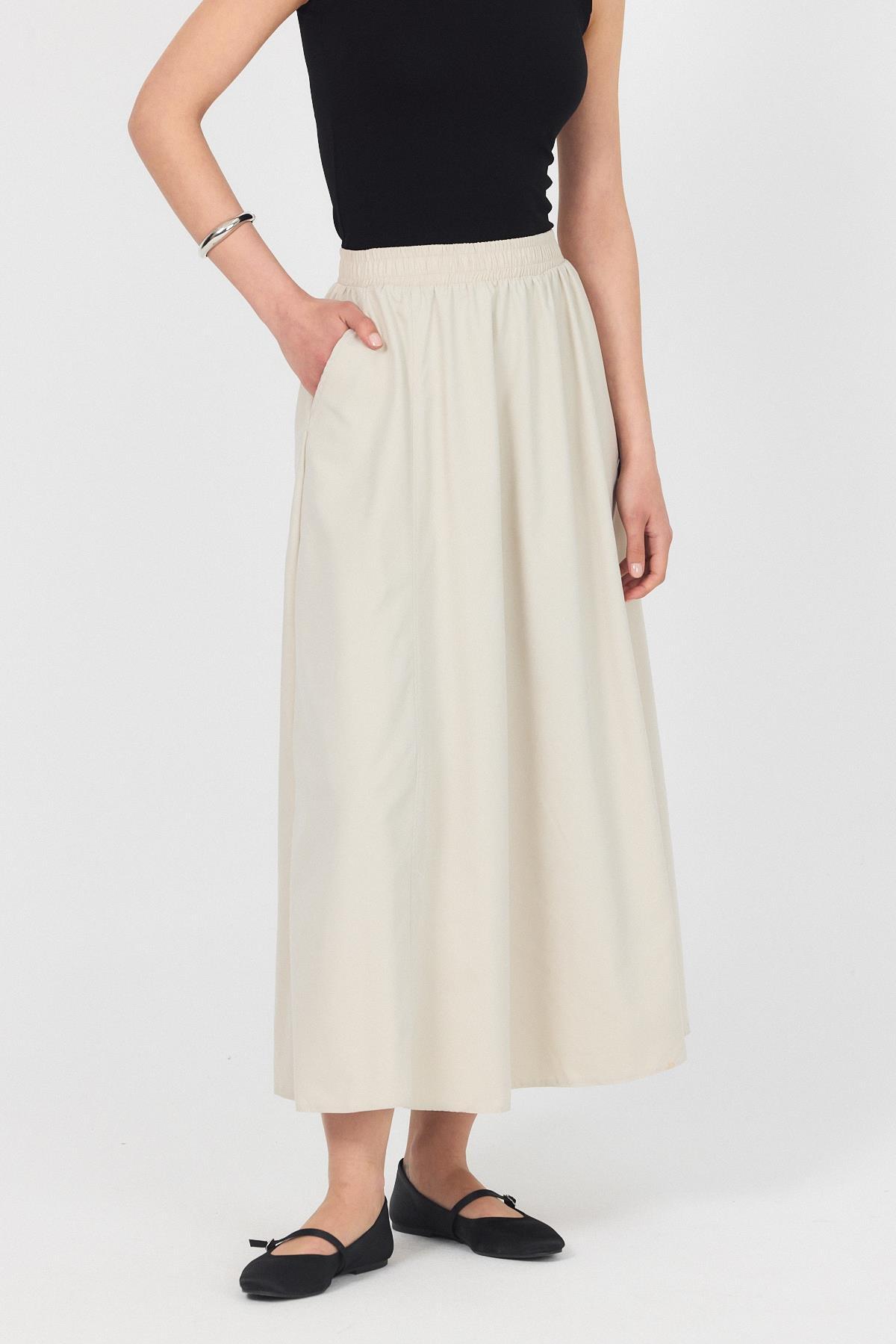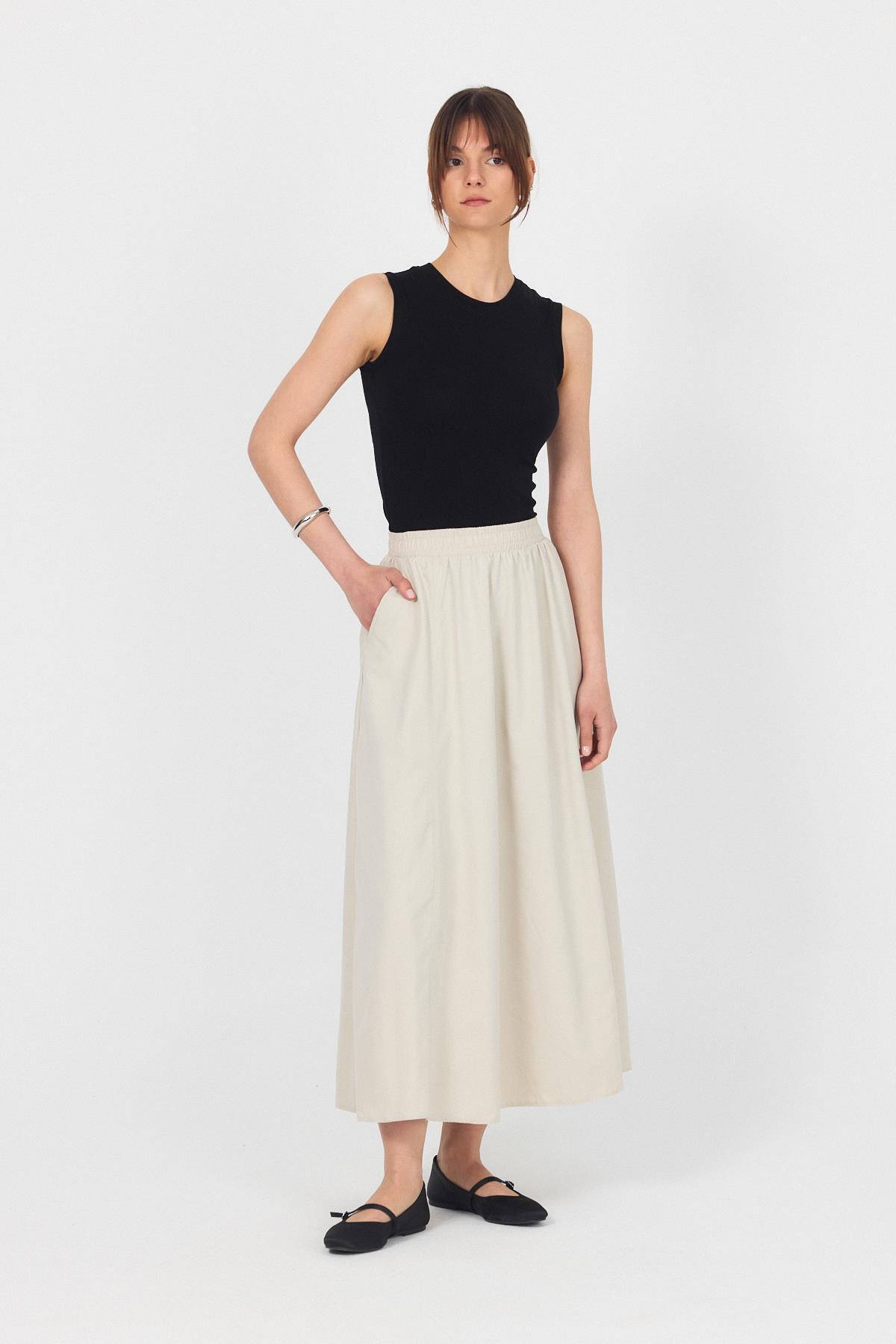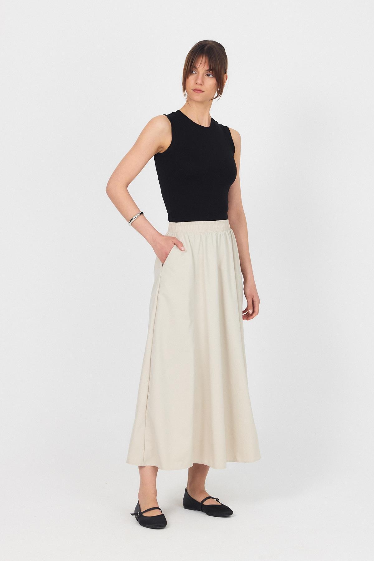 Taş Bel Lastikli Cepli Kloş Etek 4747A
