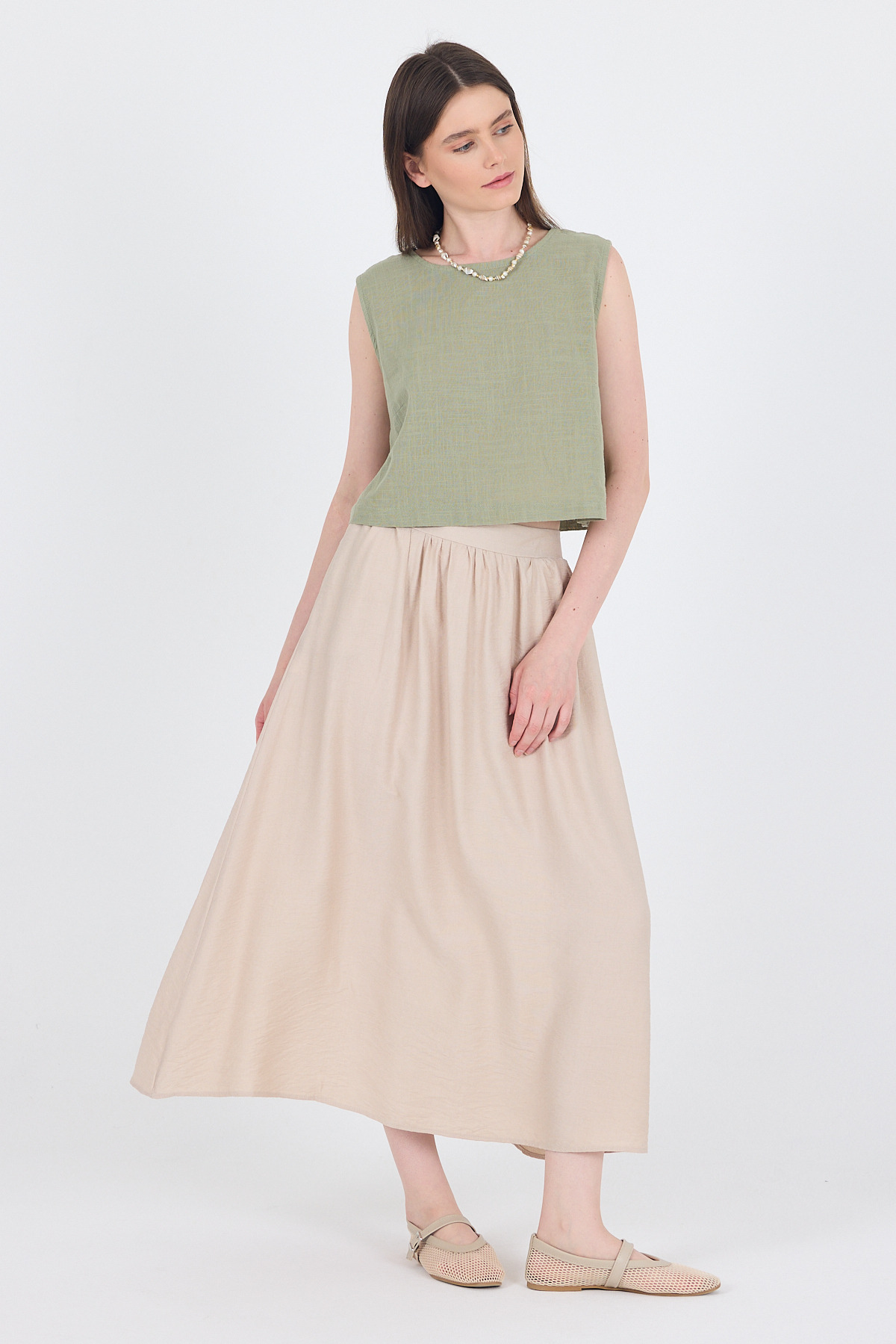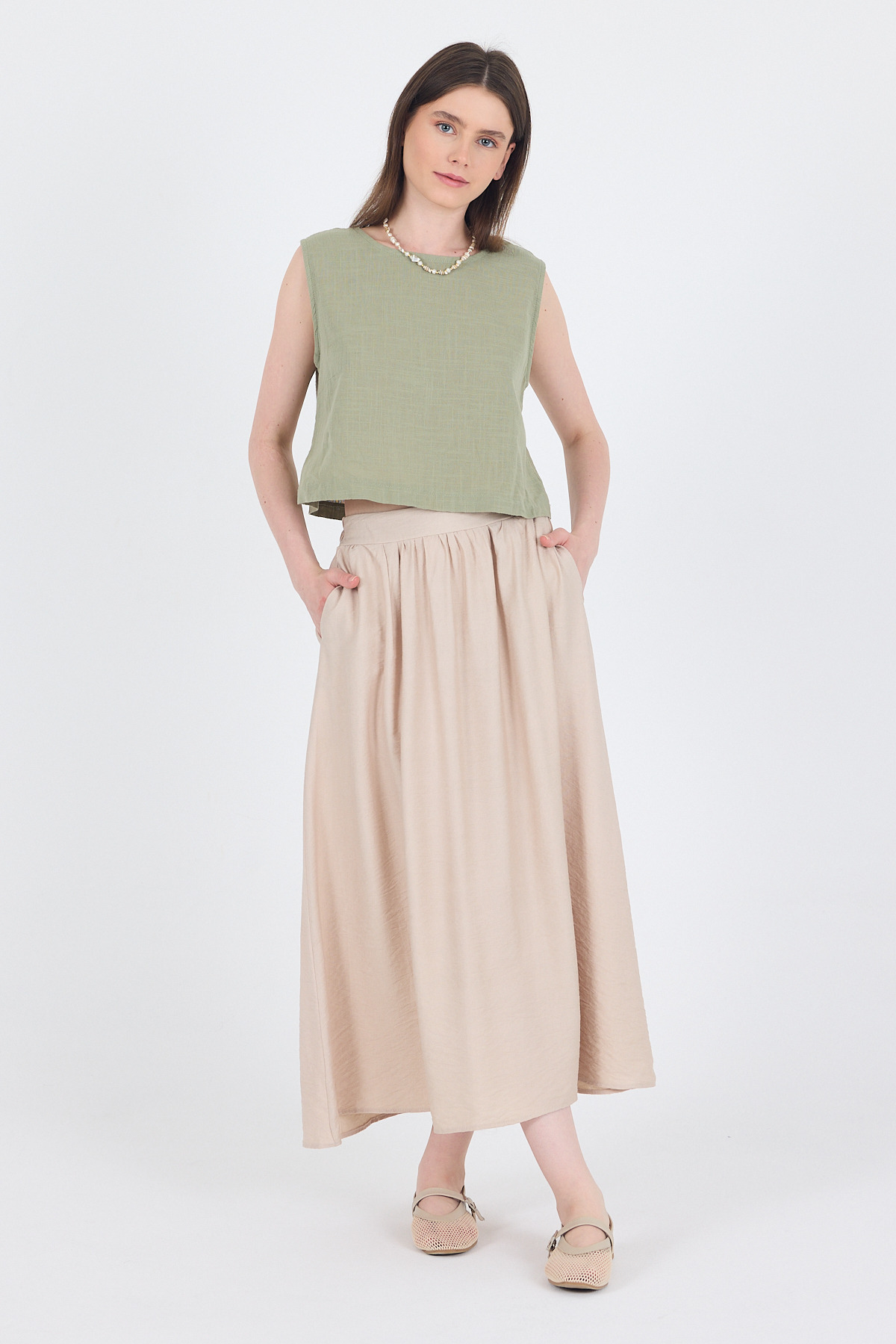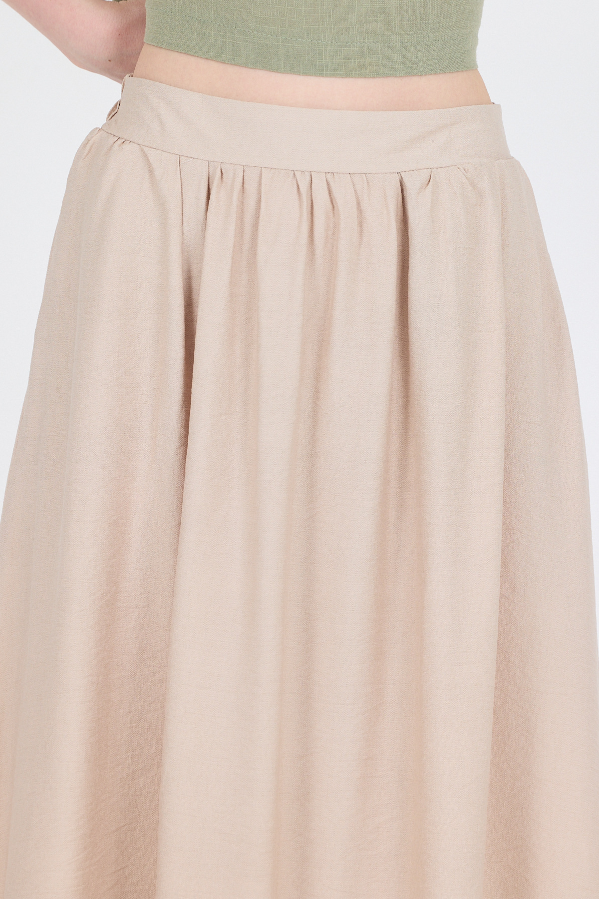 Taş Keten Görünümlü Cep Detaylı Midi Etek 2344