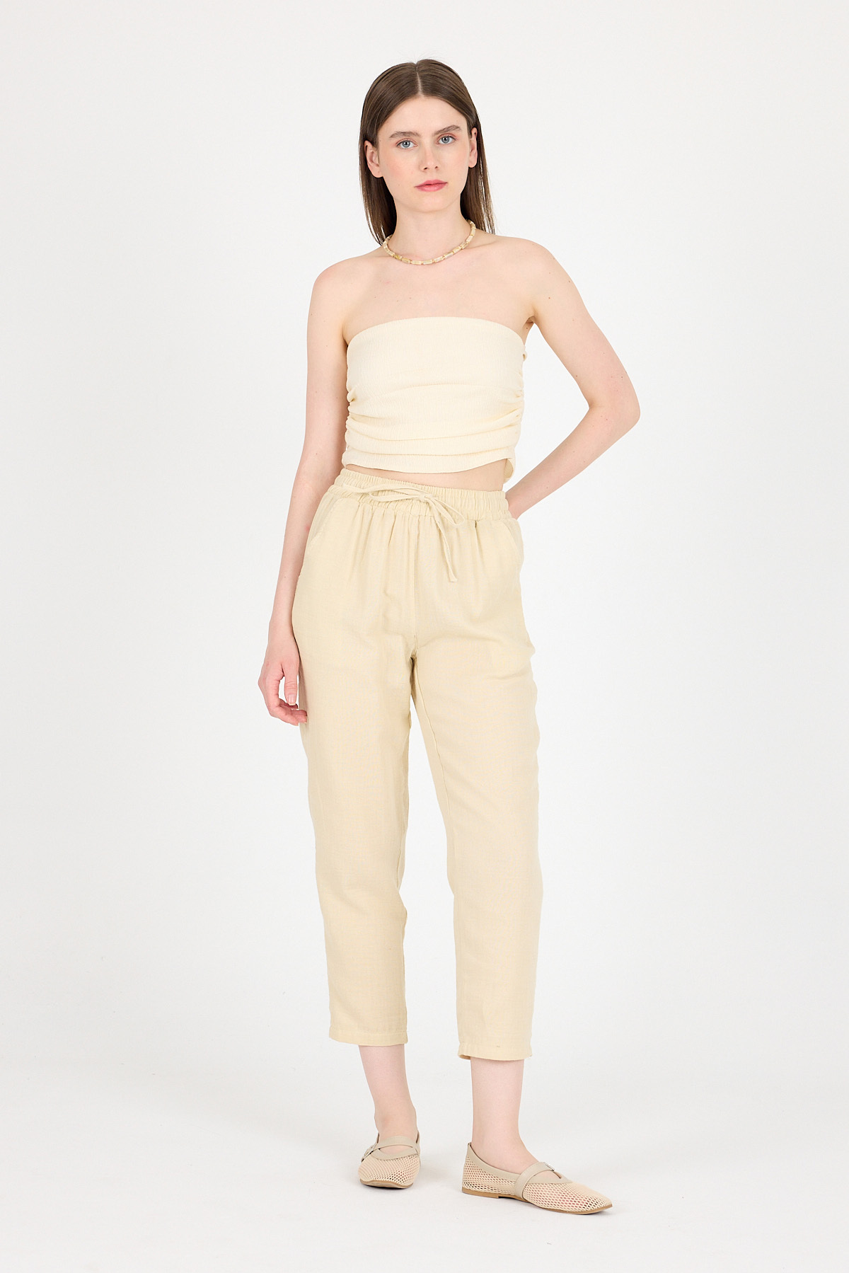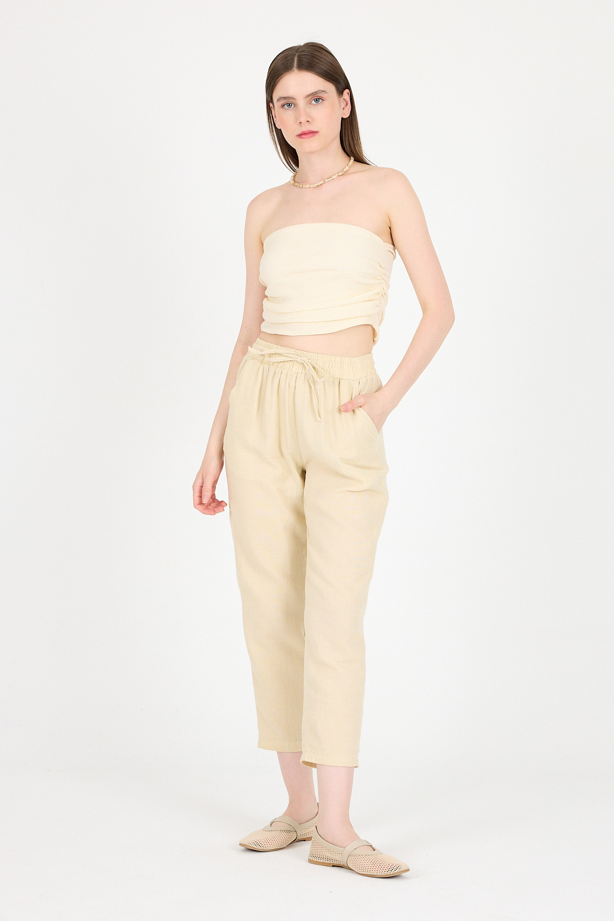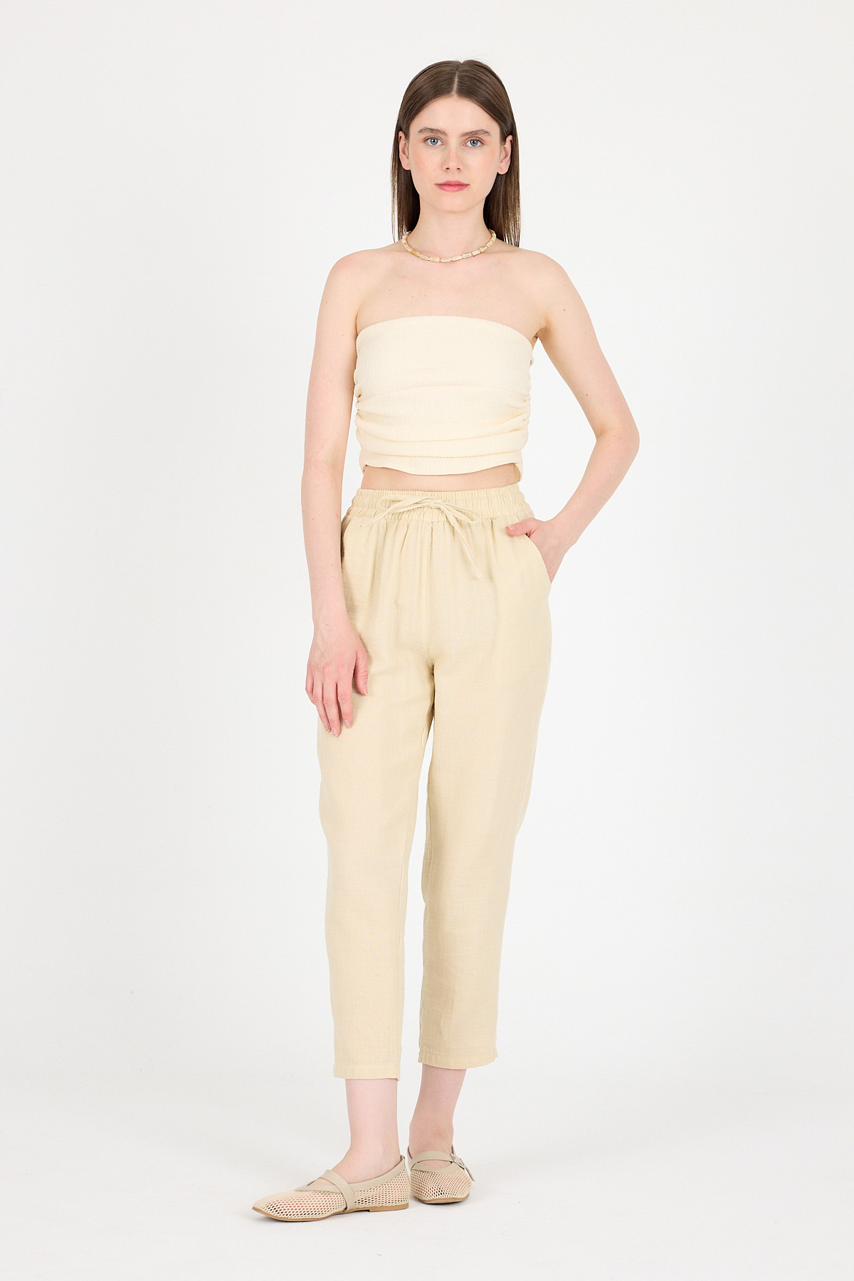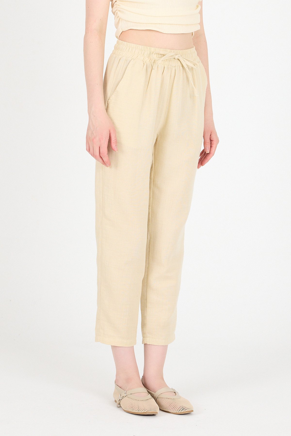 Taş Müslin %100 Pamuk Beli Lastikli Pantolon 8055A
