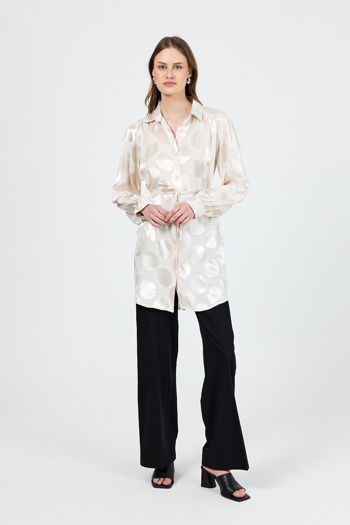 Taş Puantiye Desen İp Bağlama Detaylı Tunik 4690A