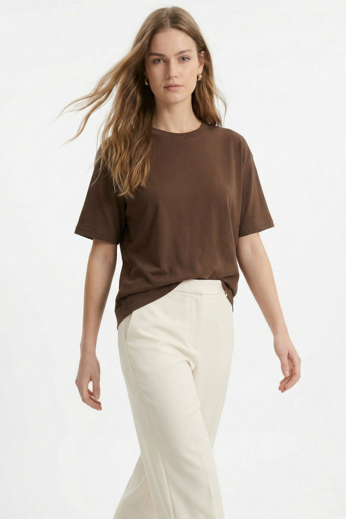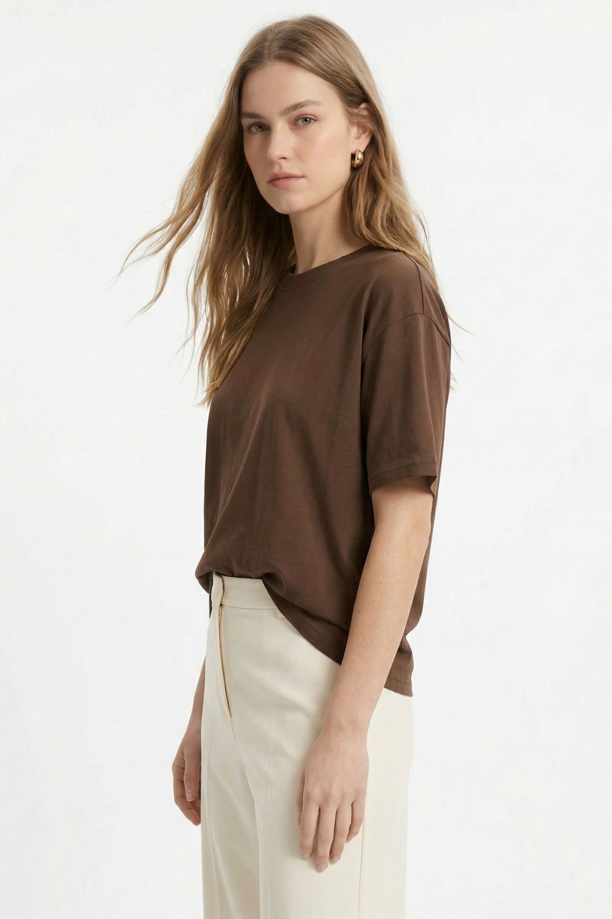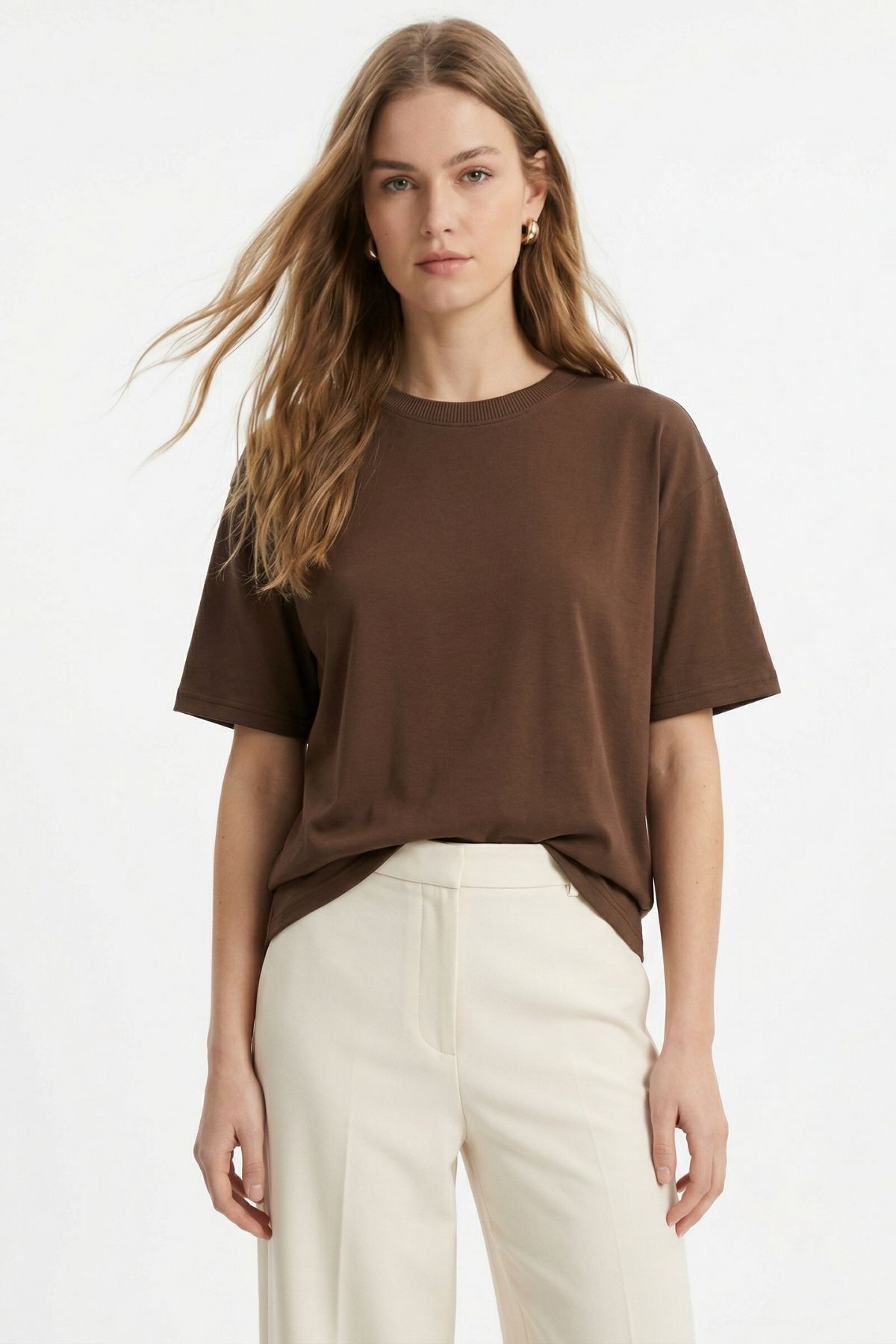 TCR-1633 Oversize Tişört Kahve