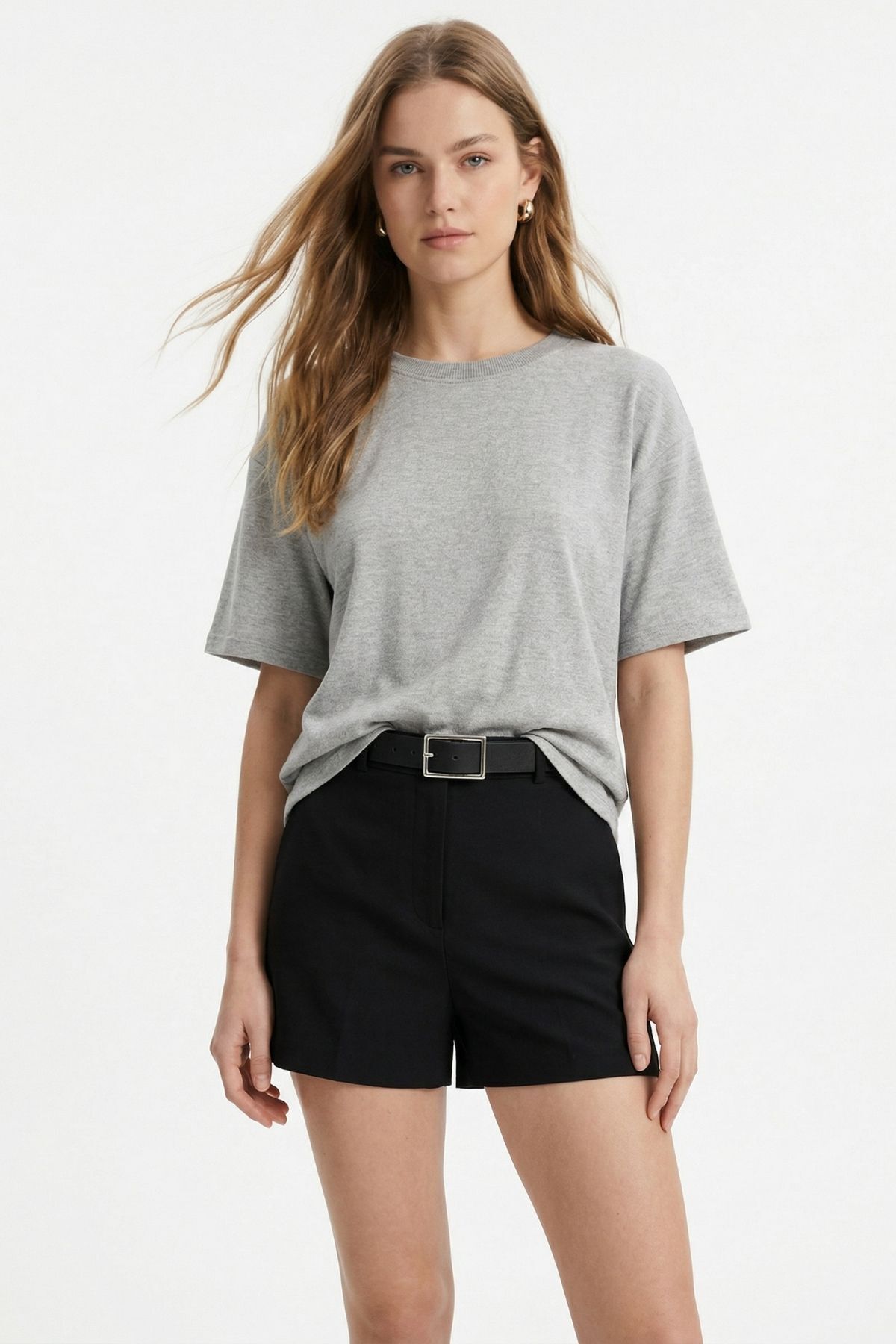 Siyah Taşlı V Yaka Kısa Kol Tişört 1761