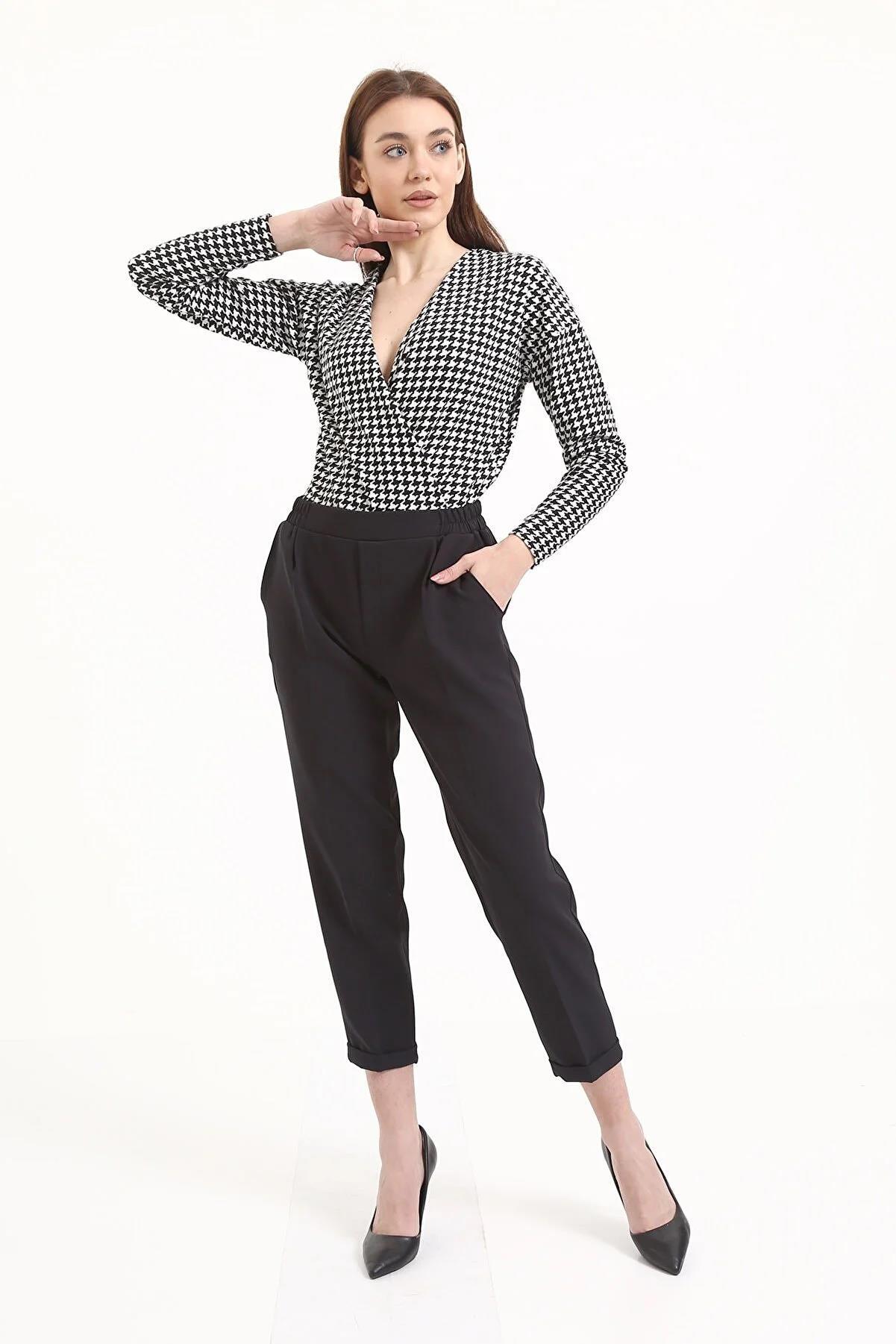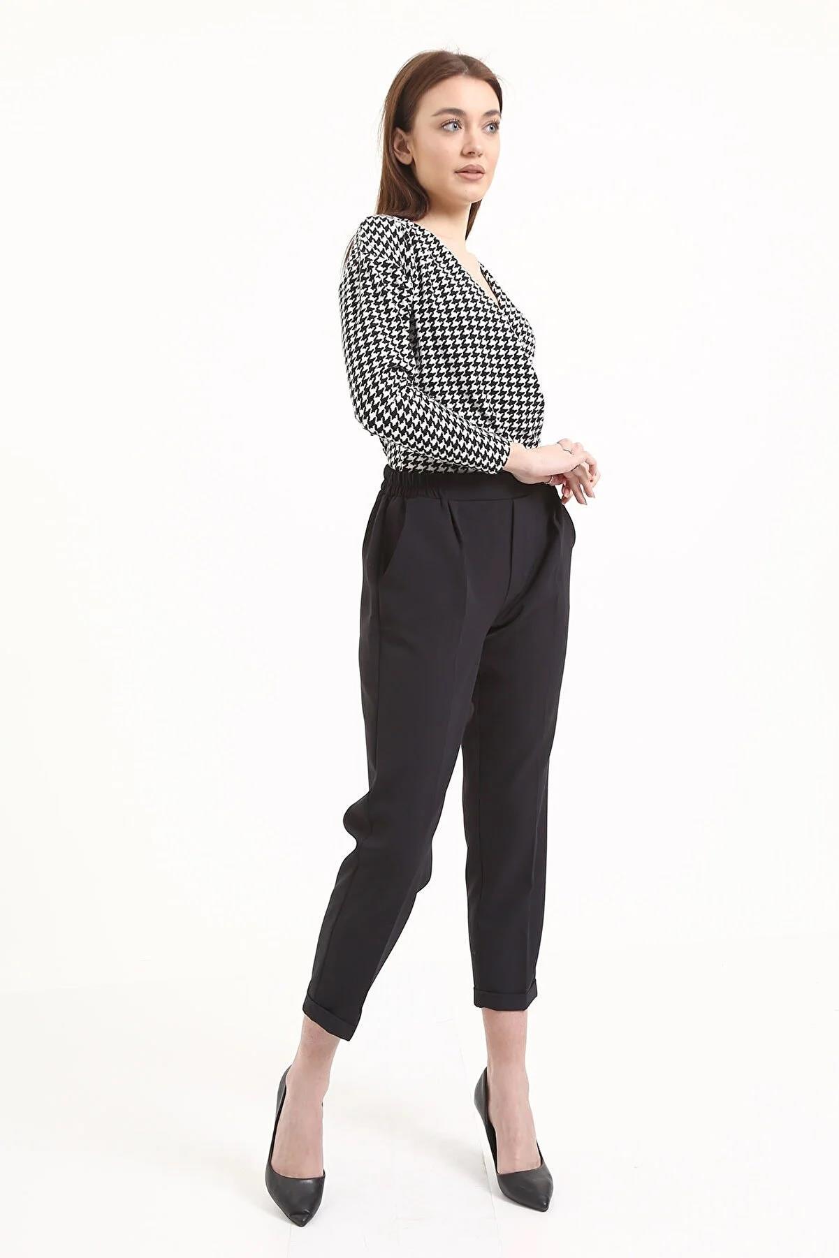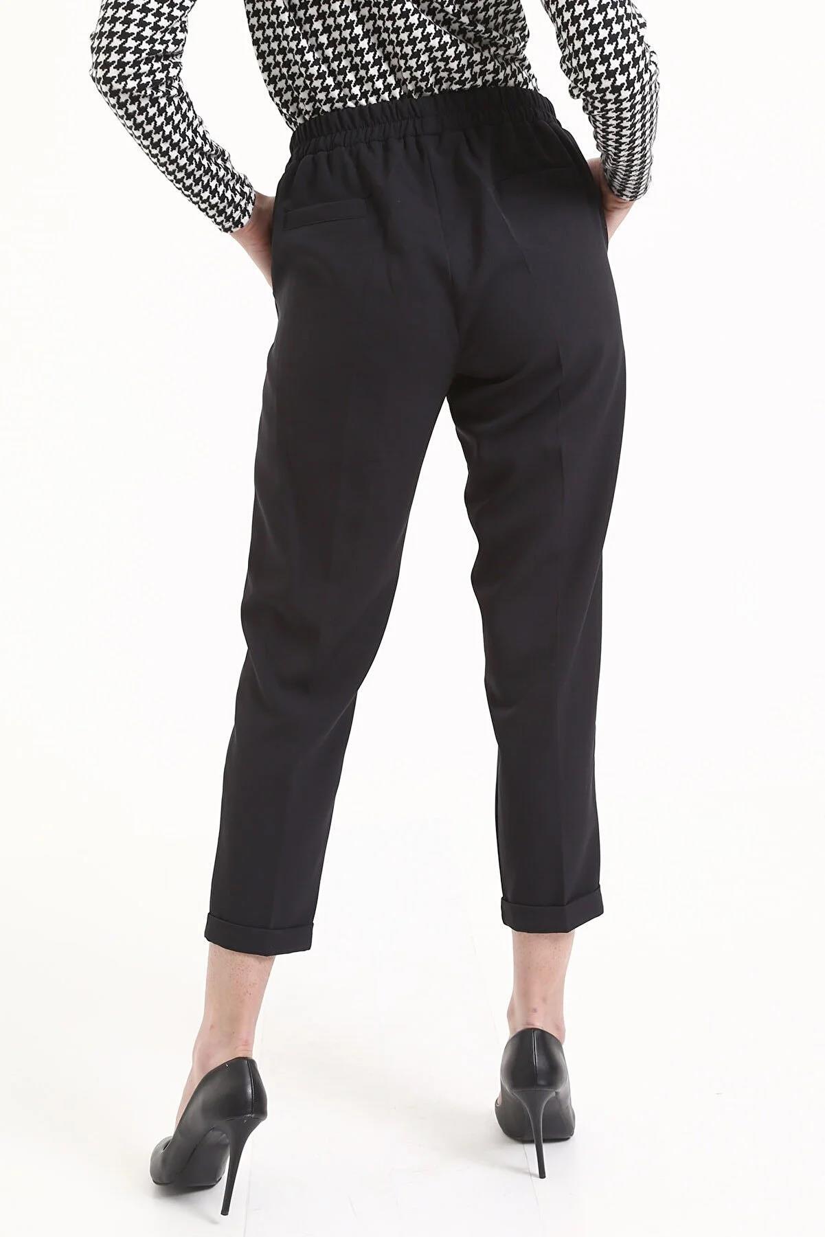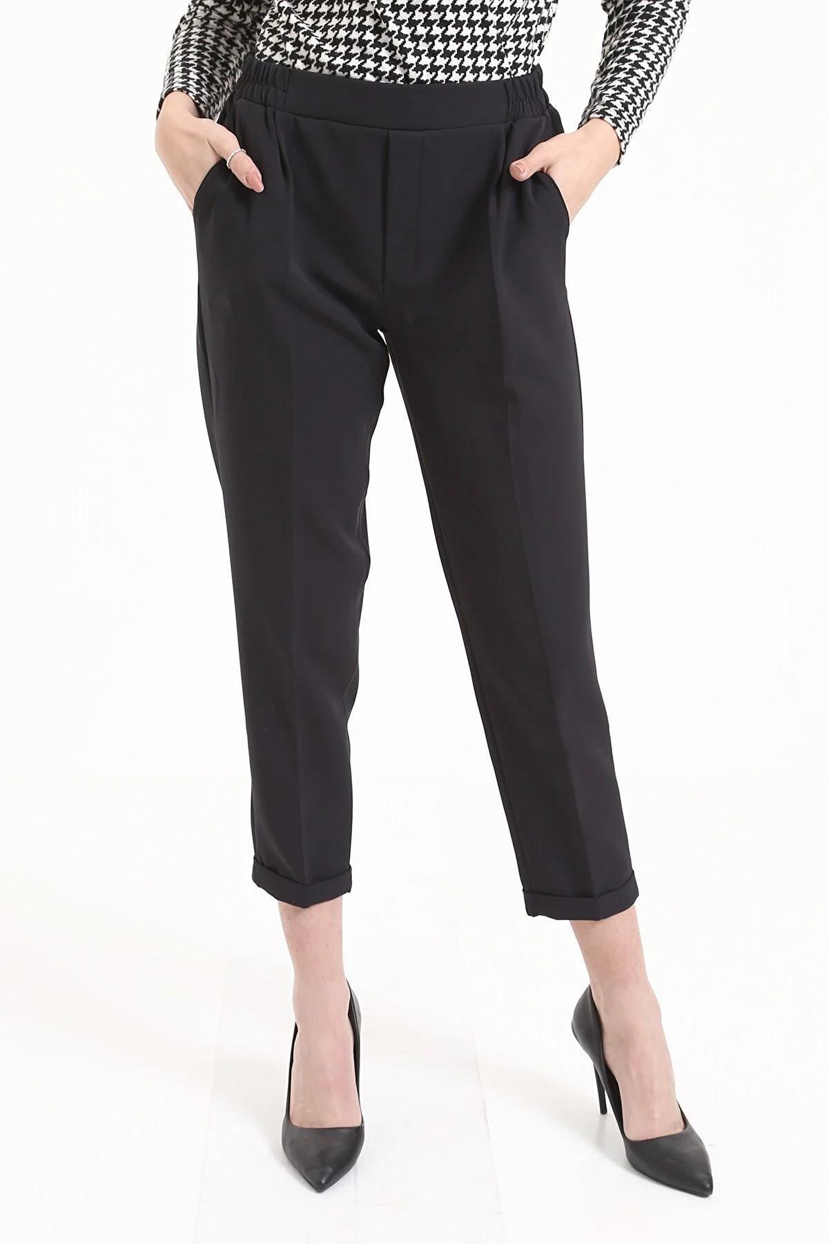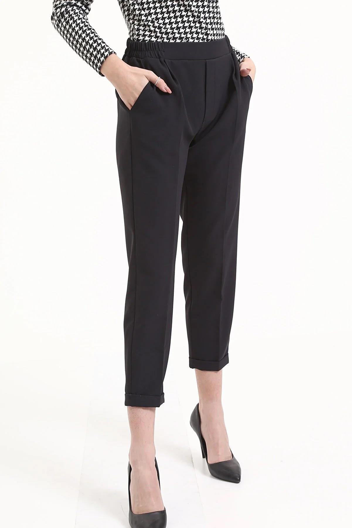 Tek Pile Yarım Lastik Bayan Pantolon - 6266A Siyah