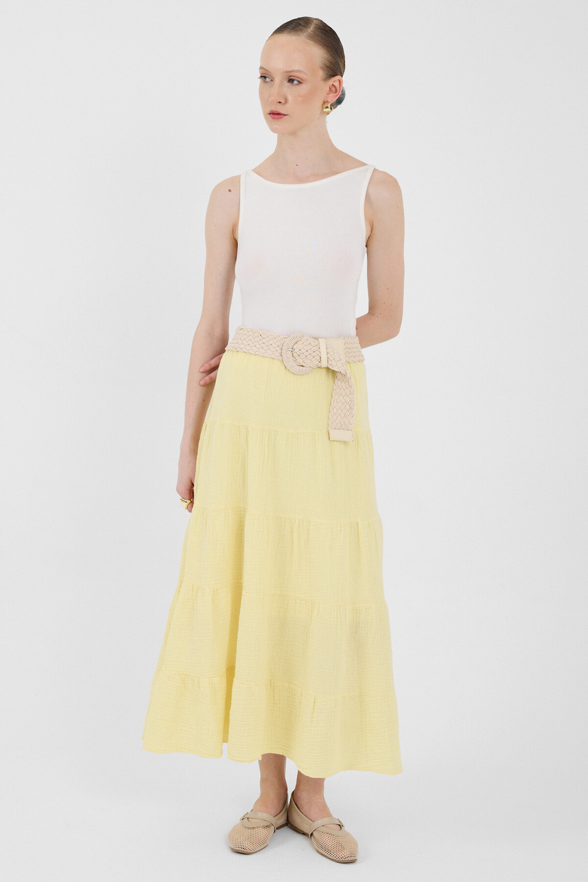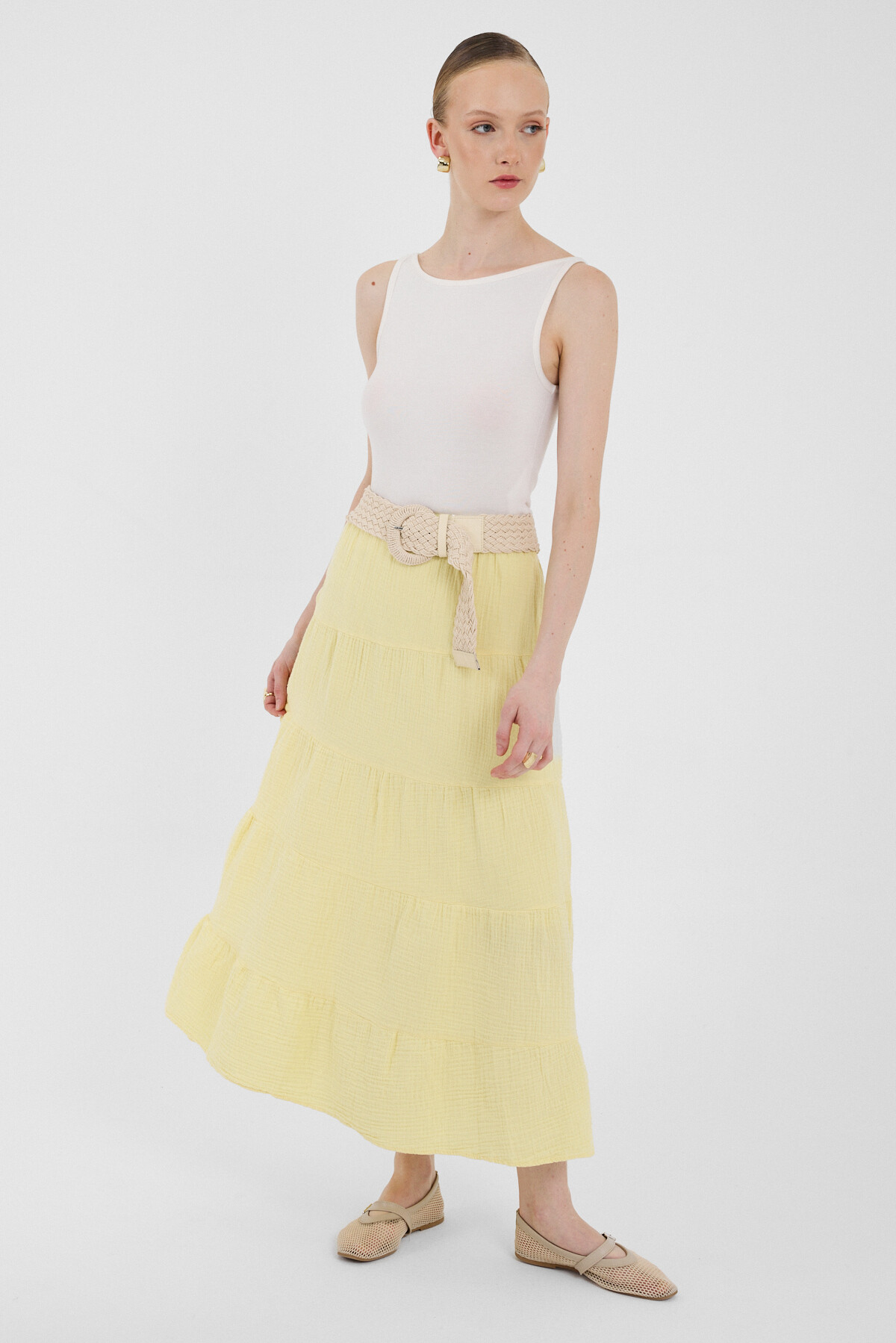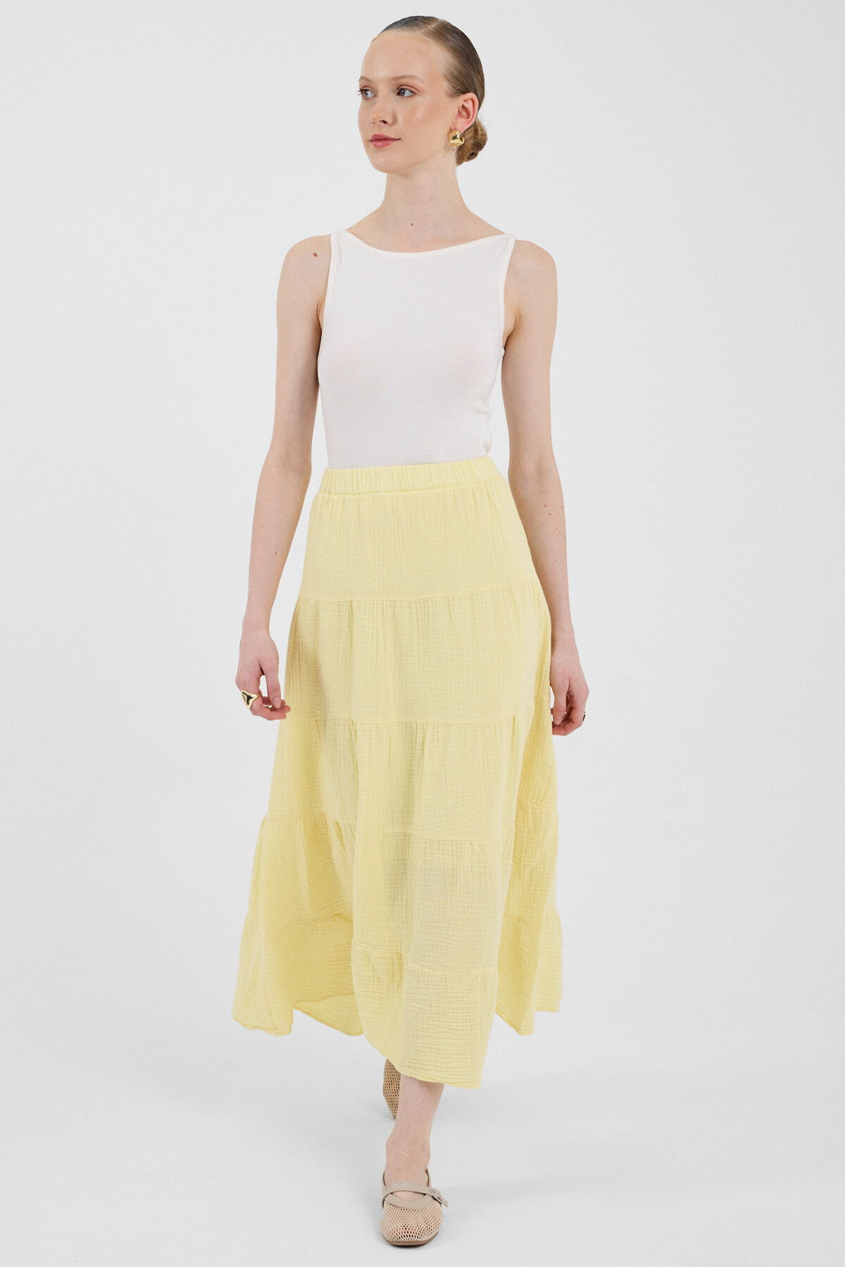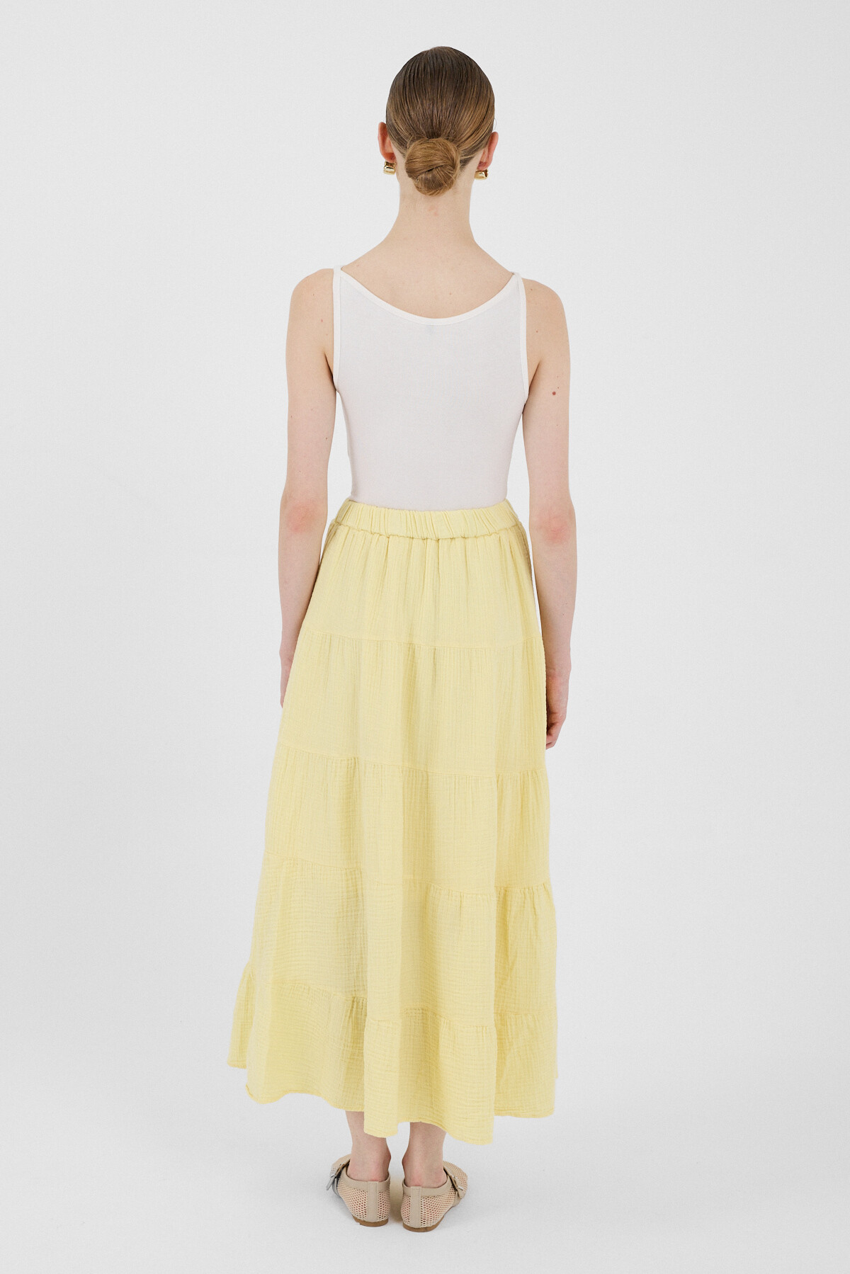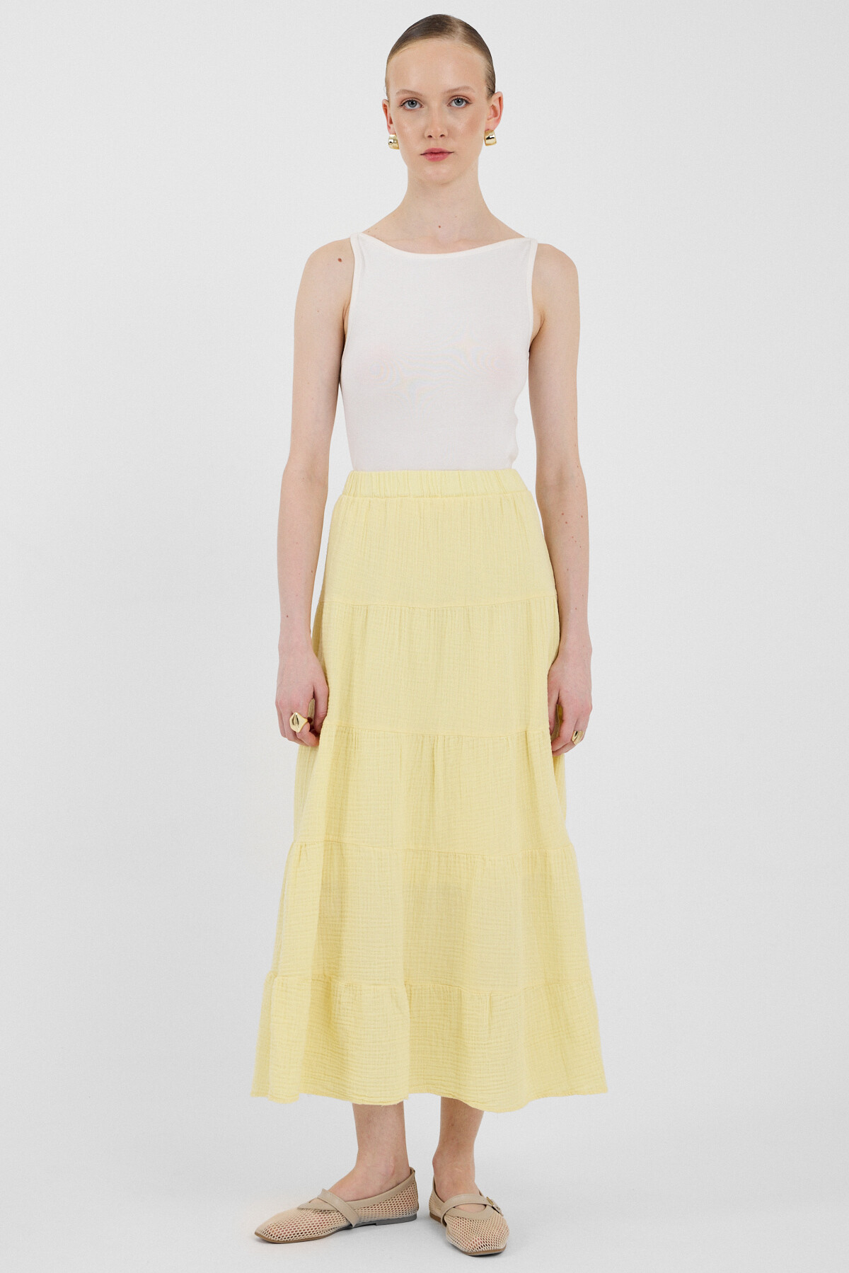 Tereyağ Sarısı Keten Görünümlü %100 Pamuk Kat Kat Uzun Etek 4801A