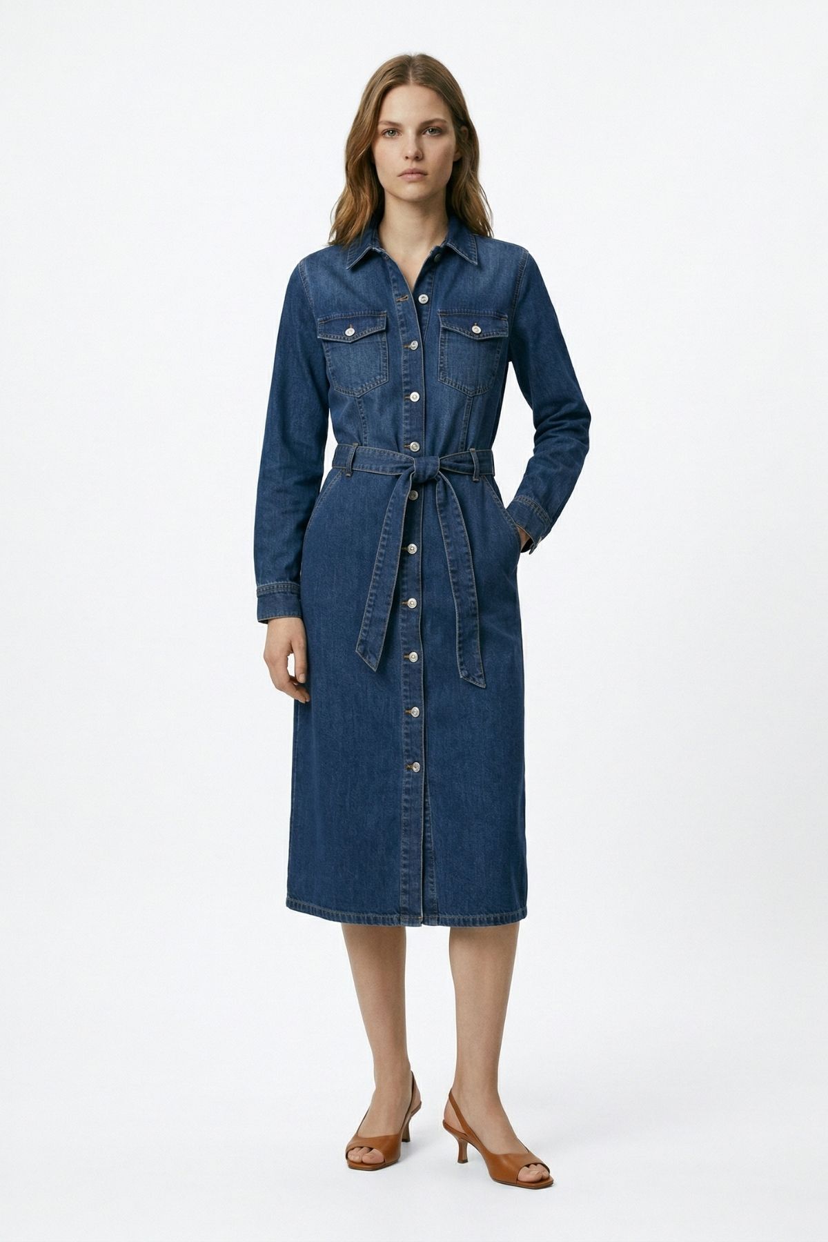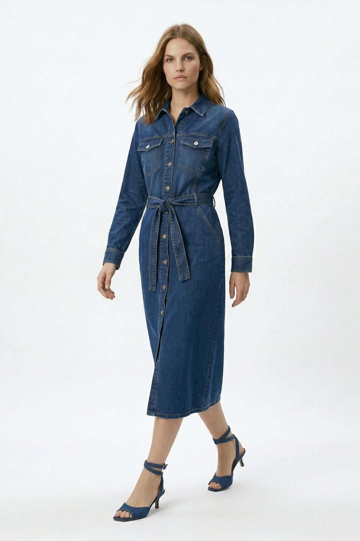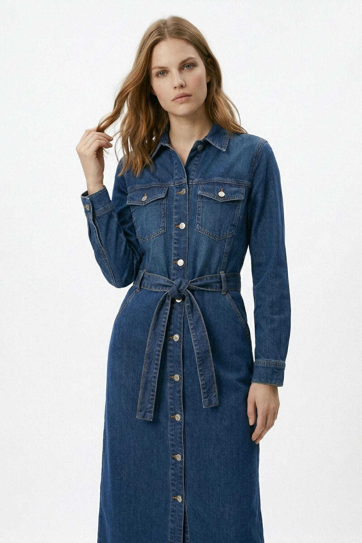 221 Çift Cepli Düğmeli Kuşaklı Elbise