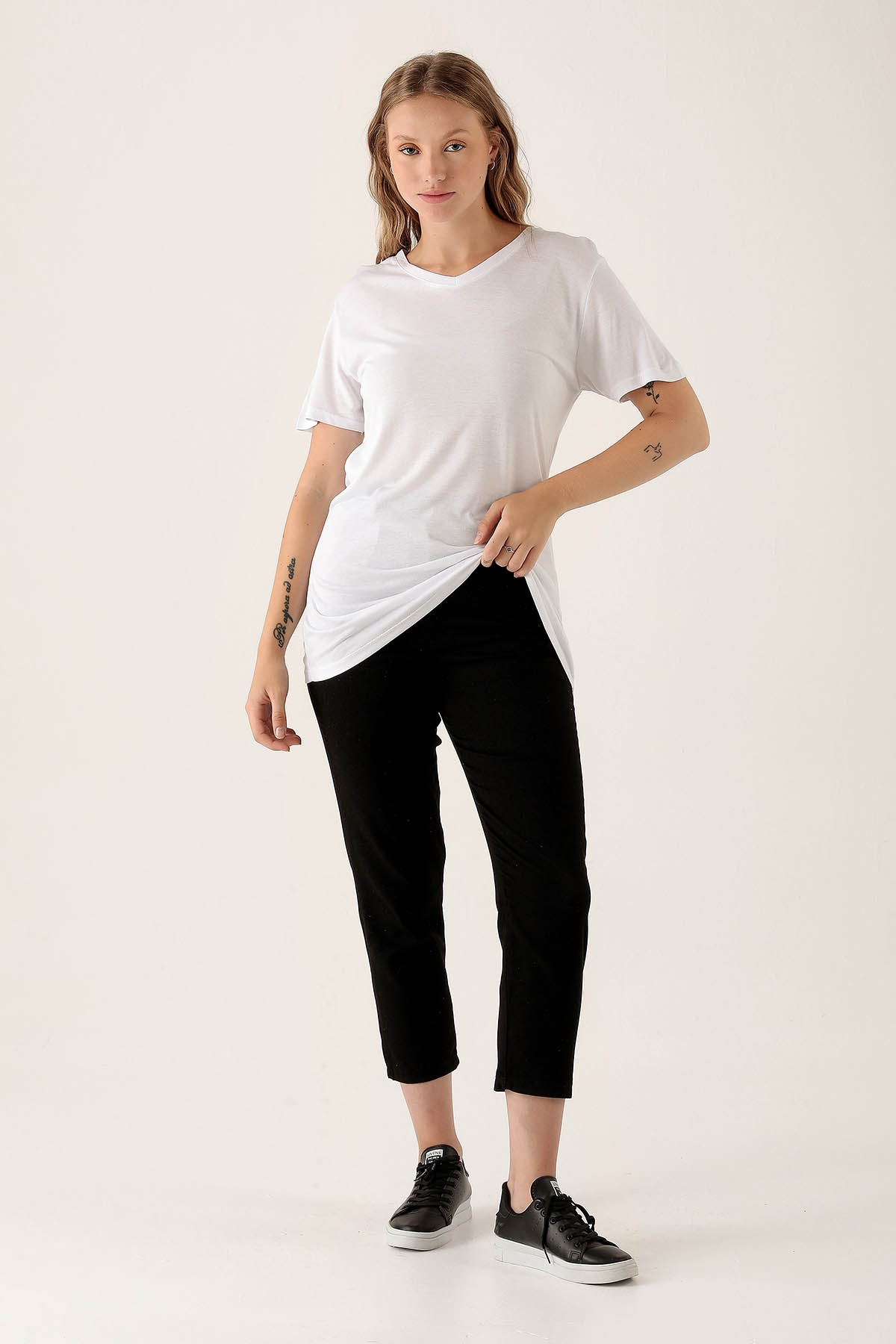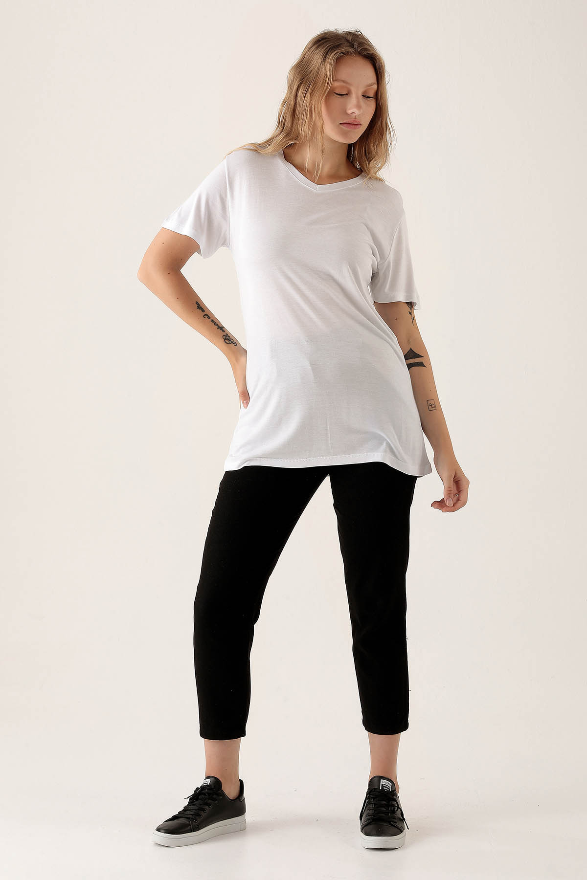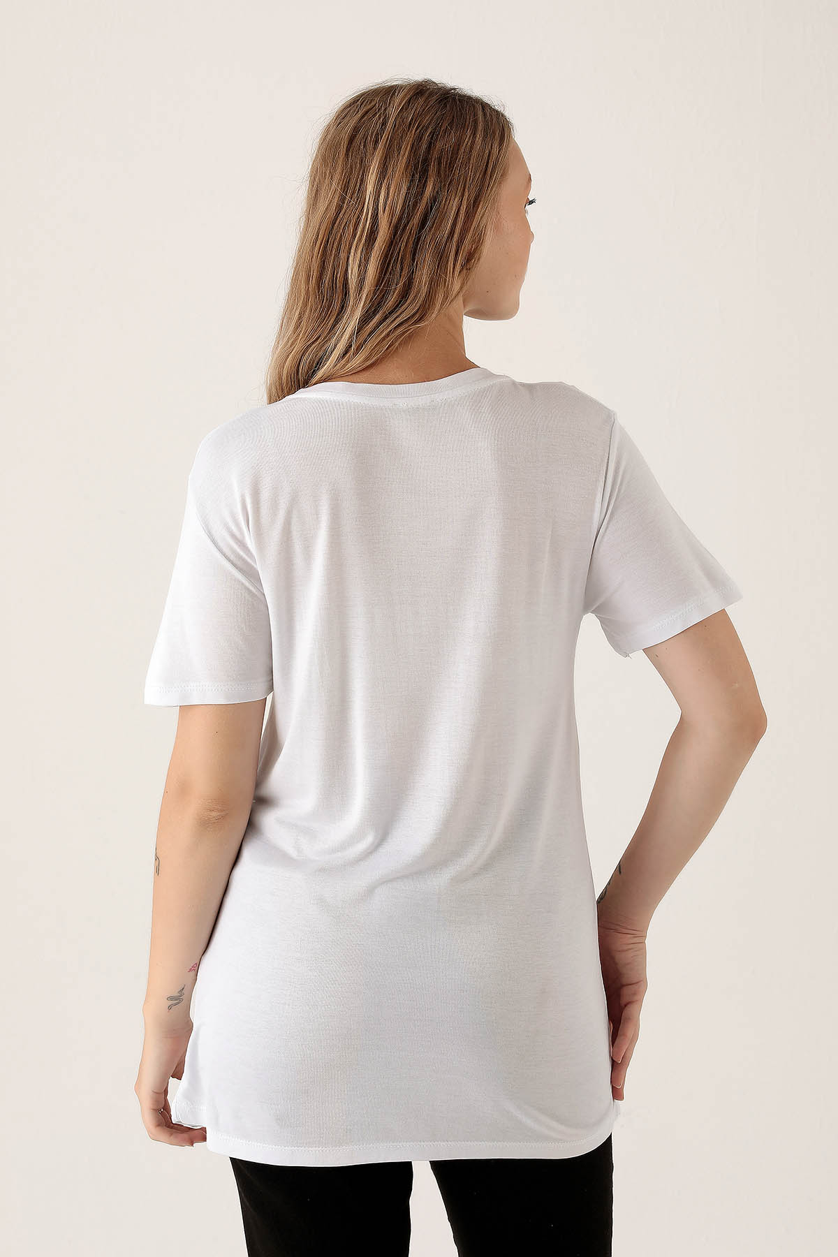 V Yaka Basic Bayan Tişort - 2209 Beyaz