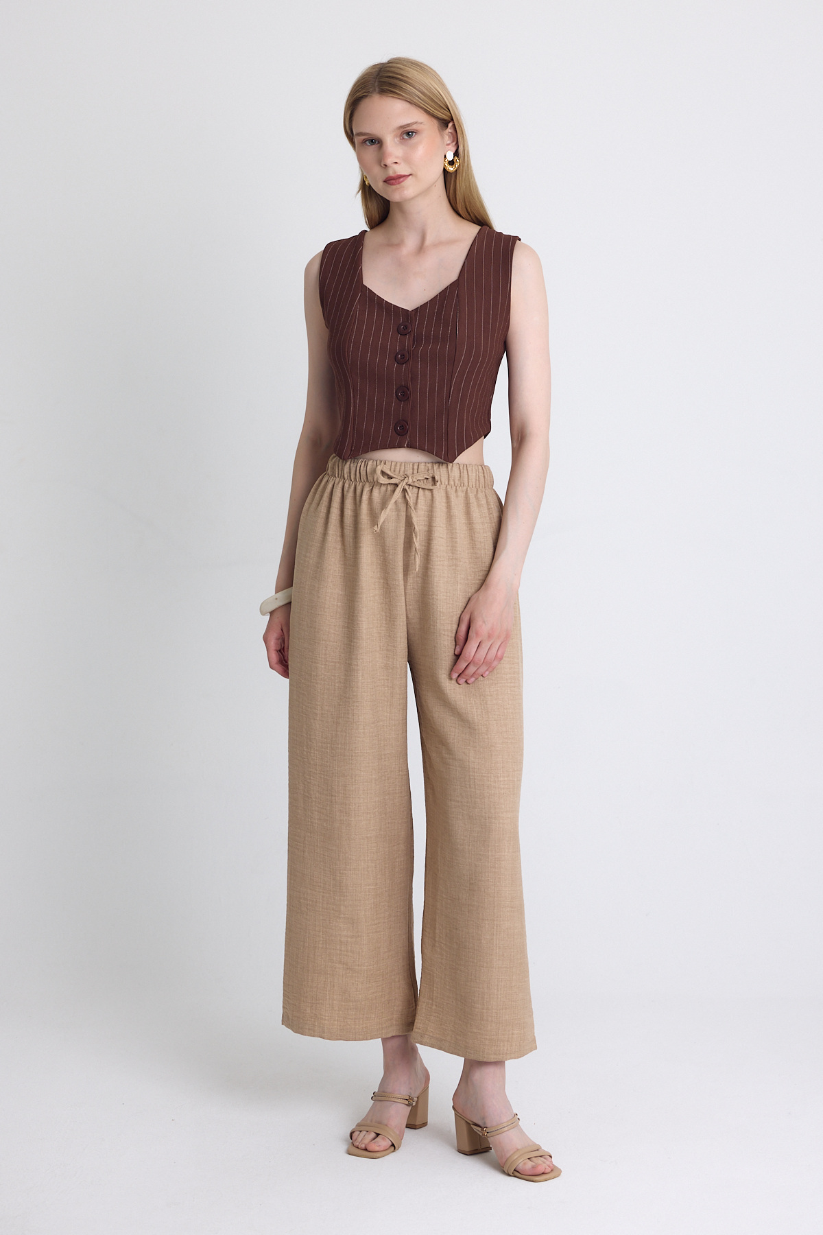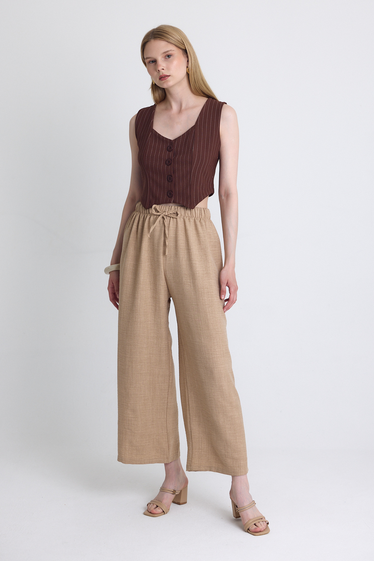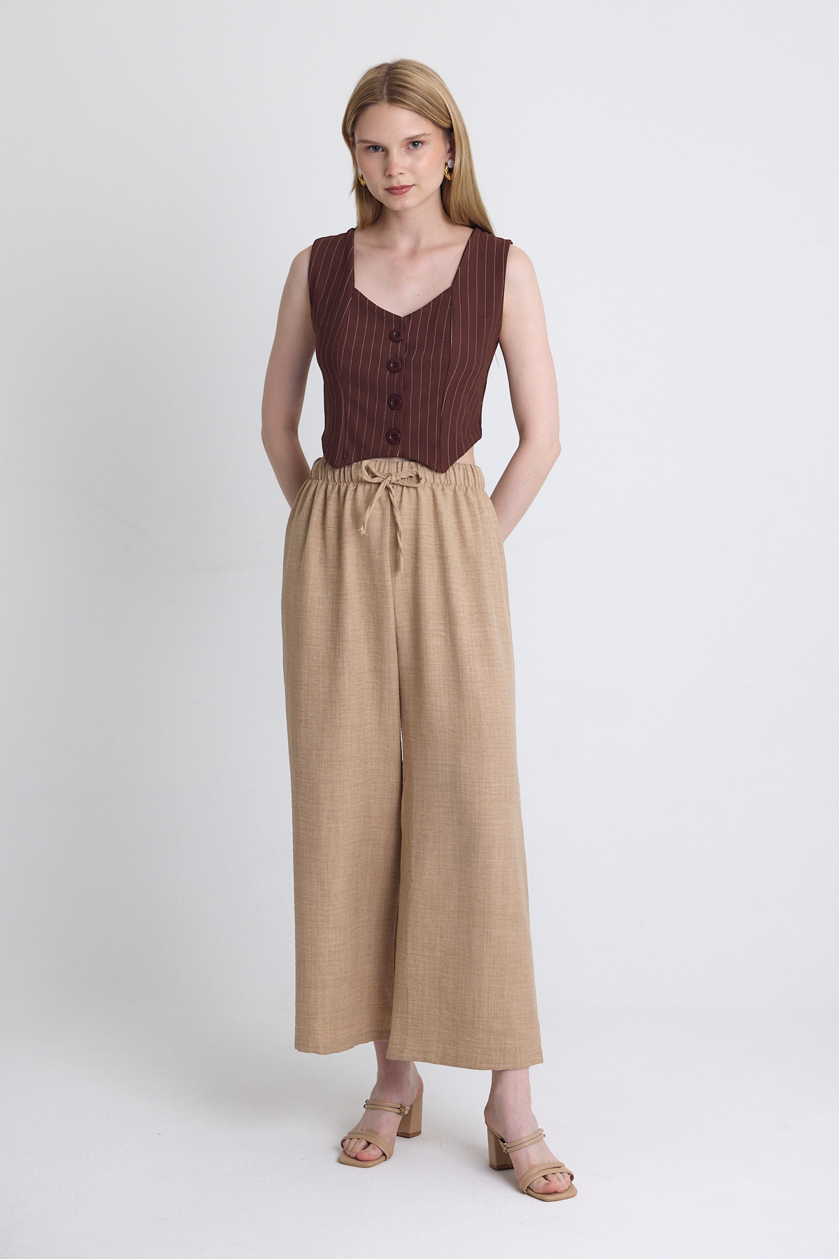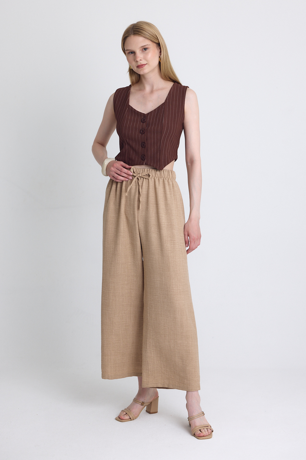 Kahve Pileli Palazzo Pantolon 3871