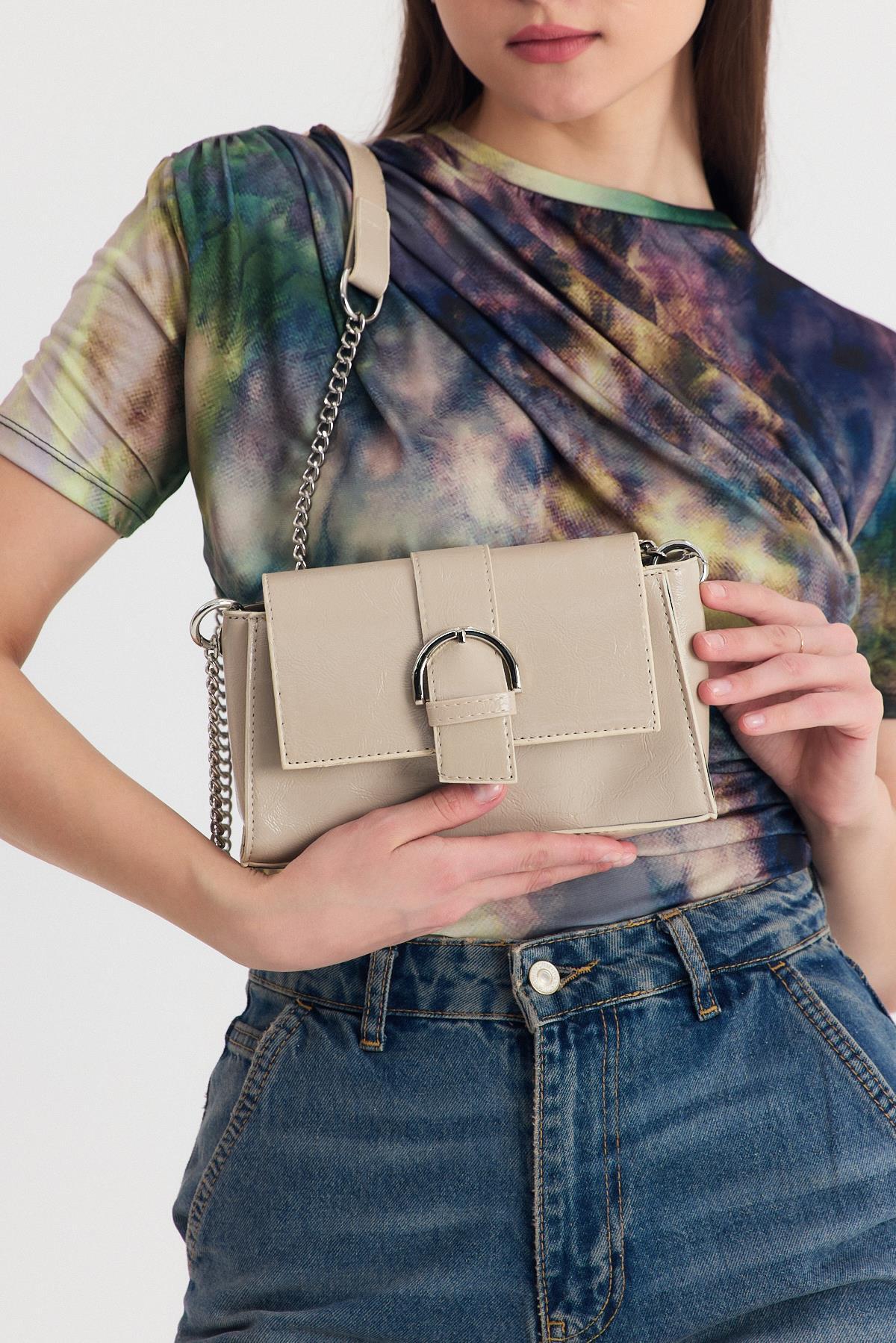 Vizon Deri Görünümlü Omuz Çantası 3023