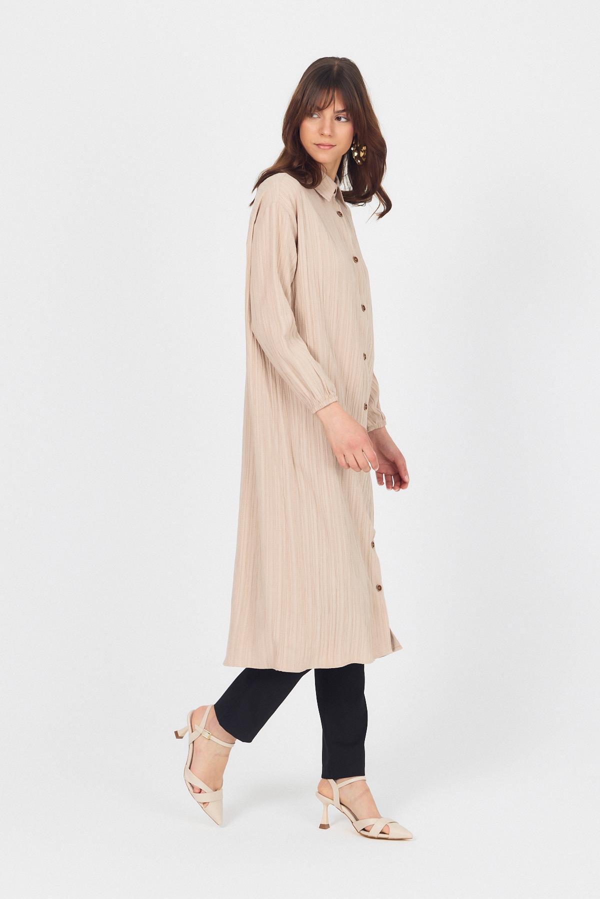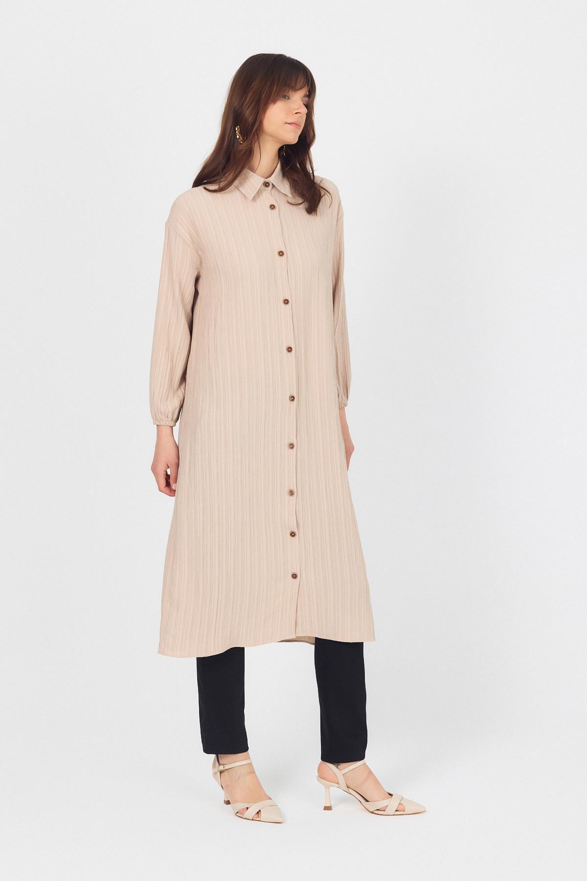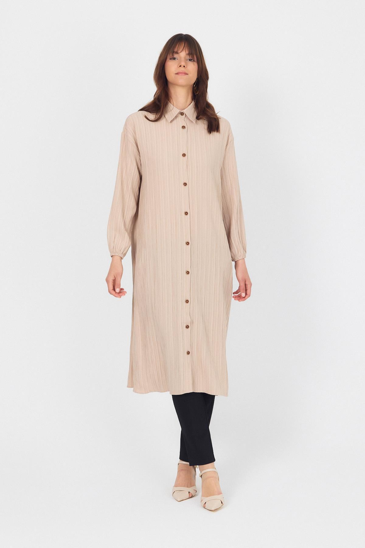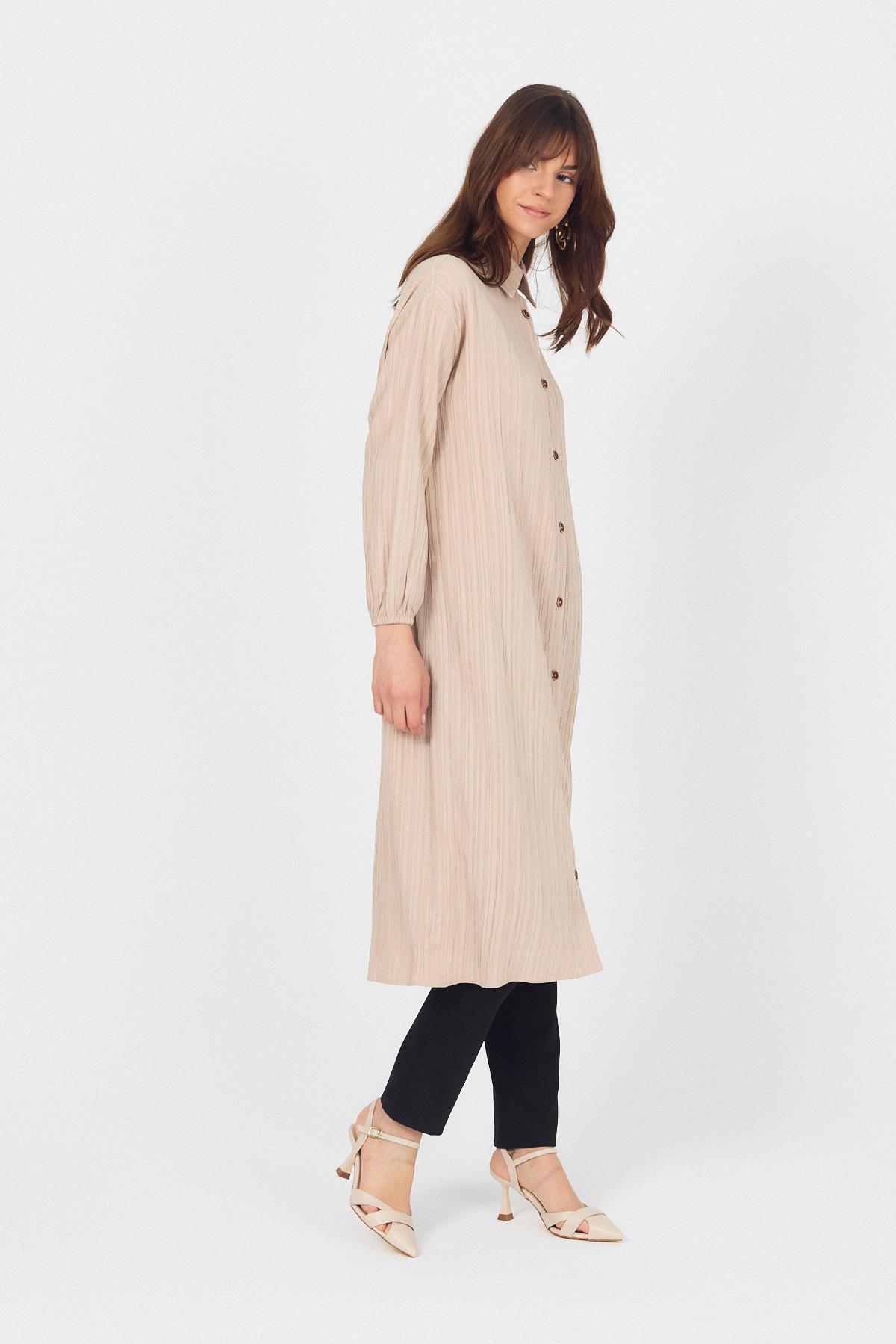 Vizon Düğmeli Kol Lastikli Uzun Tunik 4507A