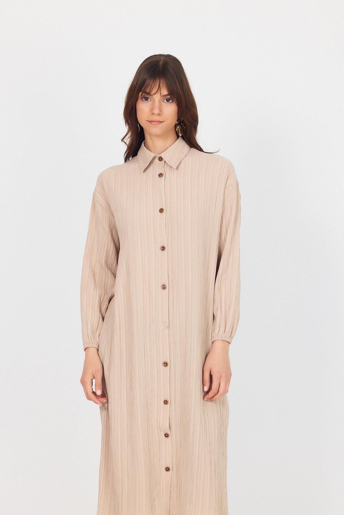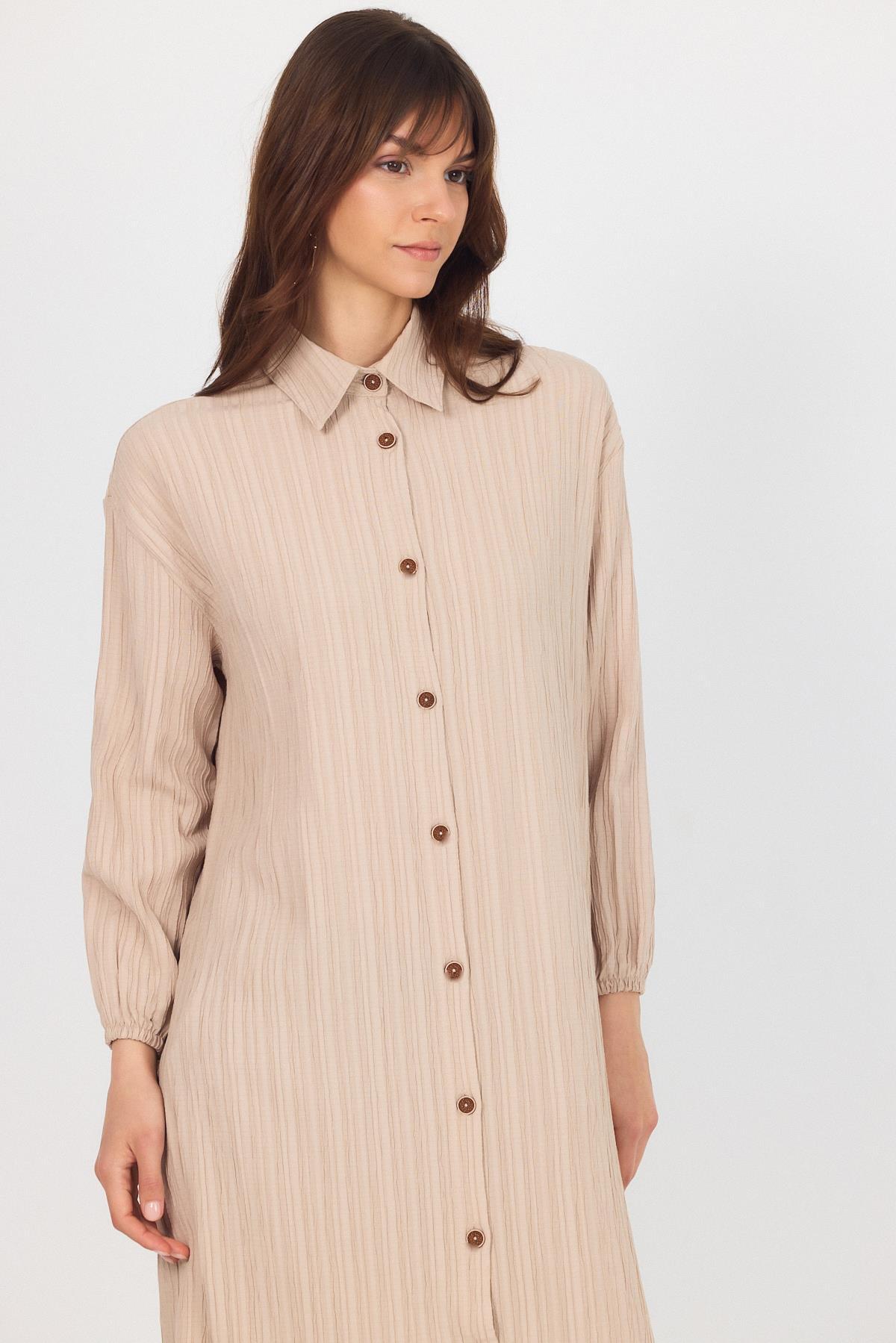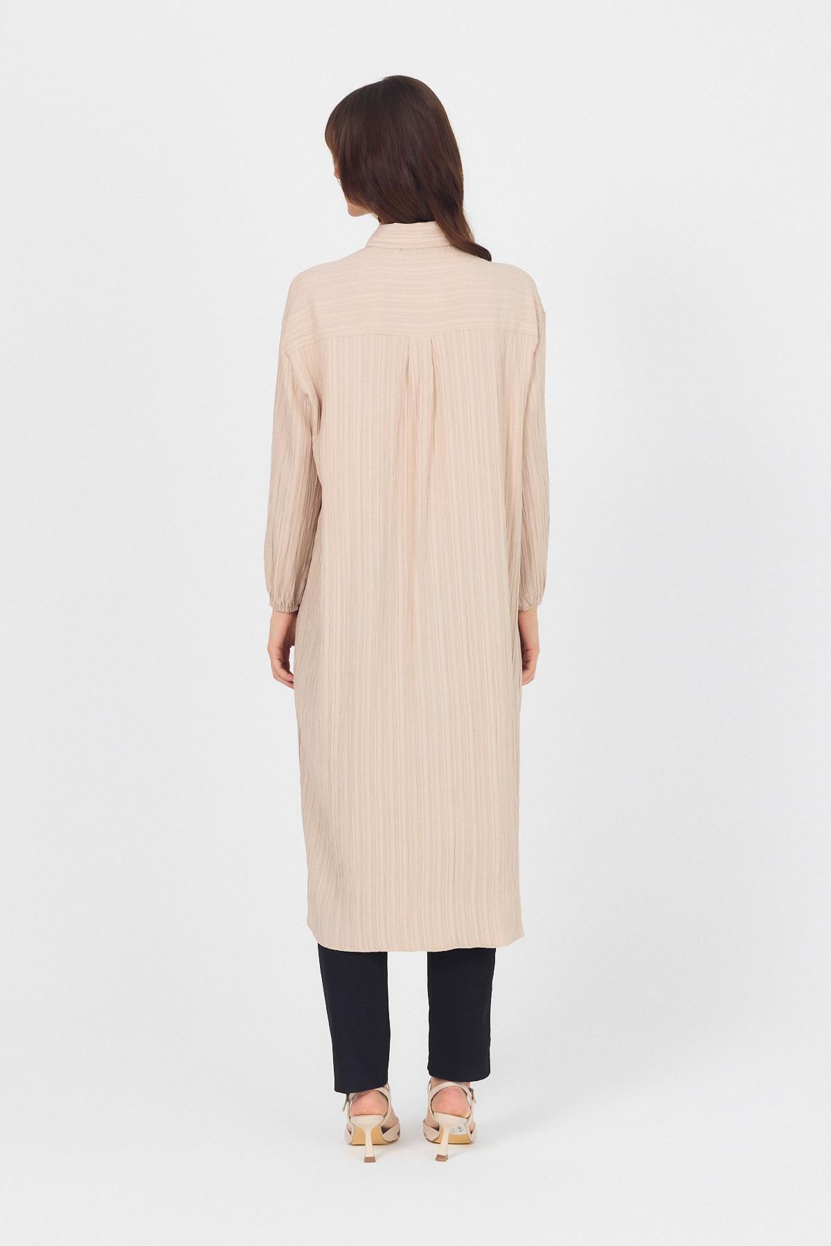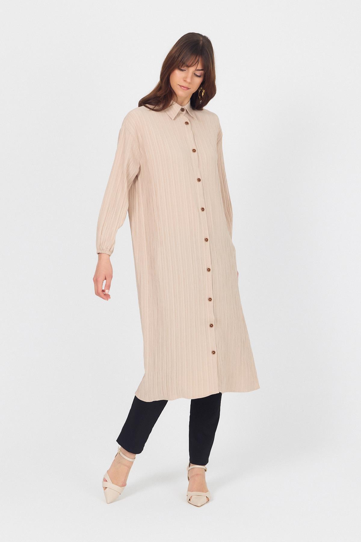 Vizon Düğmeli Kol Lastikli Uzun Tunik 4507A