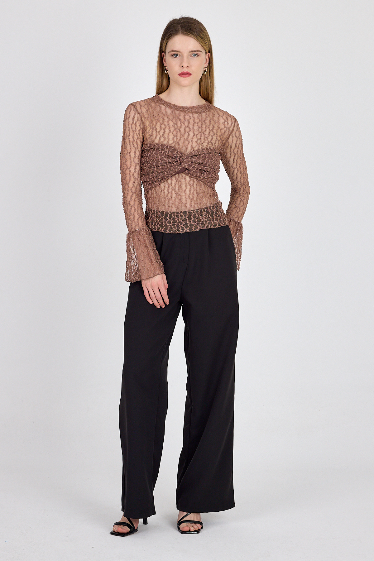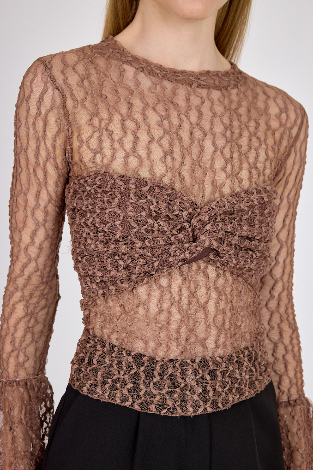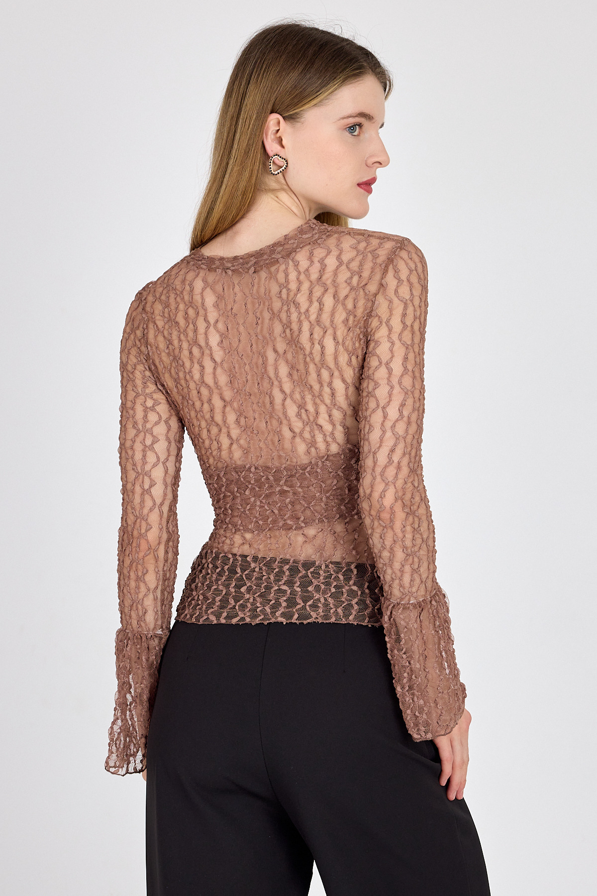 Vizon Göğüs Detaylı Transparan Dantel Bluz 251109