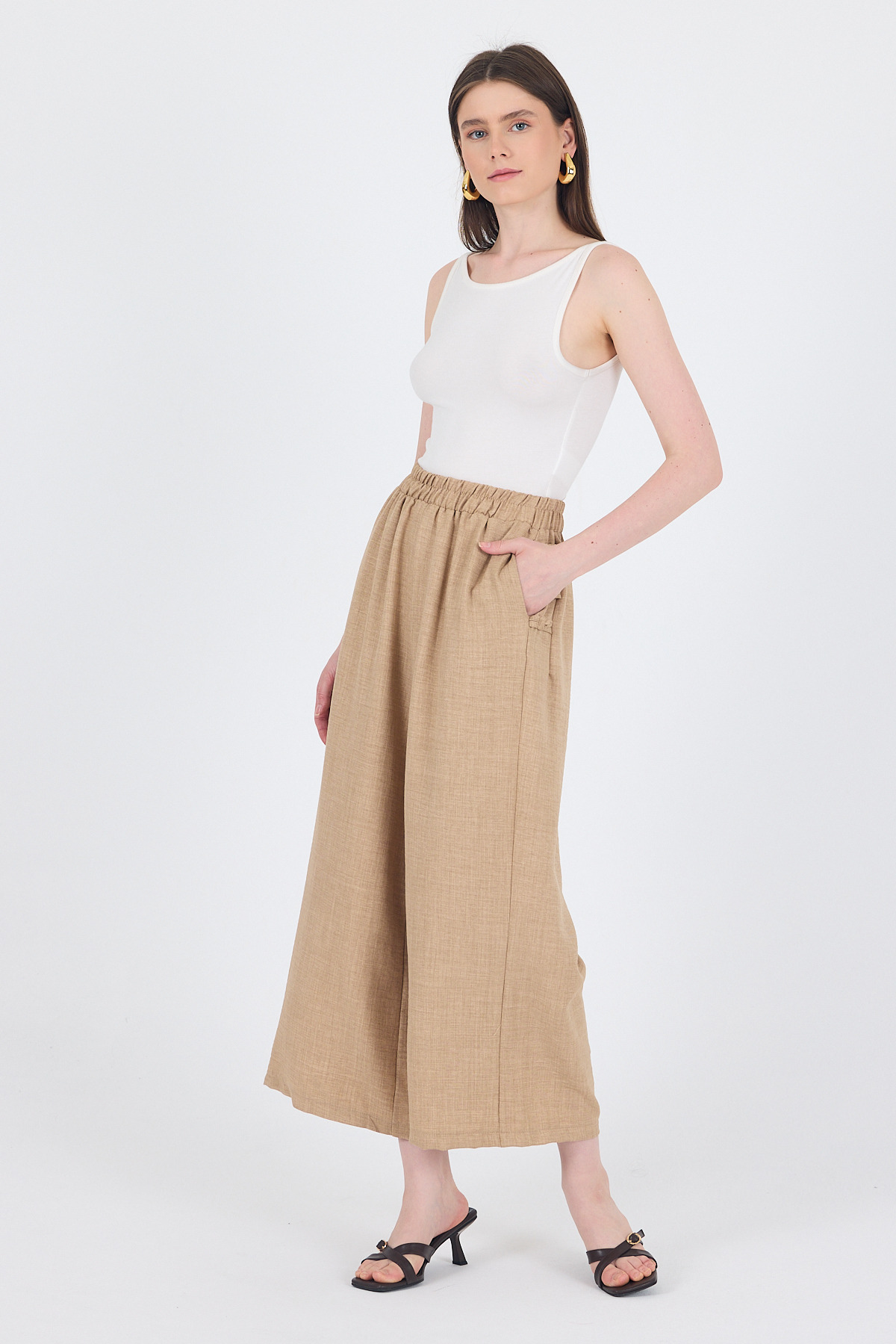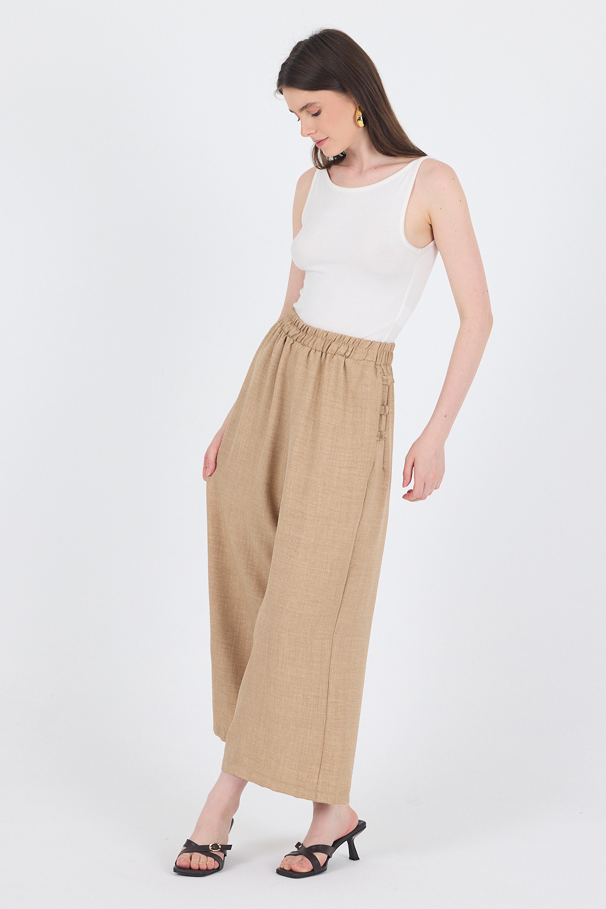 Kahve Pileli Palazzo Pantolon 3871