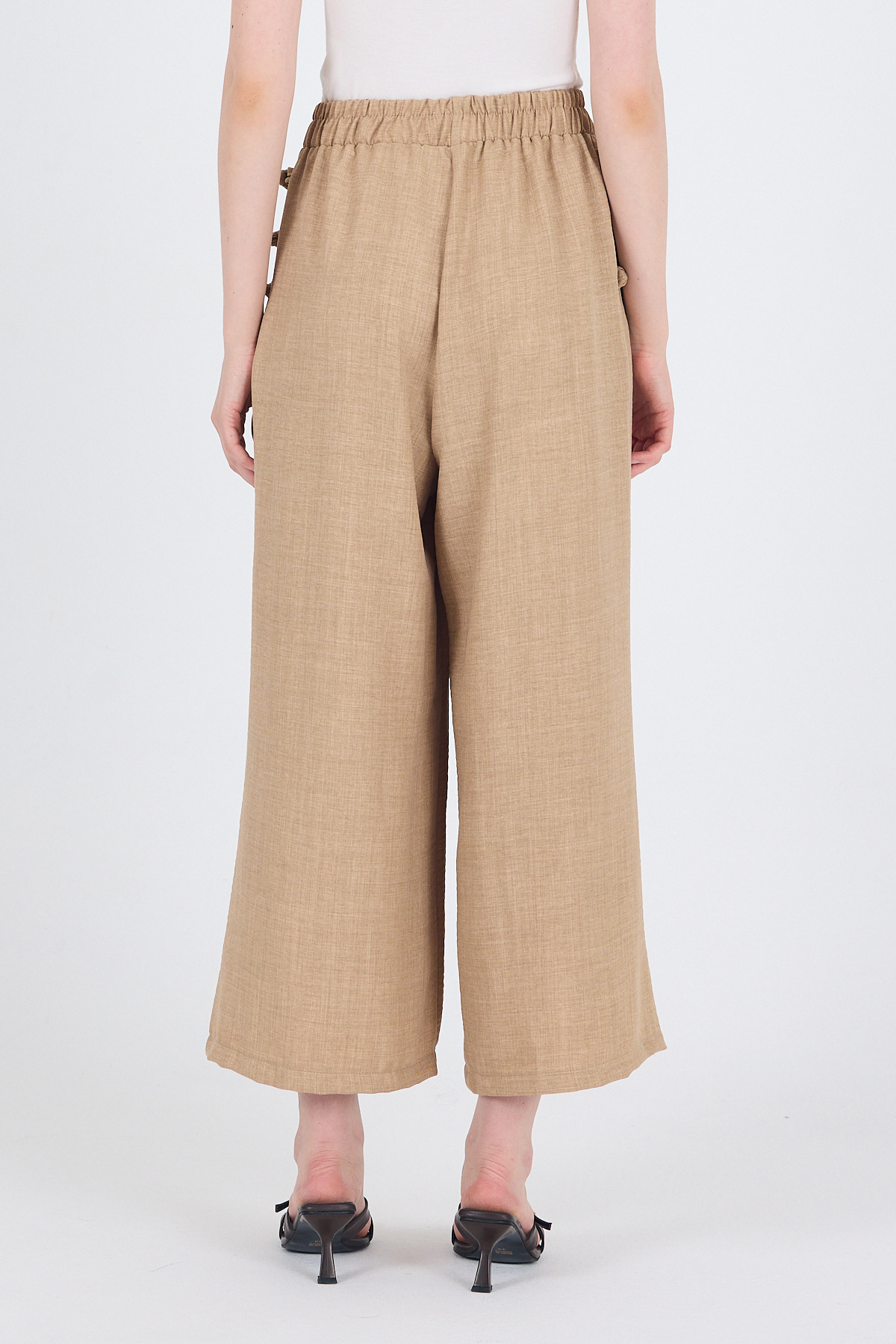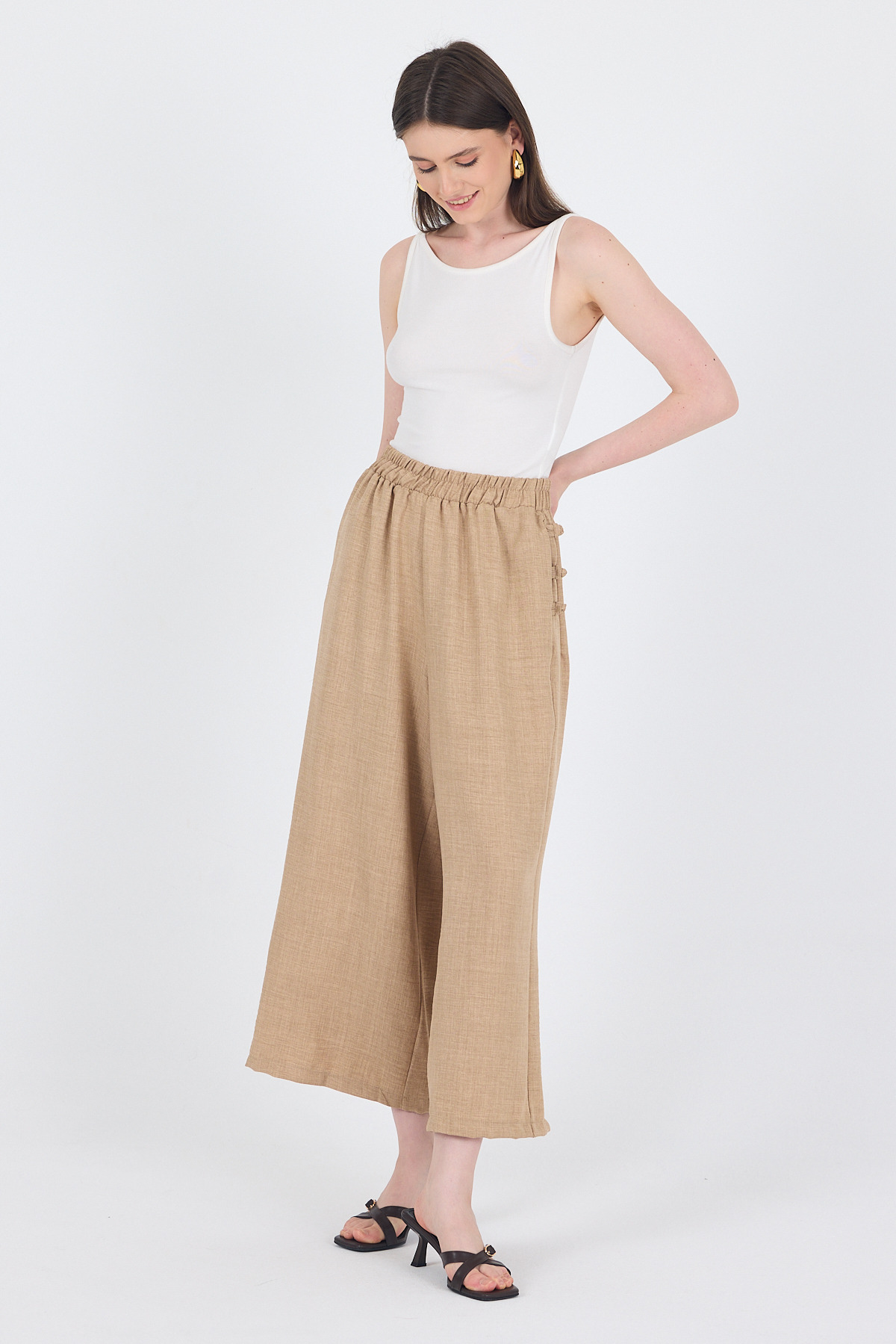Vizon Keten Dokulu Pamuklu Yan Detaylı Bol Paça Pantolon 4820A