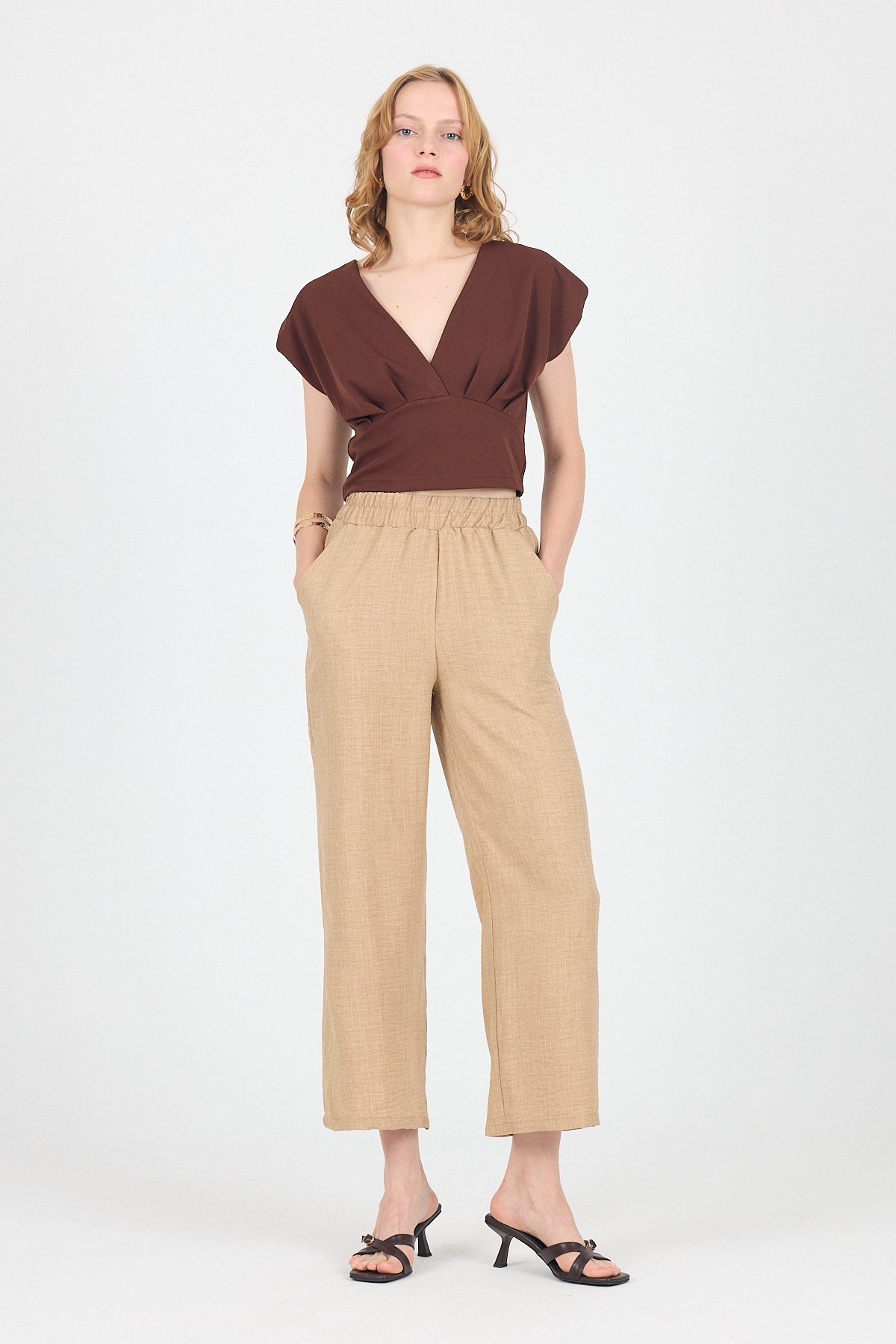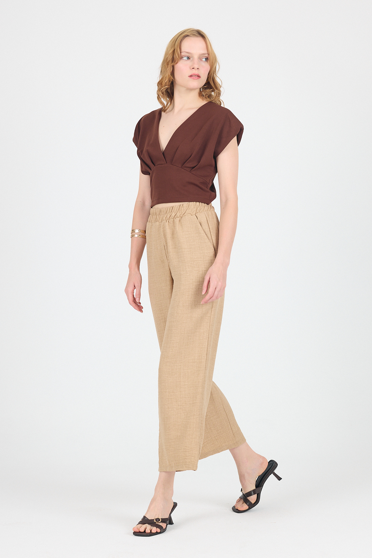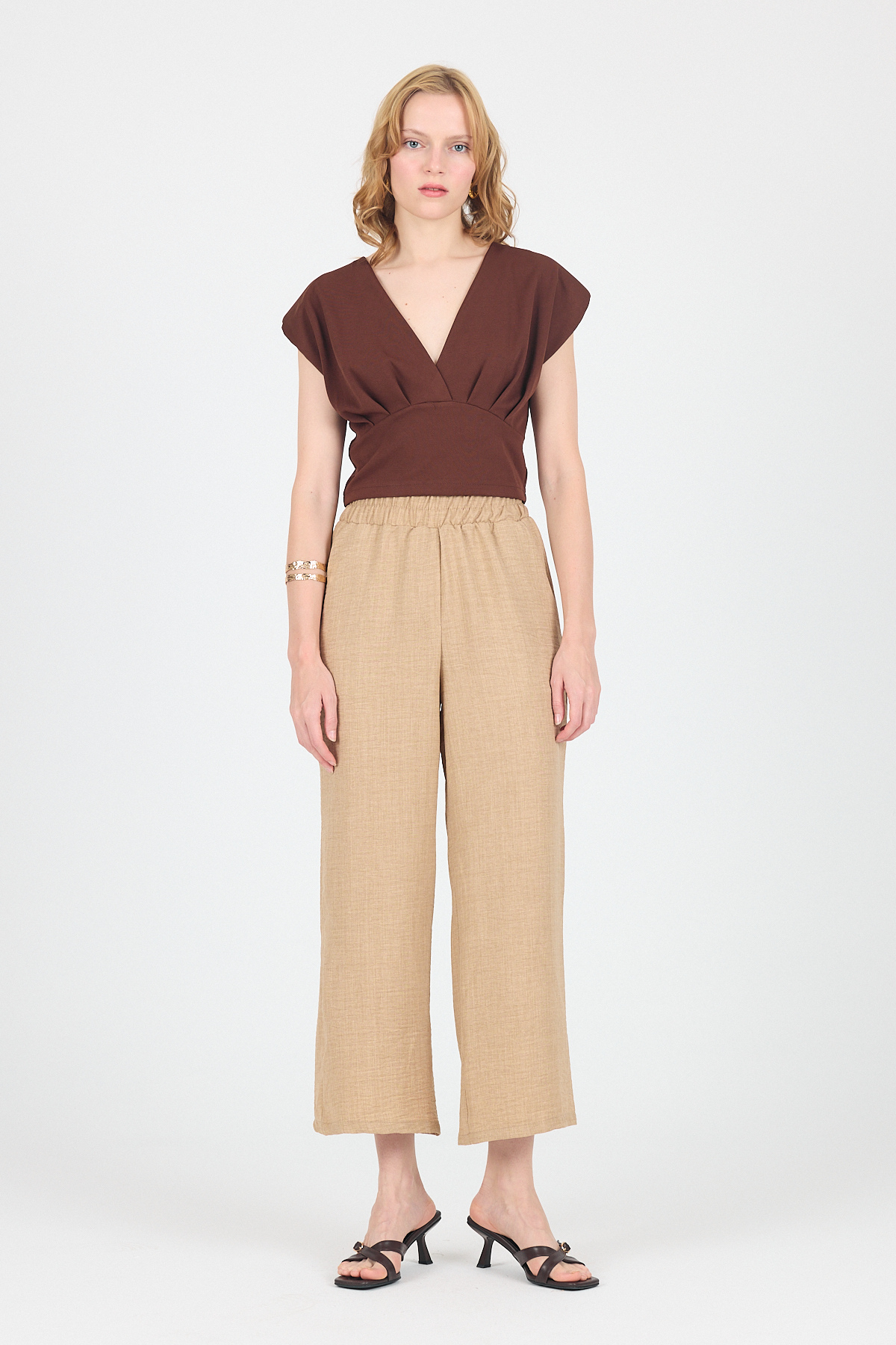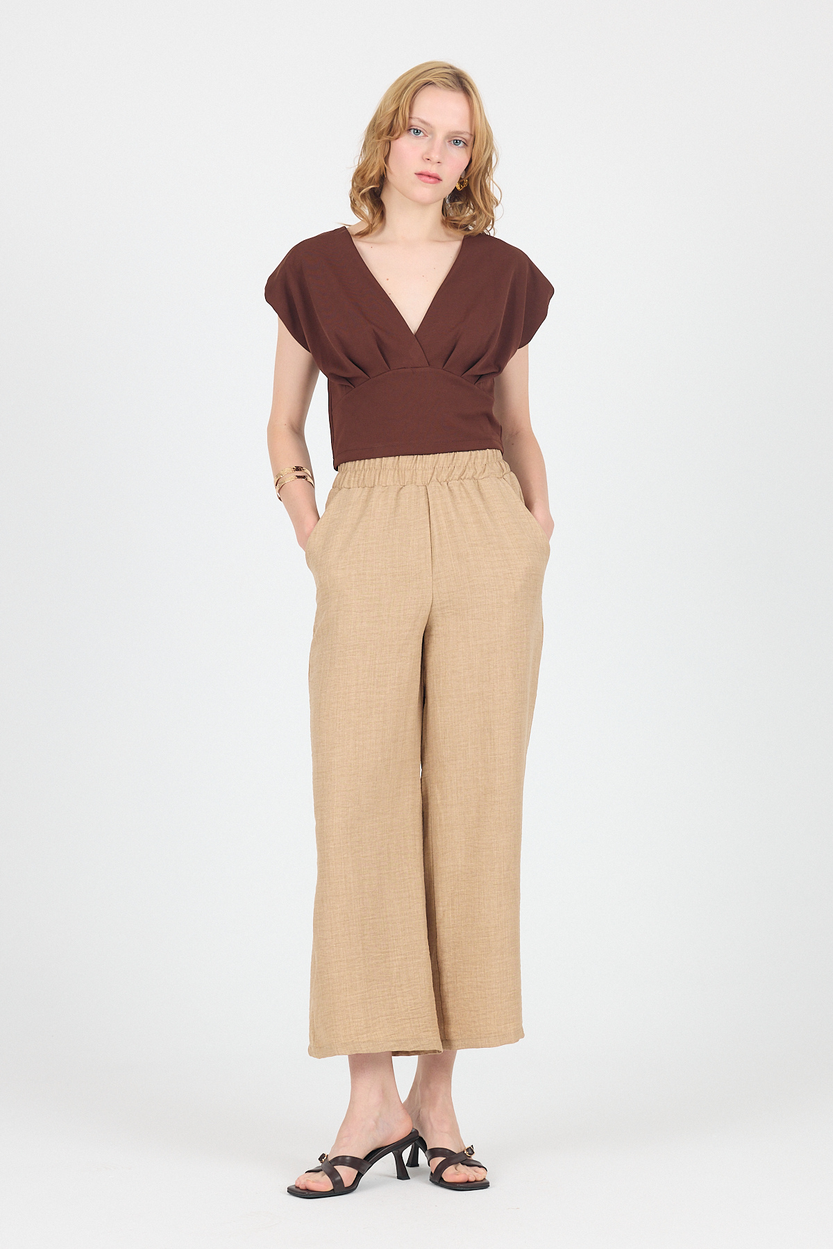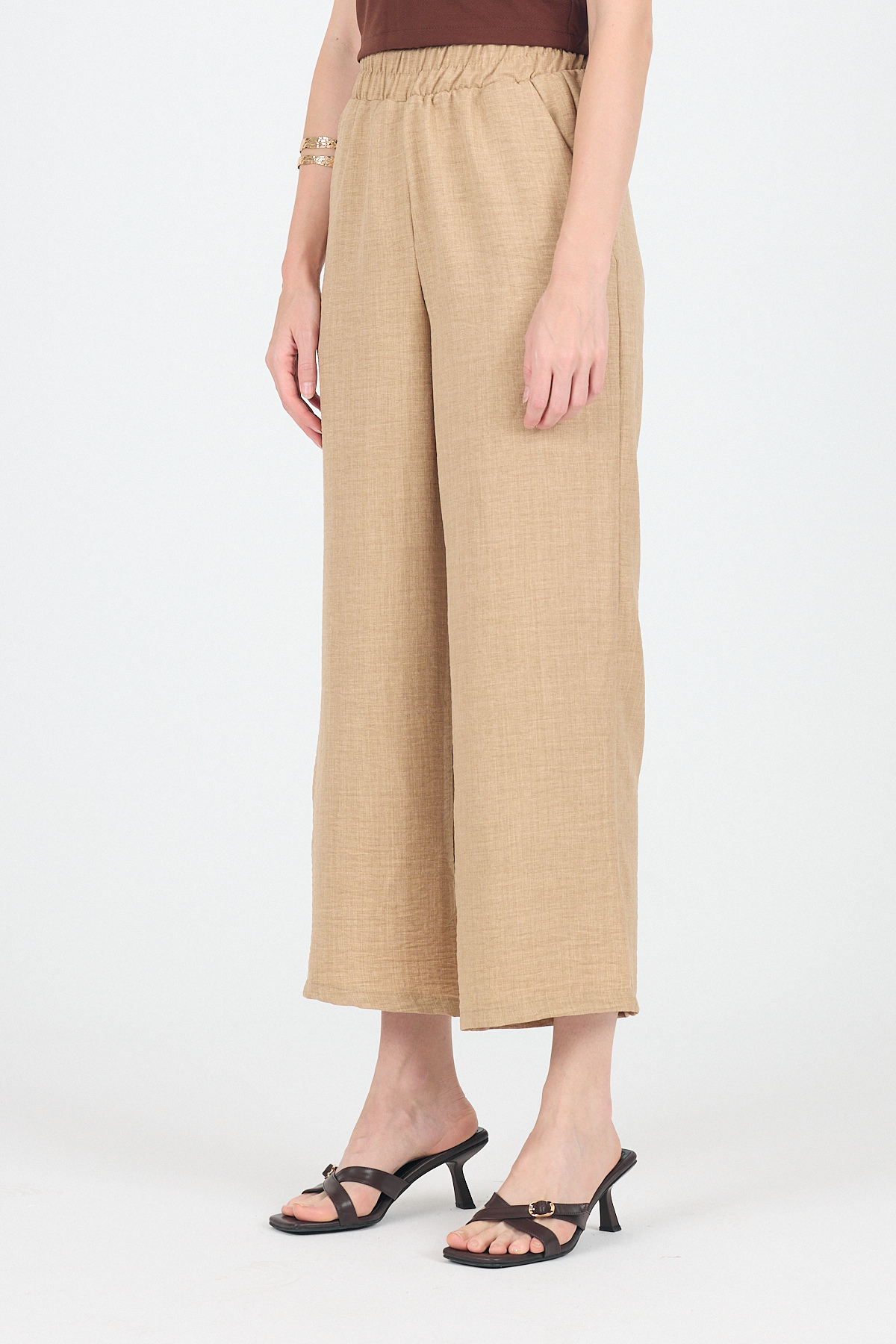 Kahve Pileli Palazzo Pantolon 3871