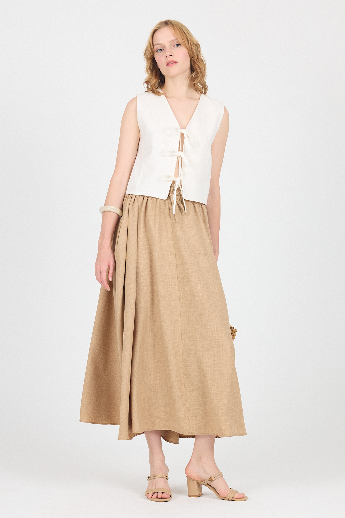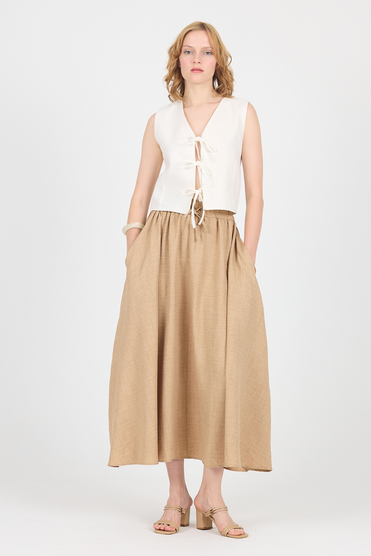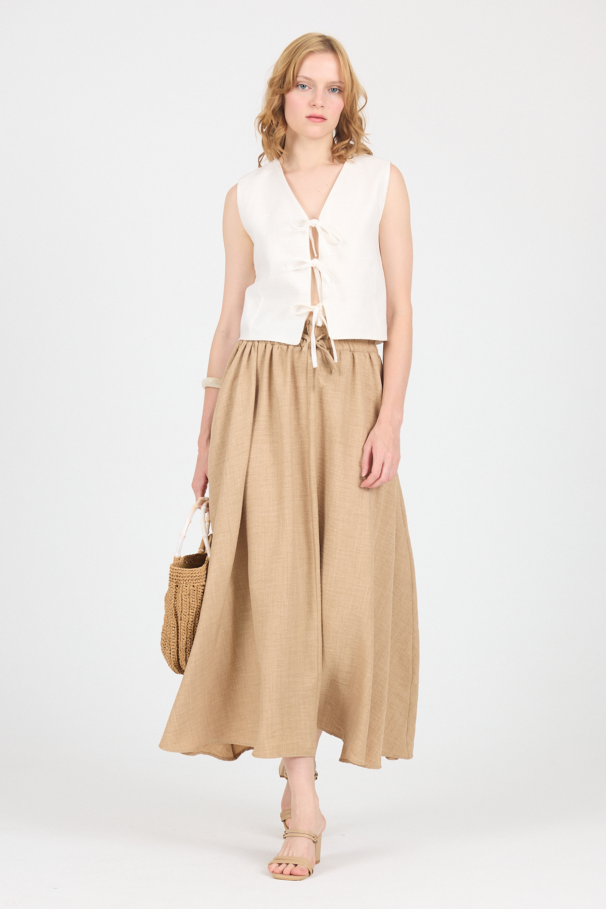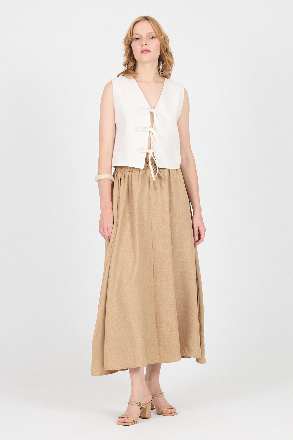 Vizon Pamuklu Çan Kesim Bağcıklı Uzun Etek 8024