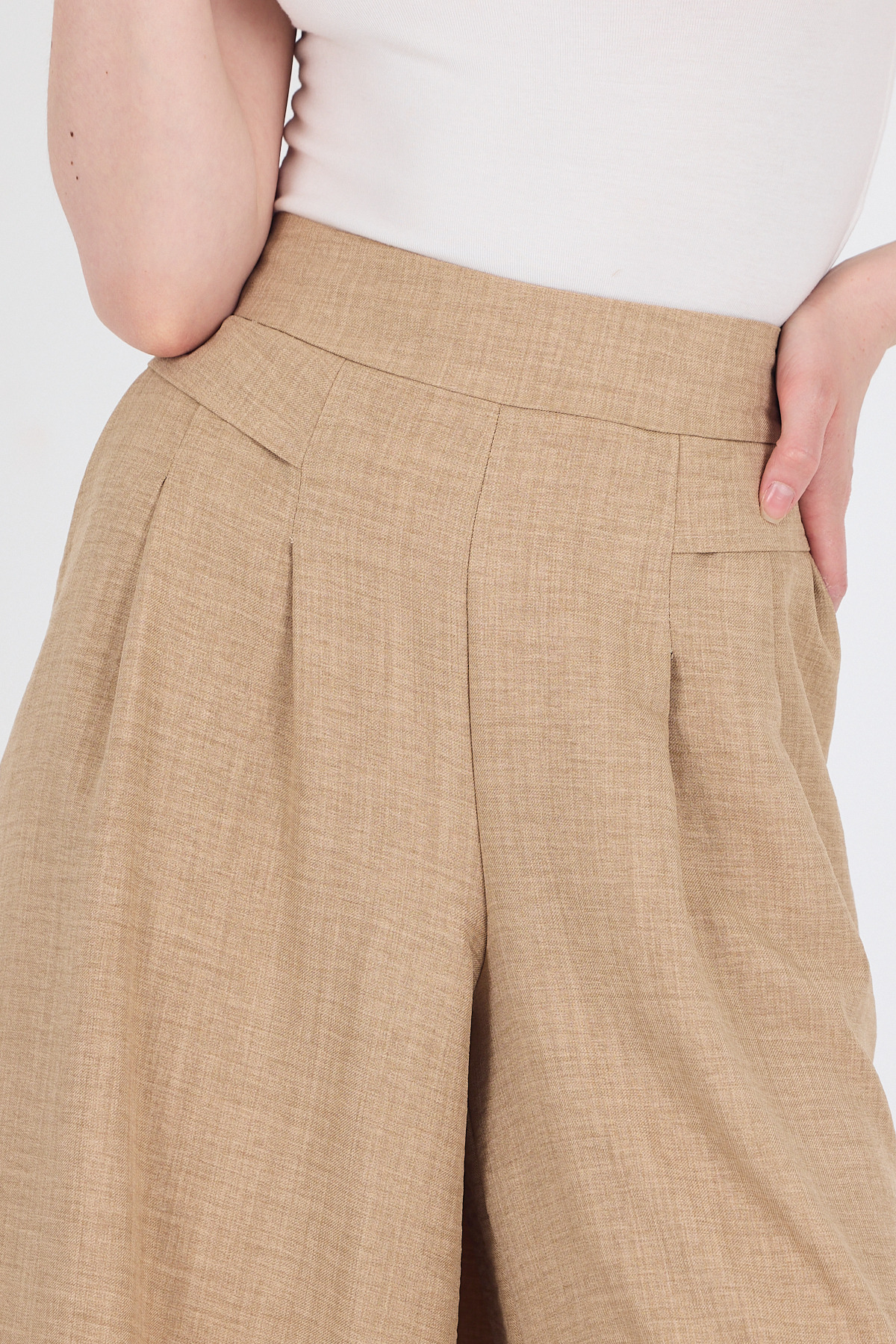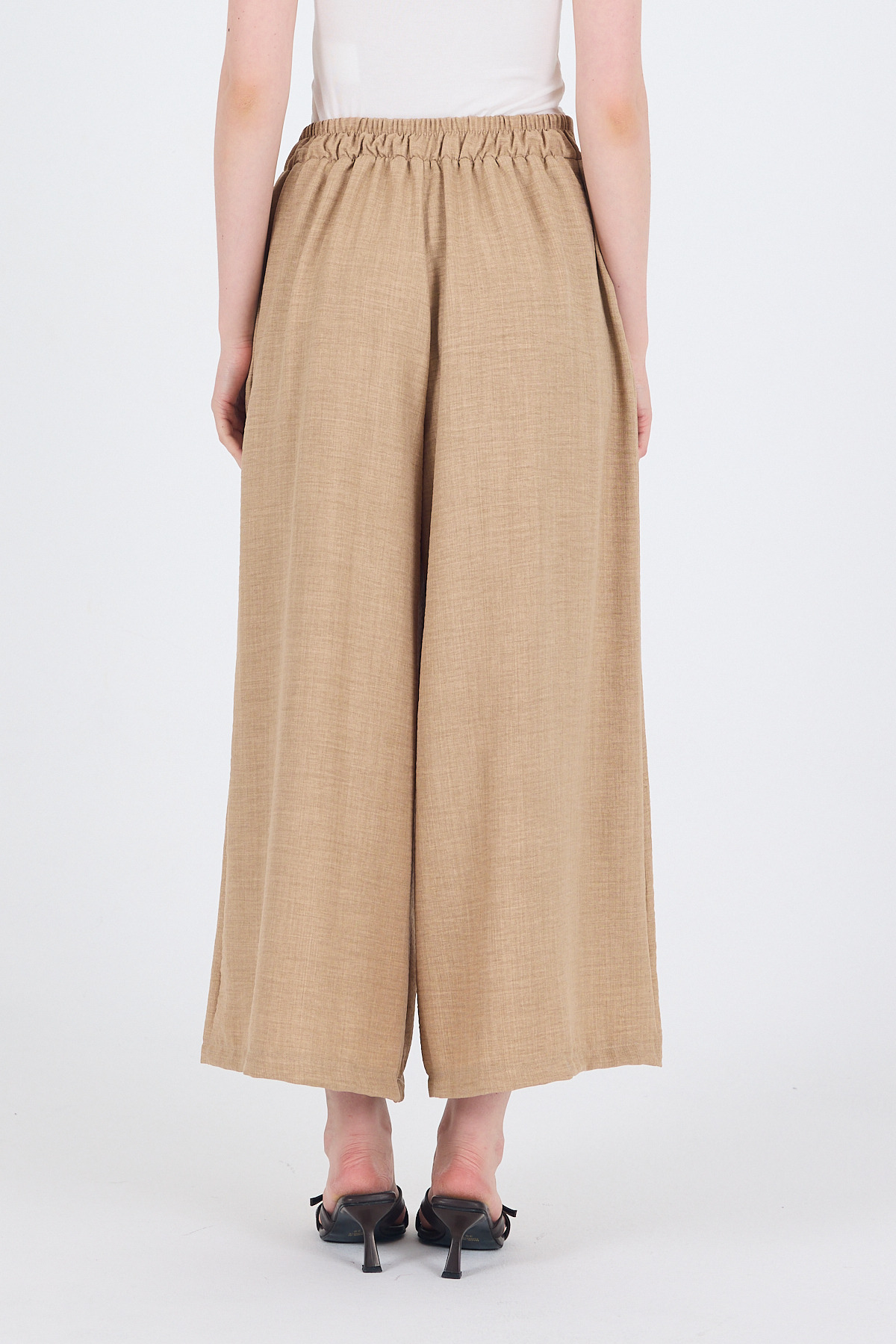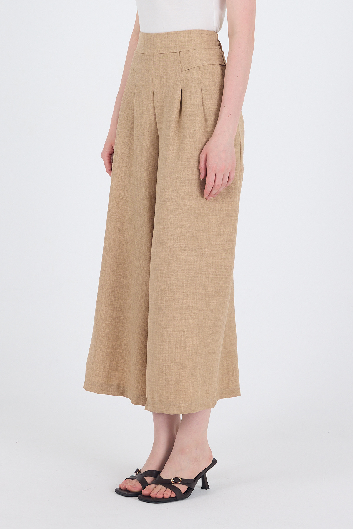 Vizon Pamuklu Keten Dokulu Yüksek Bel Pilili Palazzo Pantolon 4819A