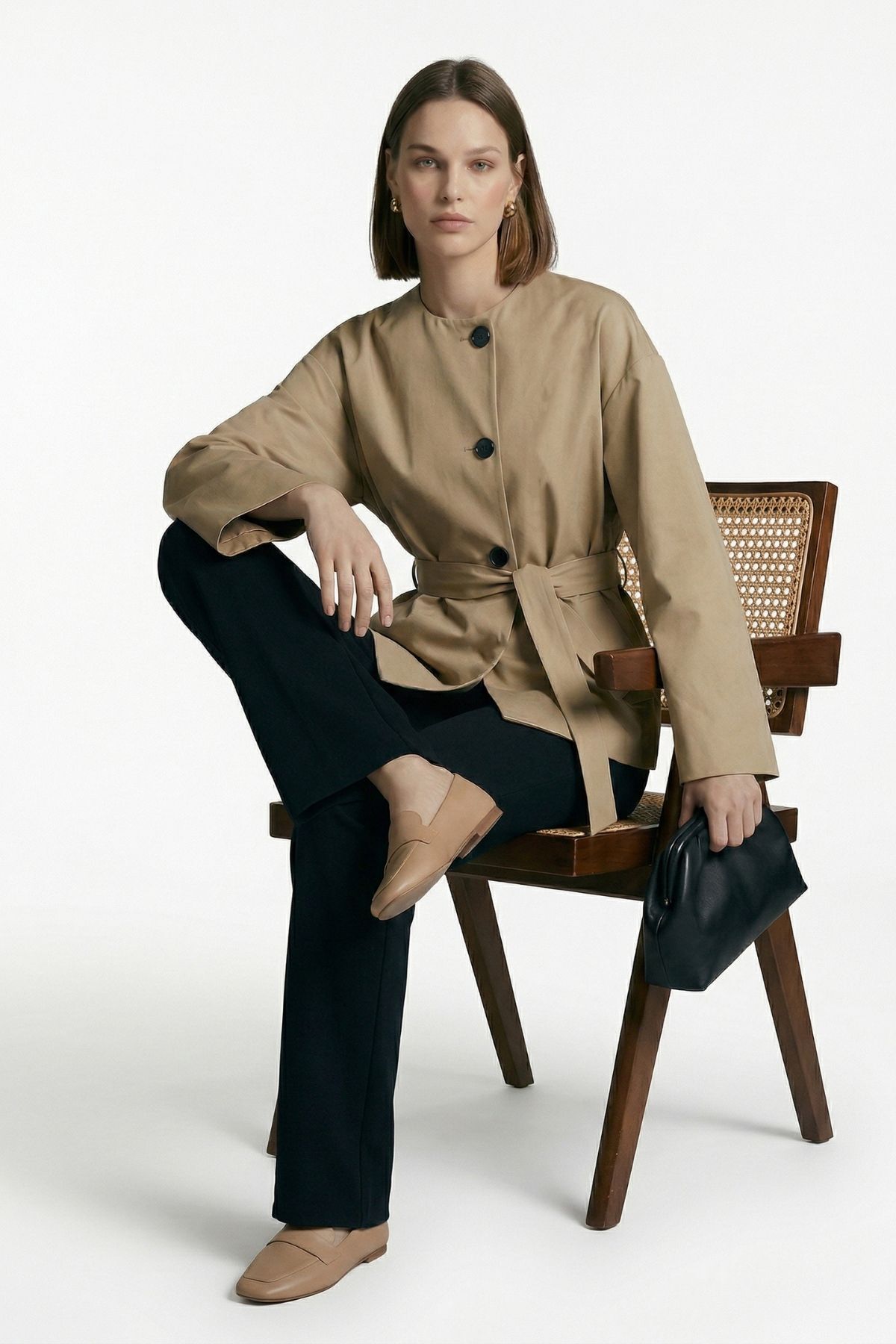 7672 Regular Fit Bisiklet Yaka Kuşaklı Ceket