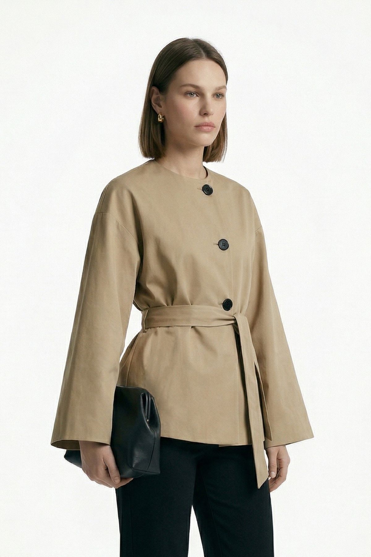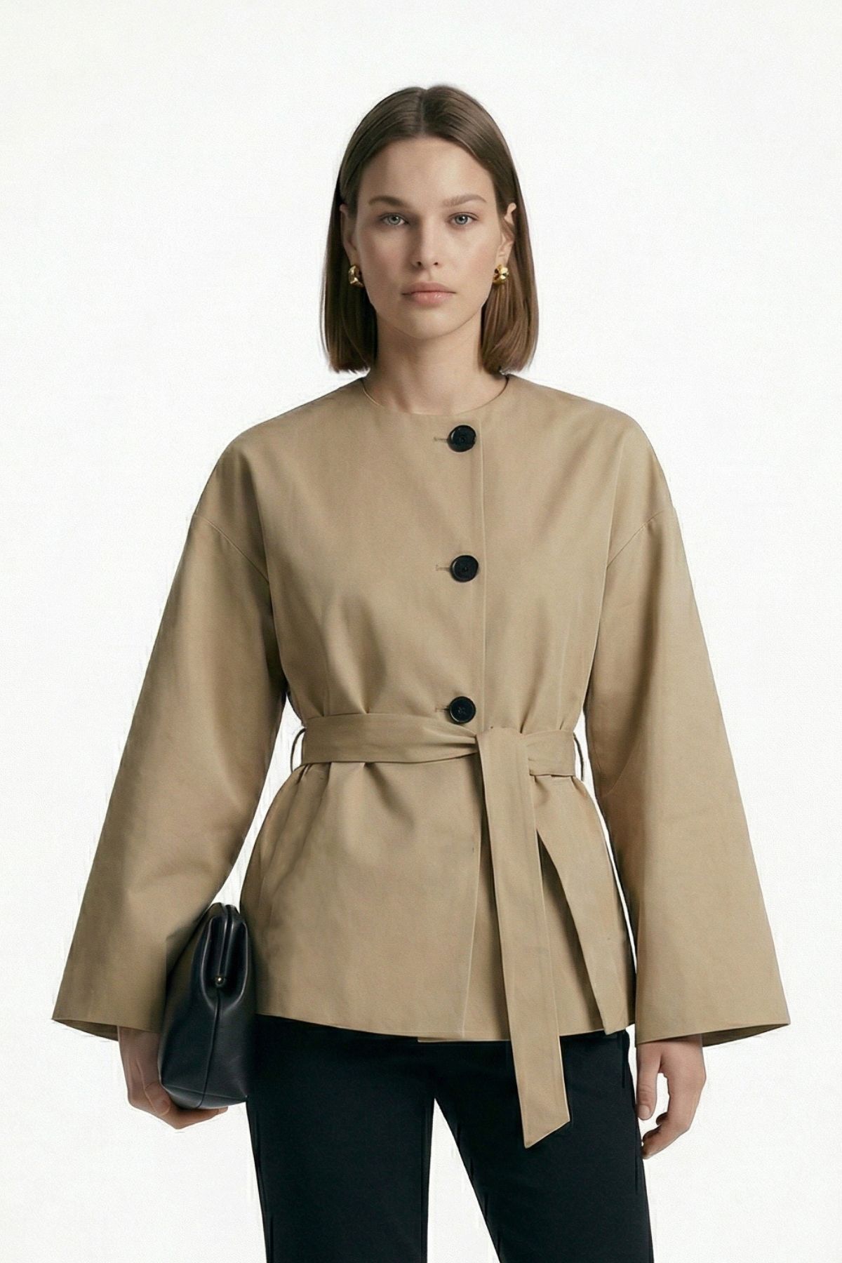 Vizon Regular Fit Bisiklet Yaka Kuşaklı Ceket 7672