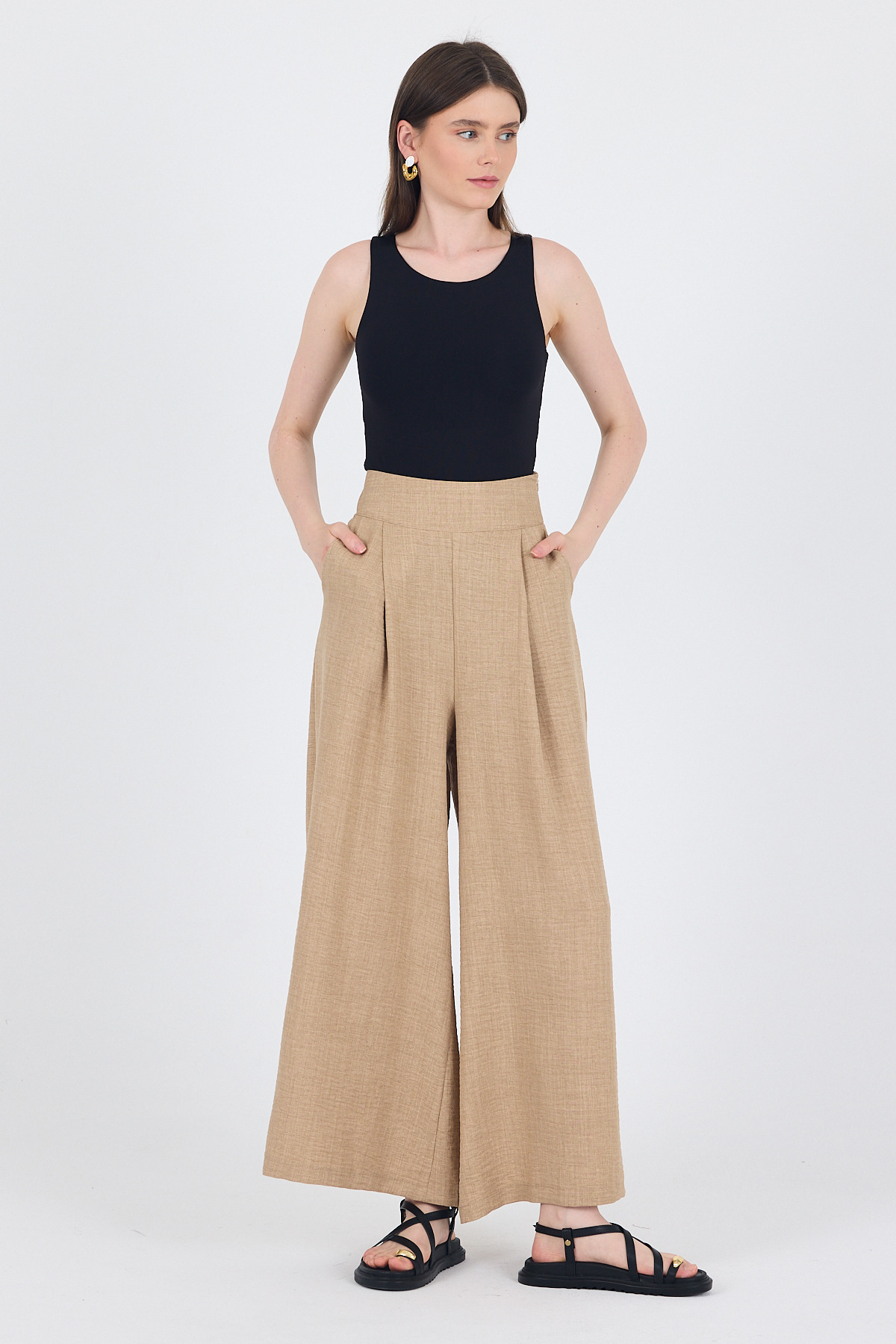 Vizon Yüksek Bel Pile Detaylı Bol Paça Pantolon 4810A