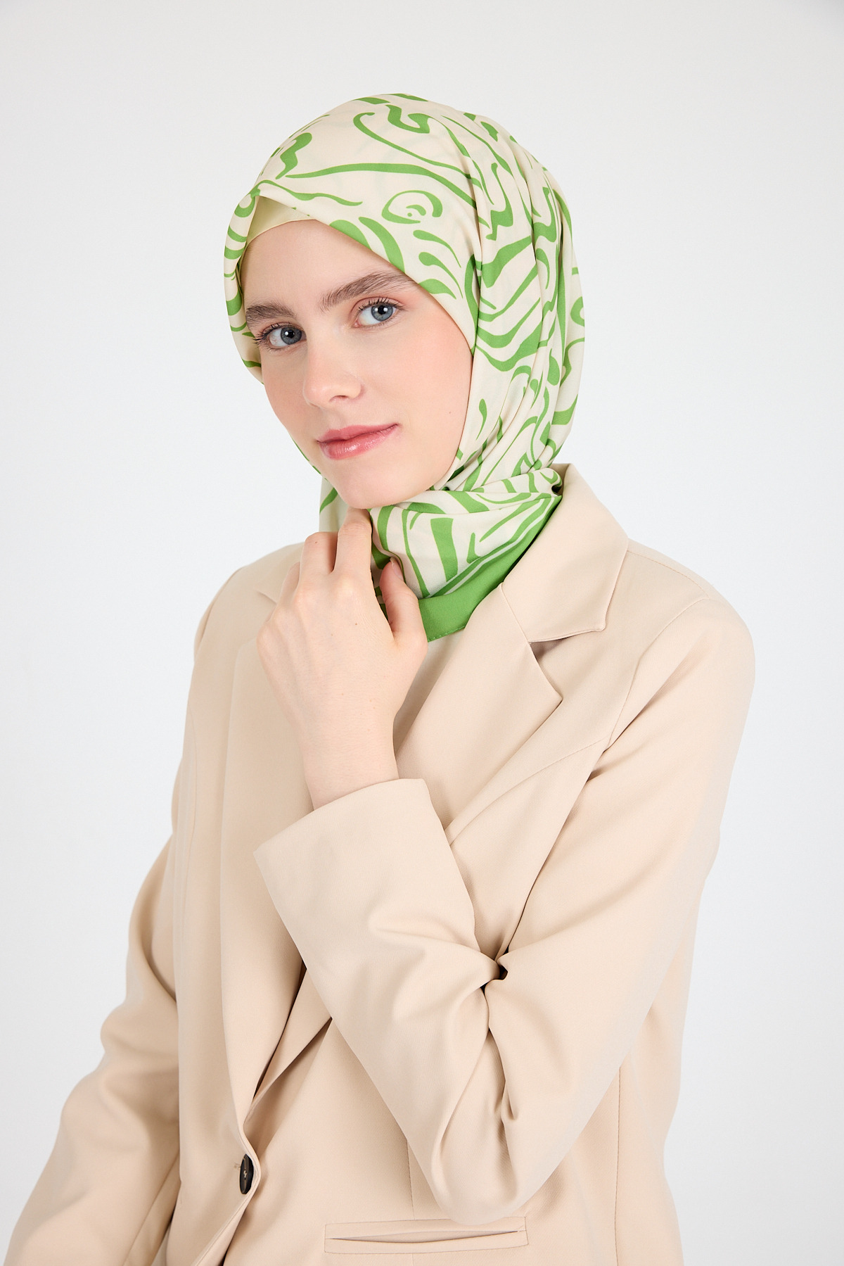 Yağ Yeşili Desenli Eşarp 5694