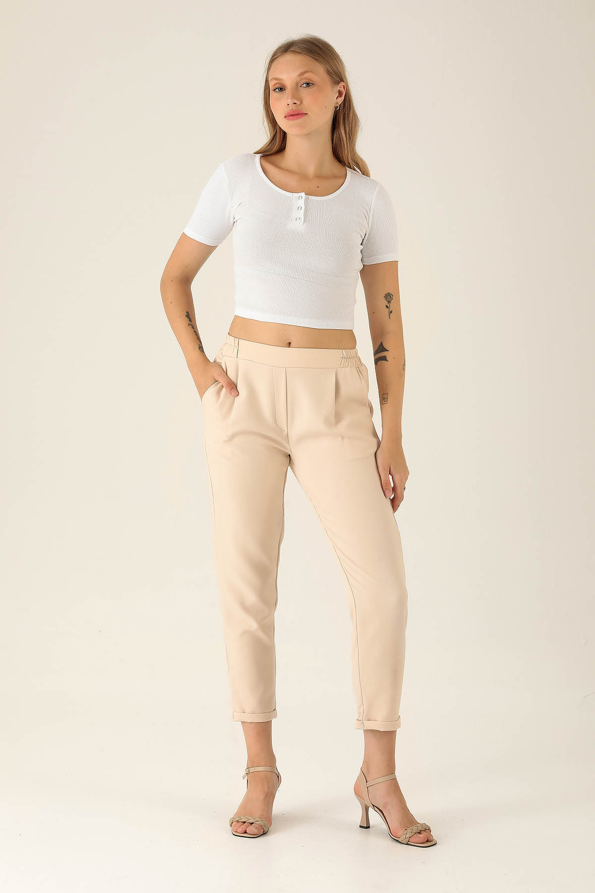 Yaka Çıtçıtlı Bayan Bluz - 1432 Beyaz