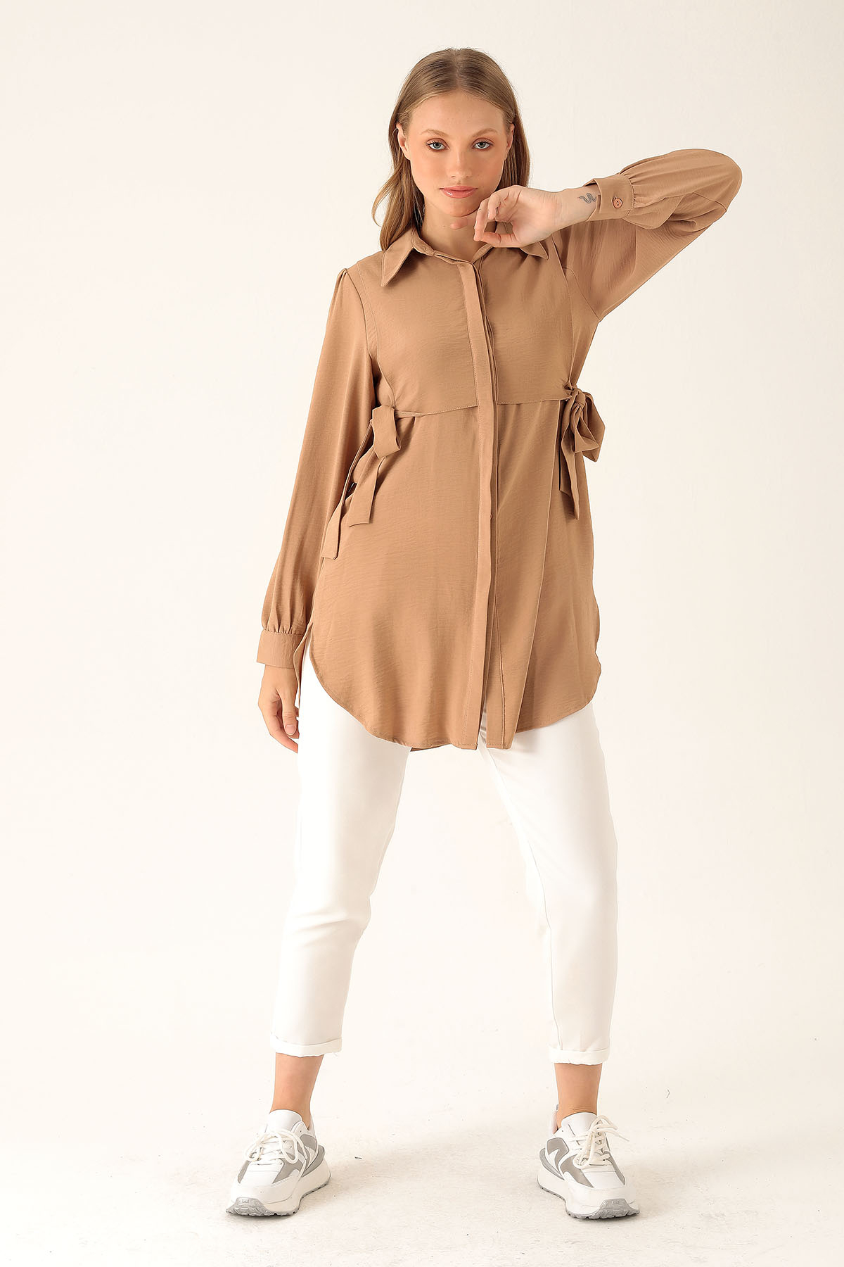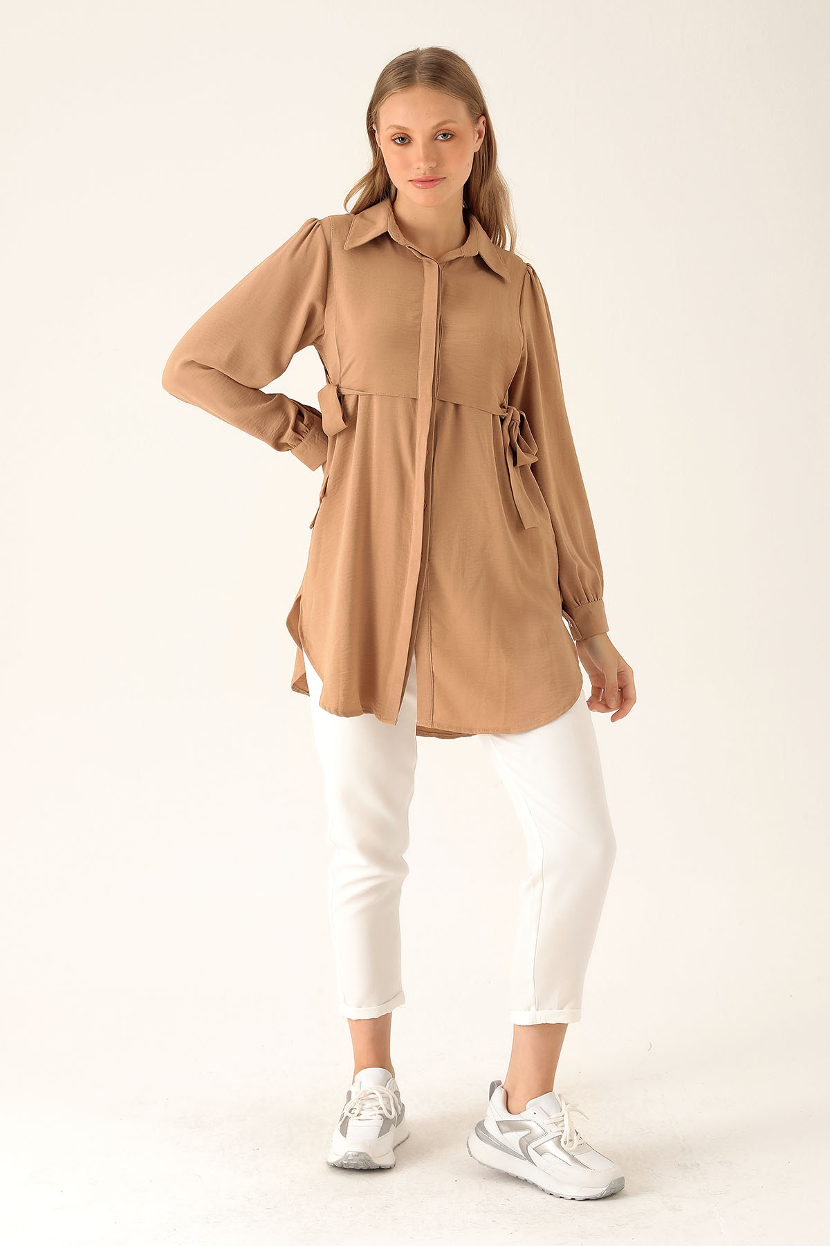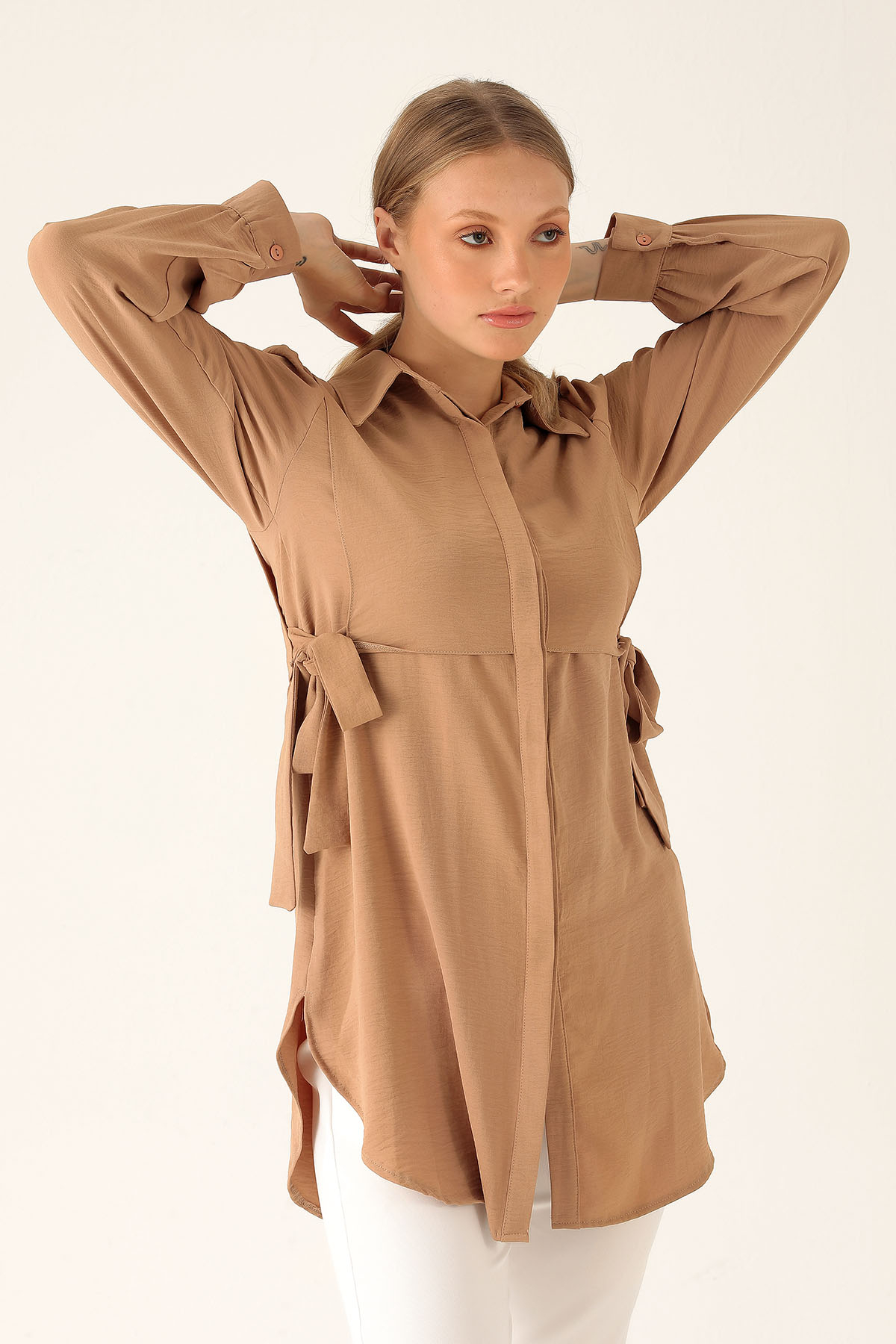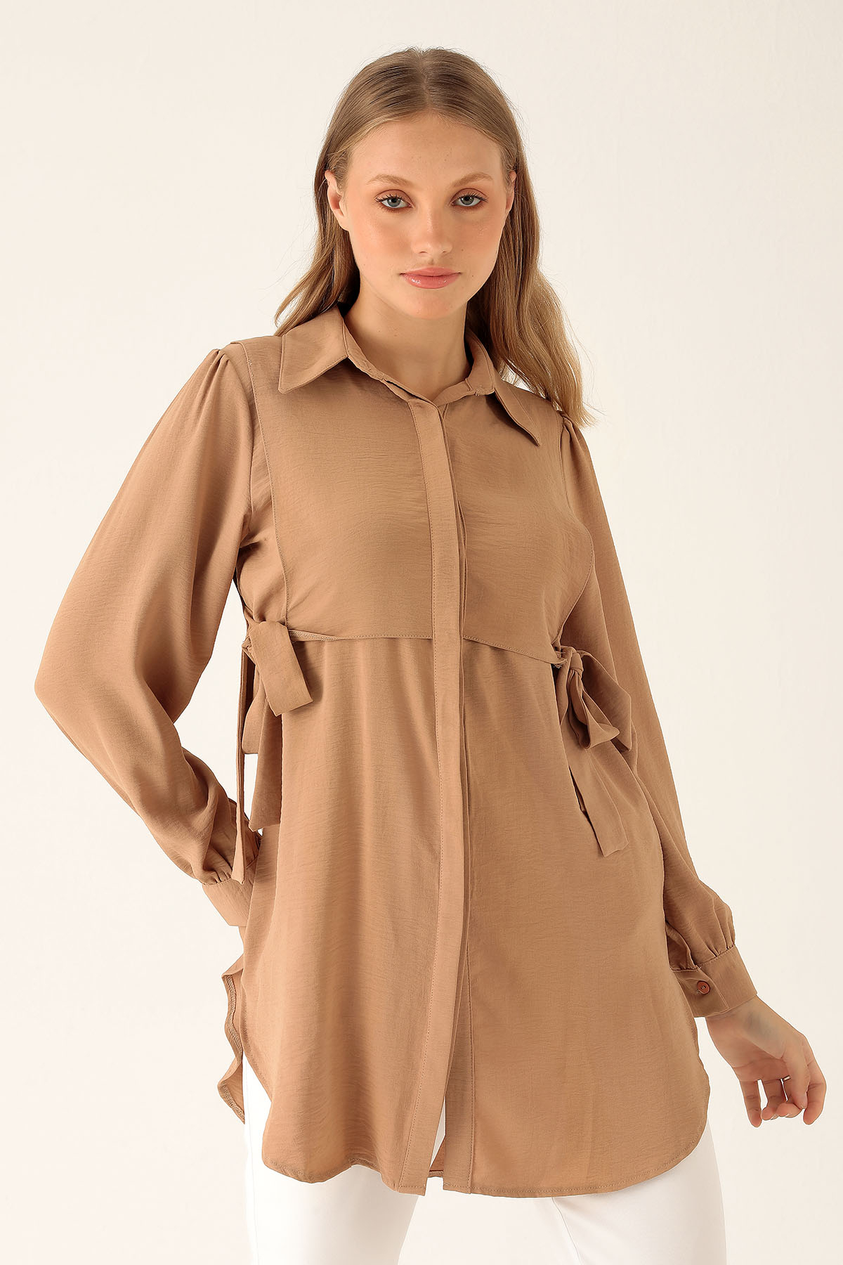 Yan Bağlama Detaylı Tunik - 6480A Vizon