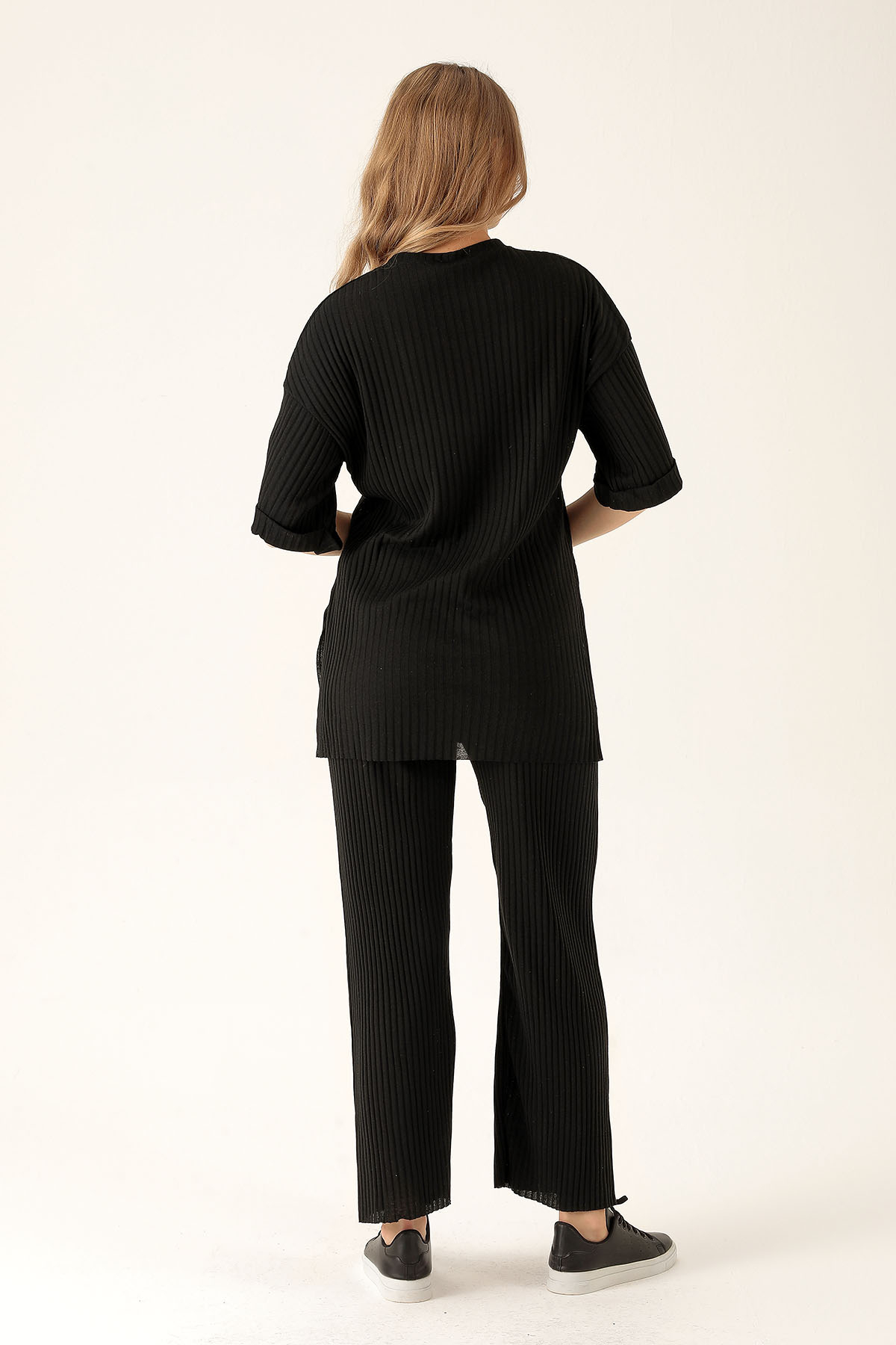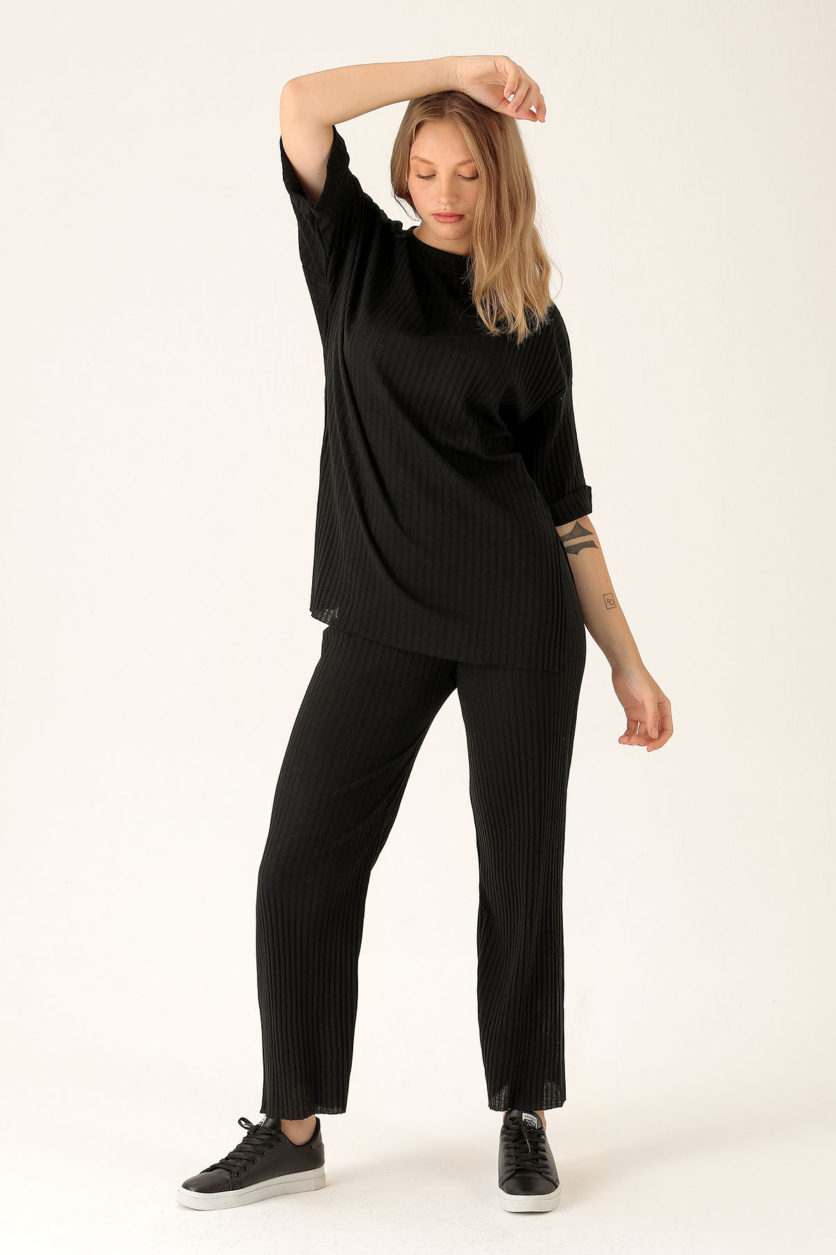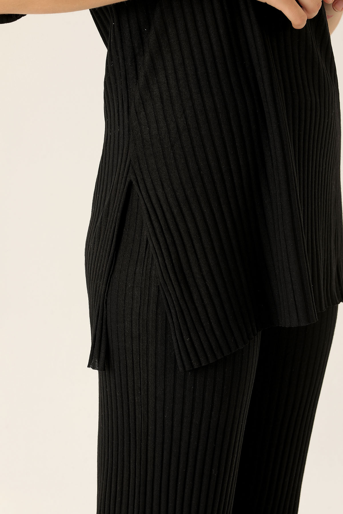 Yan Yırtmac Tişört-Bayan Pantolon Takım - 538 Siyah