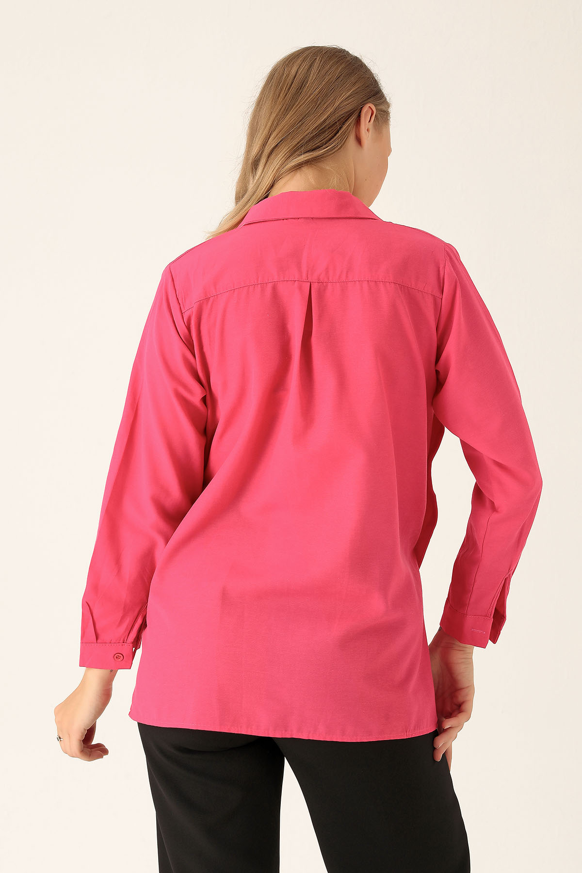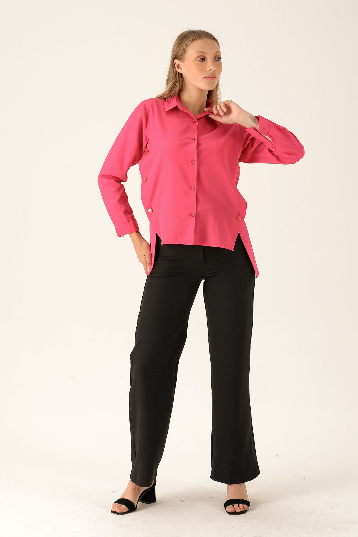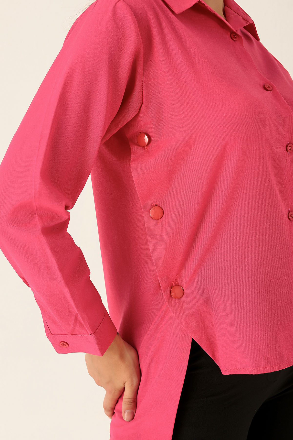 Yandan Çıtçıtlı Düğmeli Bayan Gömlek - 6508A Fuşya