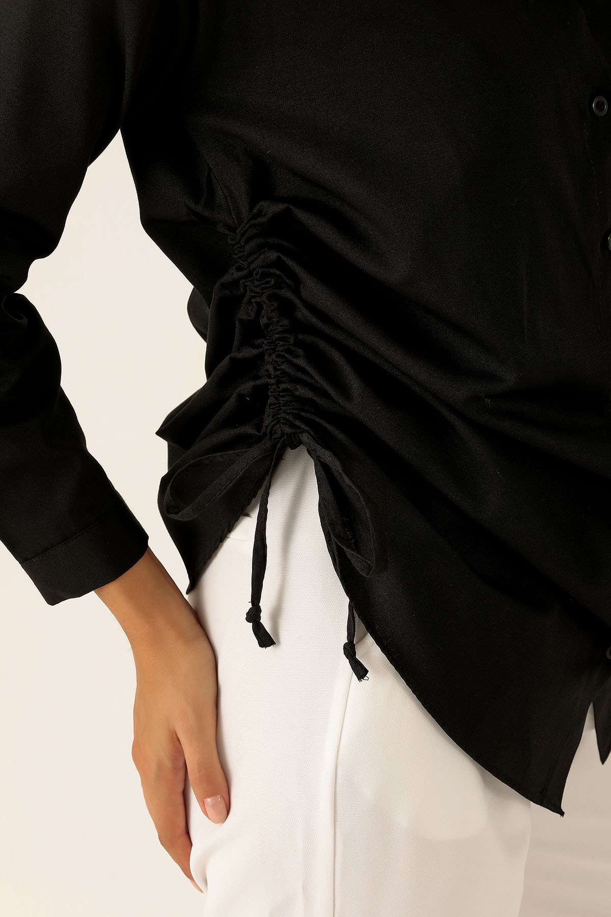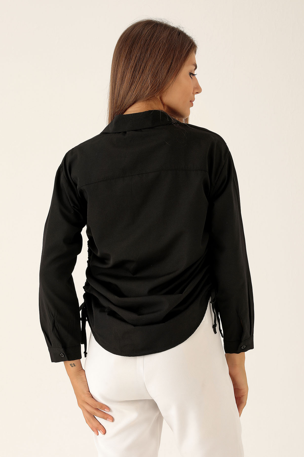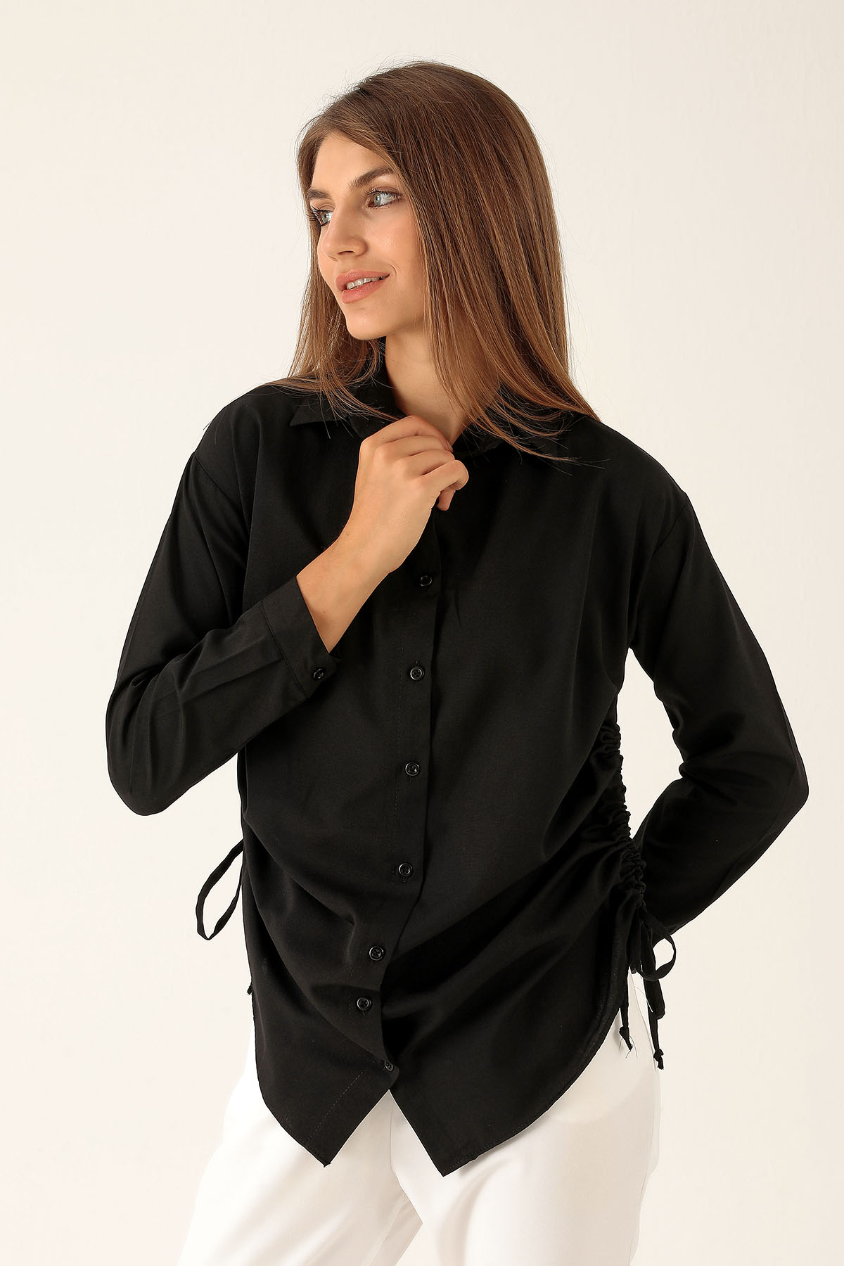 Yanları Büzgülü Bayan Gömlek - 6428A Siyah