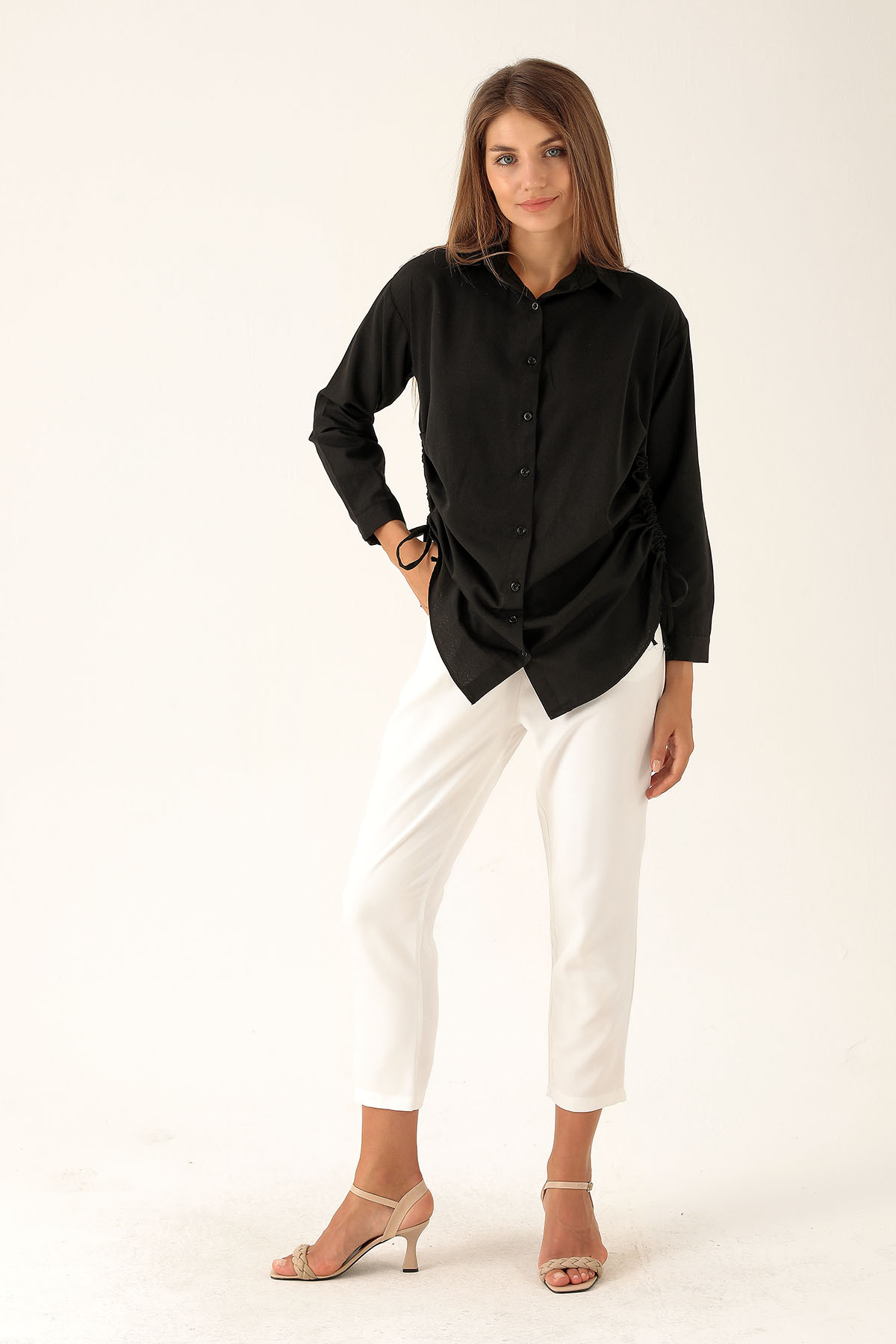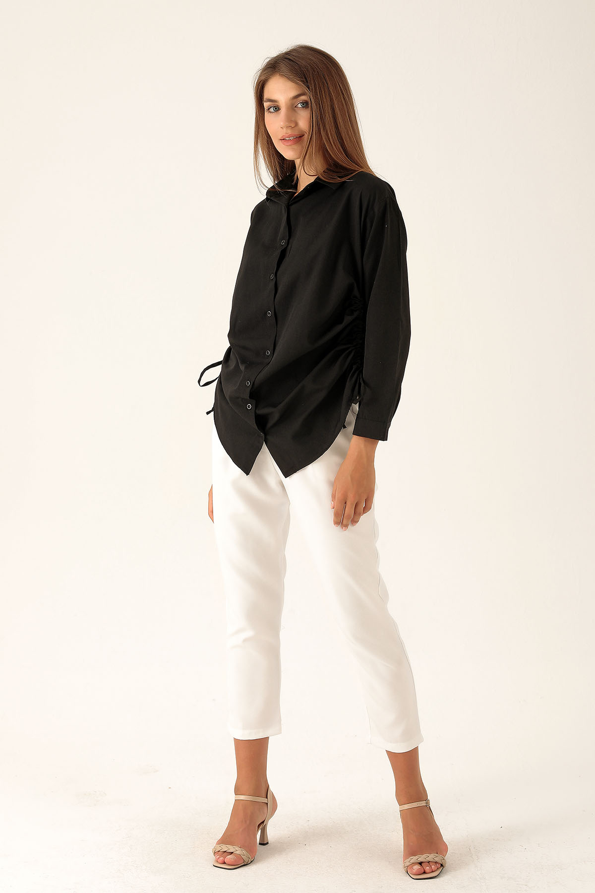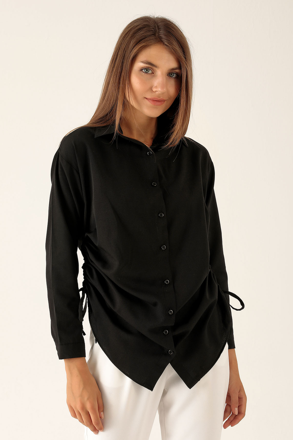 Yanları Büzgülü Bayan Gömlek - 6428A Siyah
