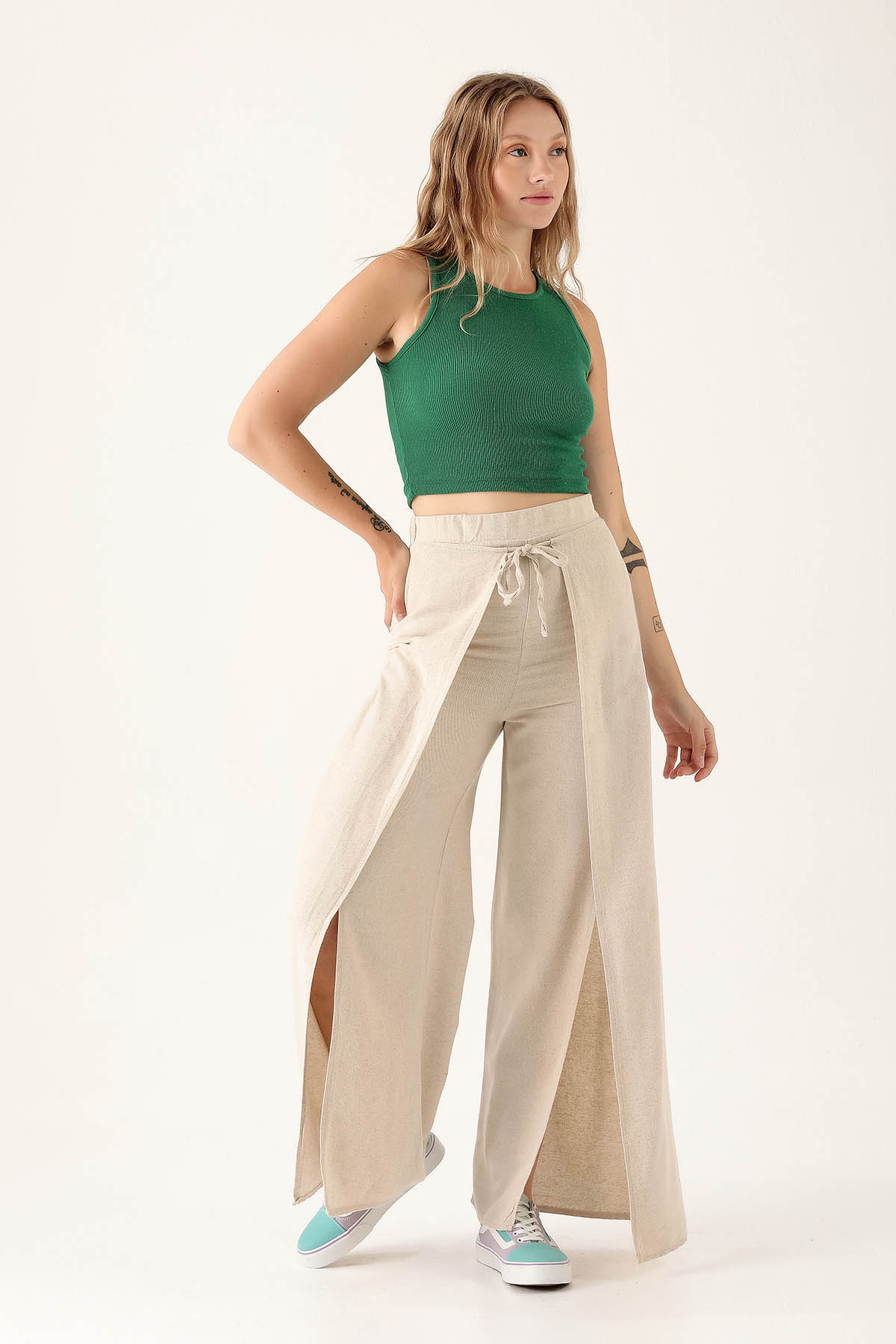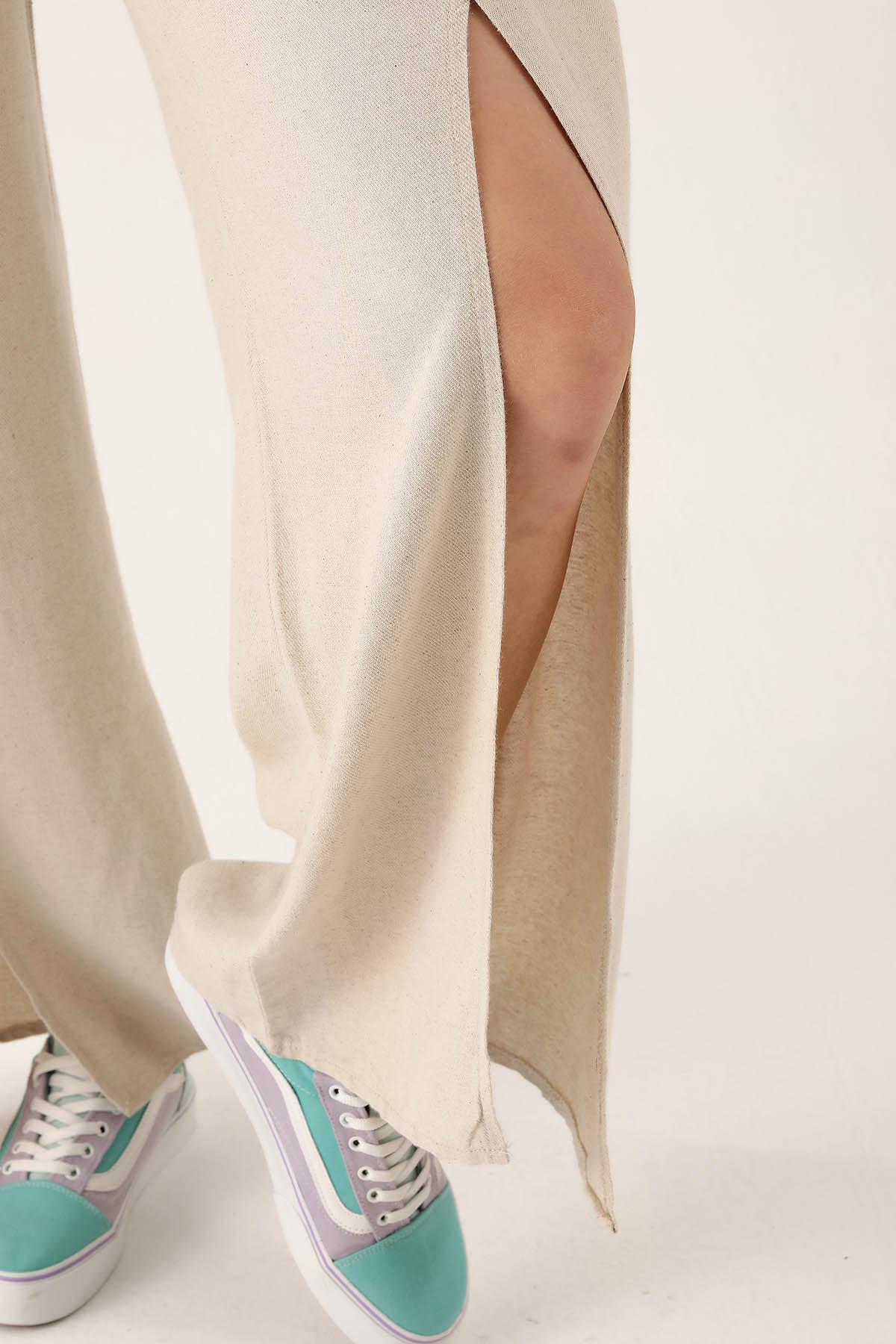 Yırtmaç Detay Bol Bayan Pantolon - 4044 Natural