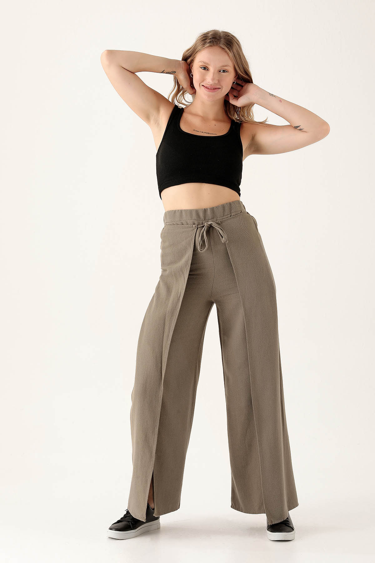 Haki Pileli Palazzo Pantolon 3871 - RAYS Haki Pileli Palazzo Pantolon 3871 - RAYS (1)
