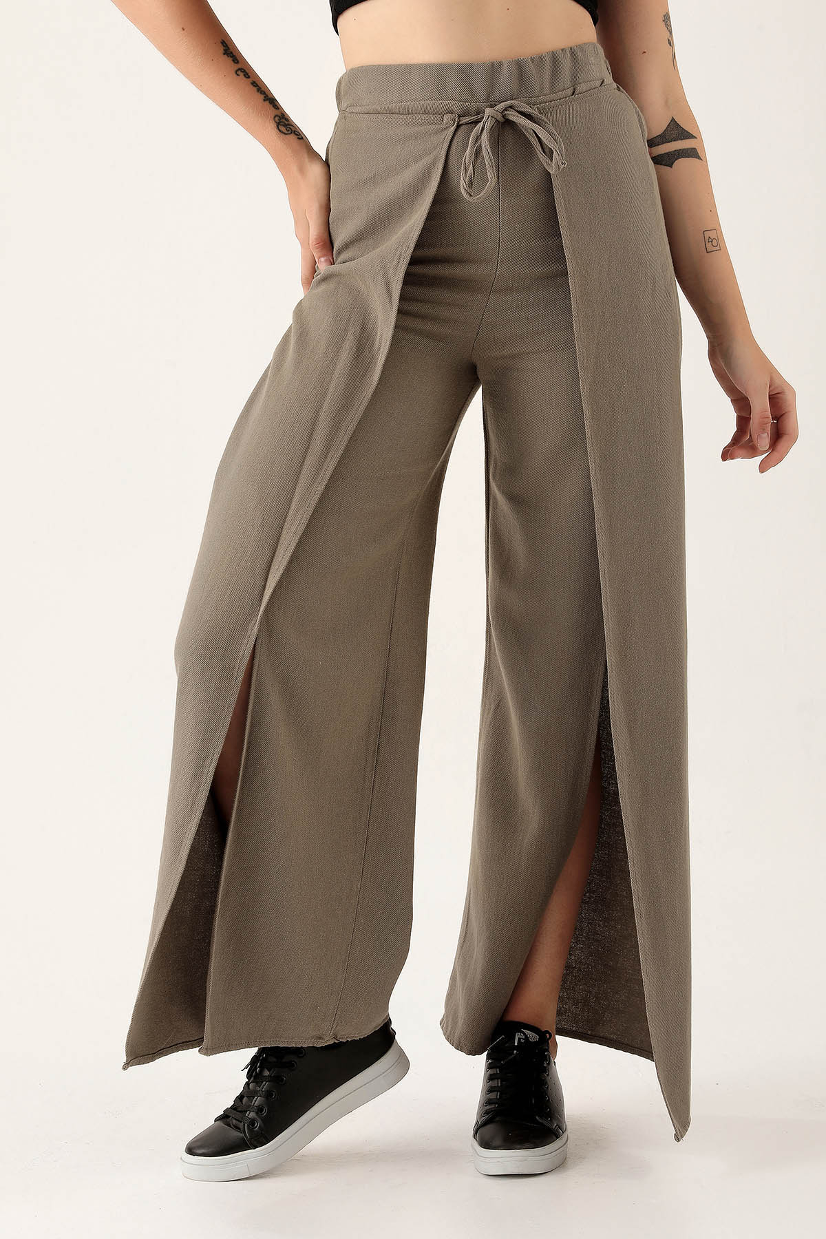 Yırtmaç Detay Bol Bayan Pantolon - 4044 Olive Yeşili