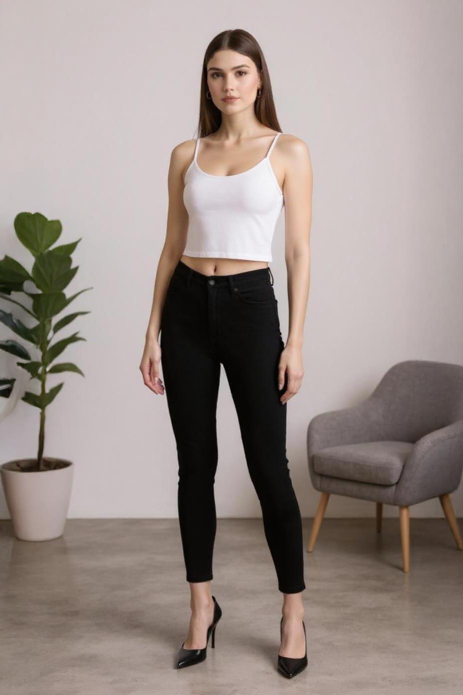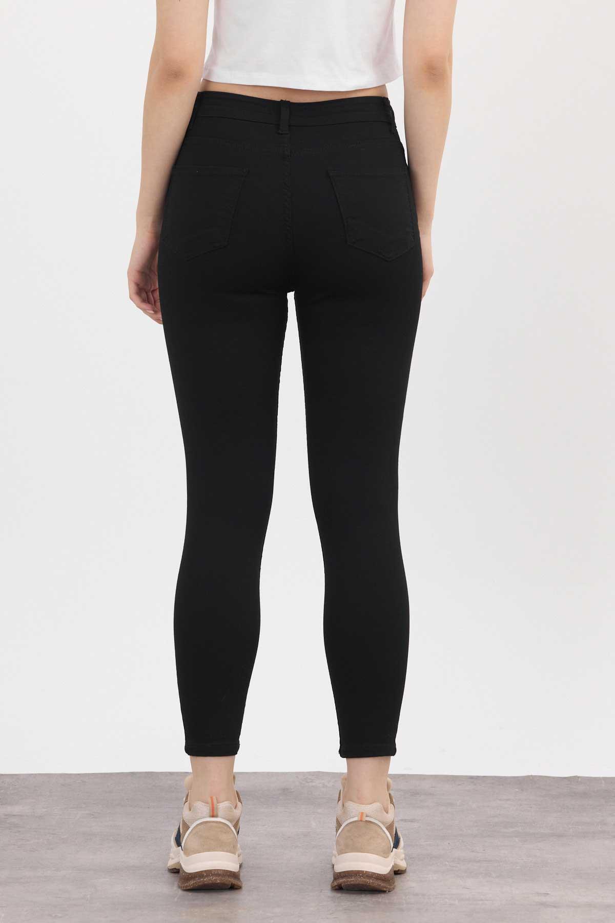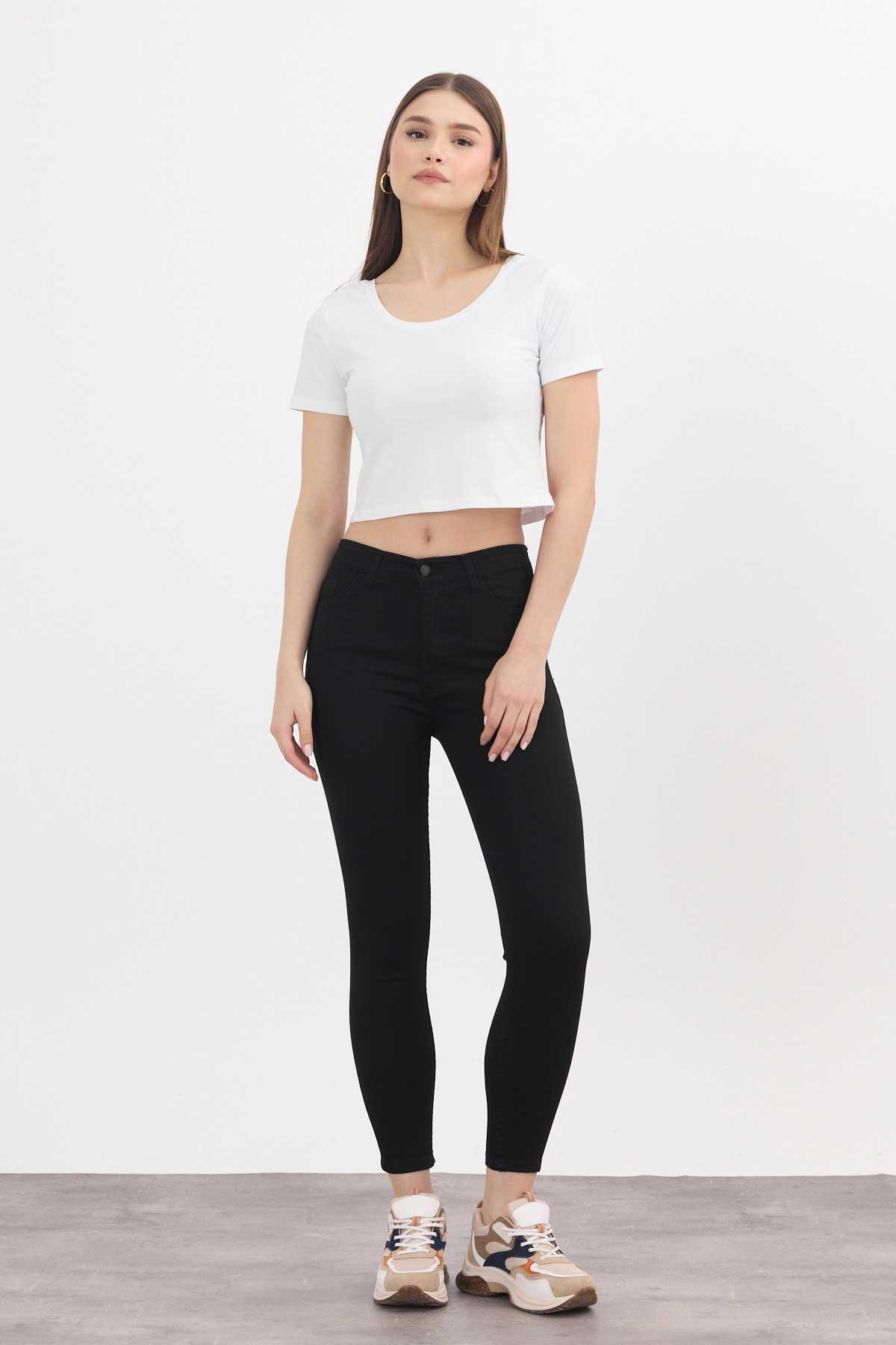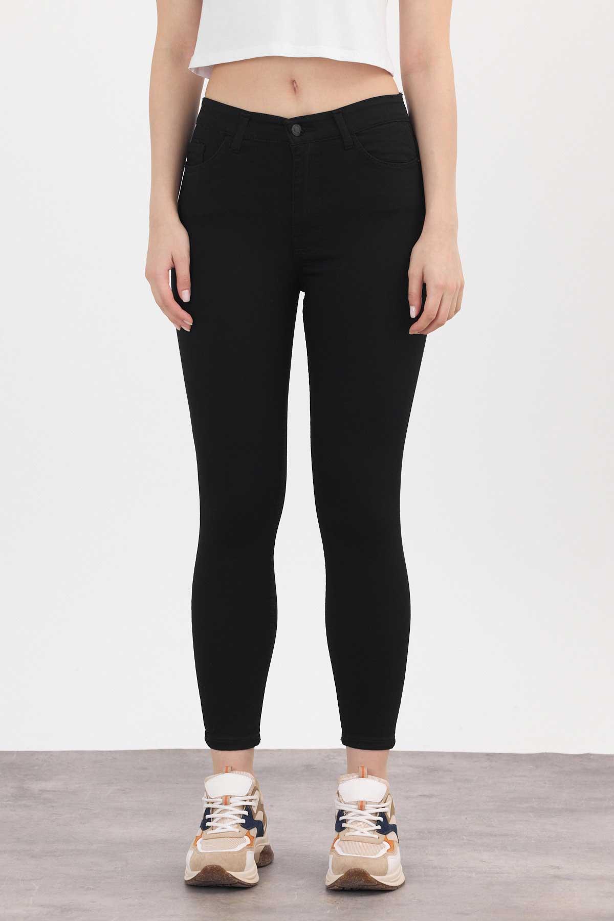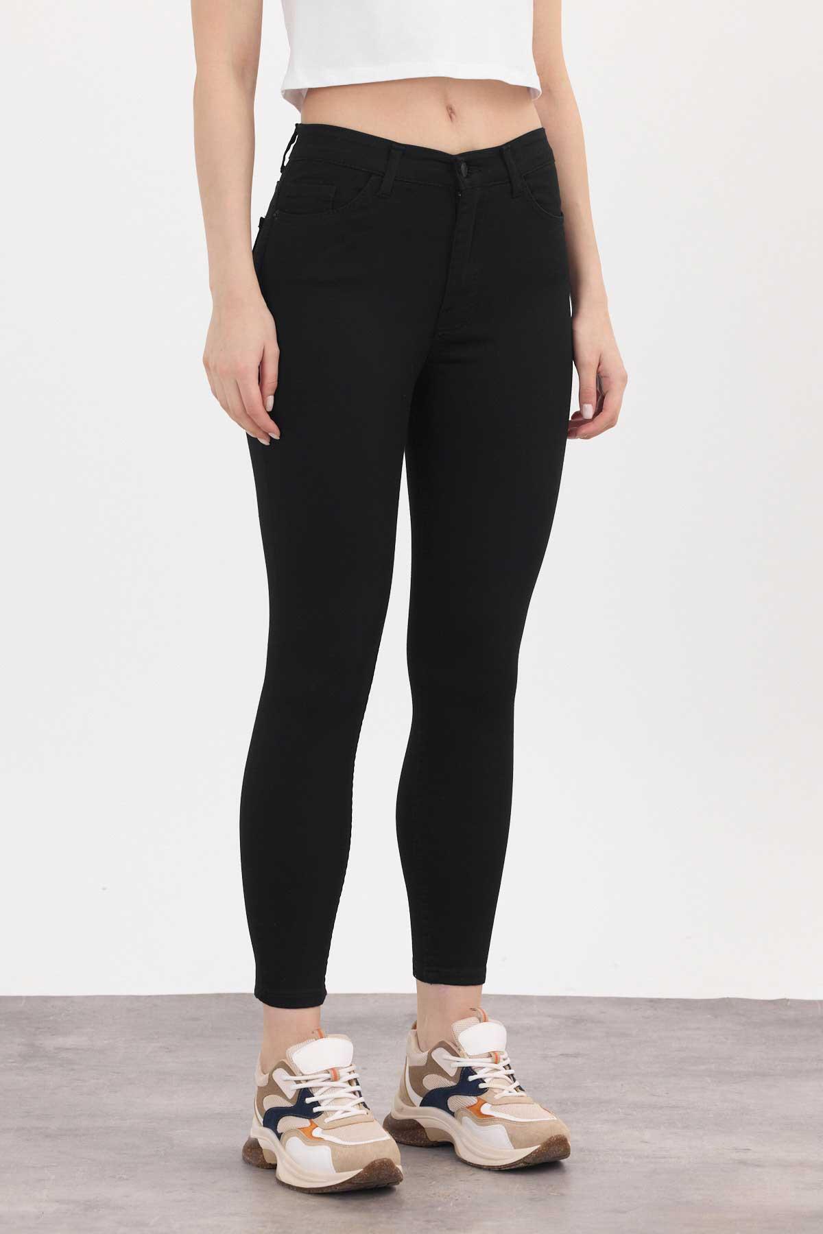 Yüksek Bel Dar Paça Dar Kesim Bayan Pantolon - 2111 Siyah