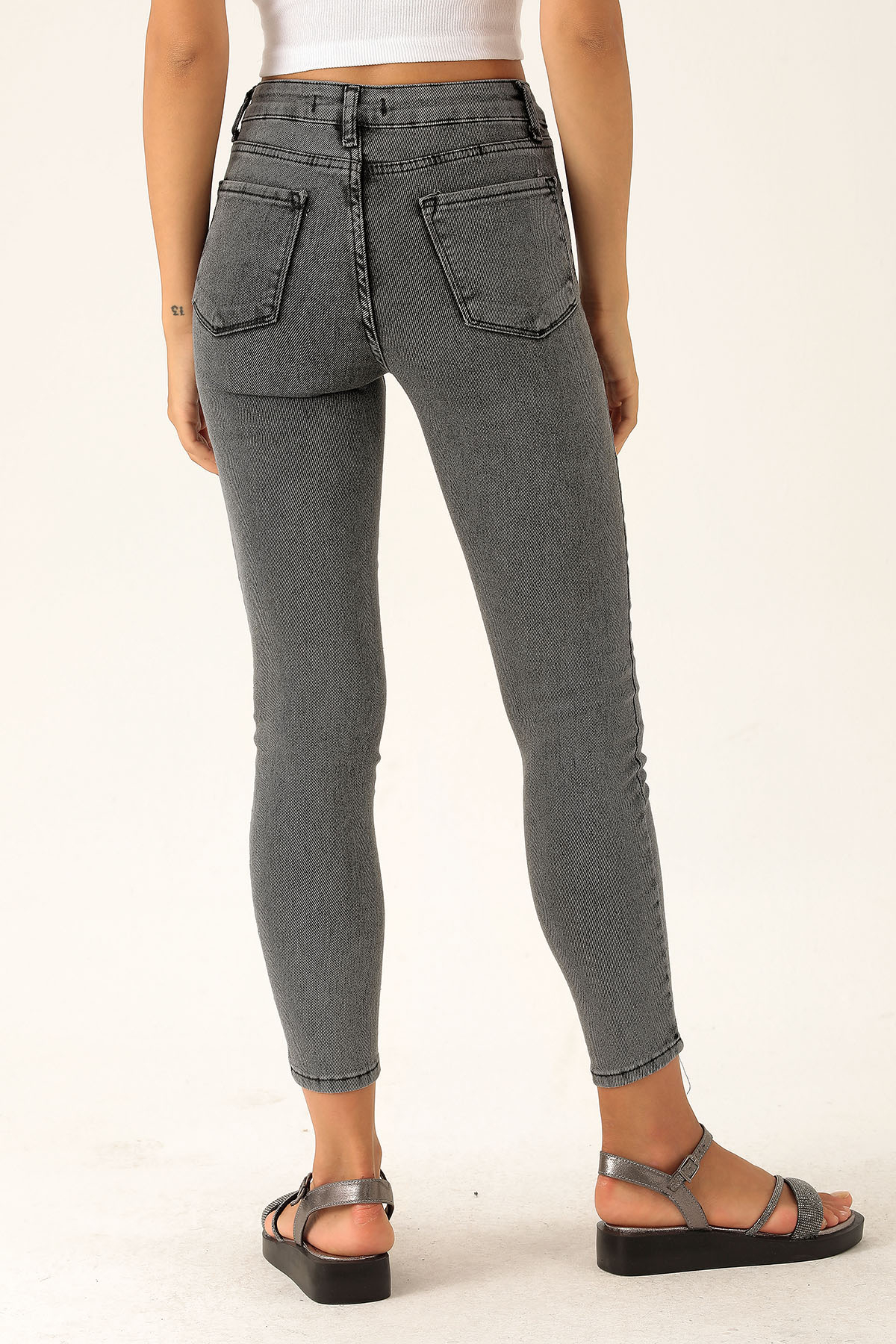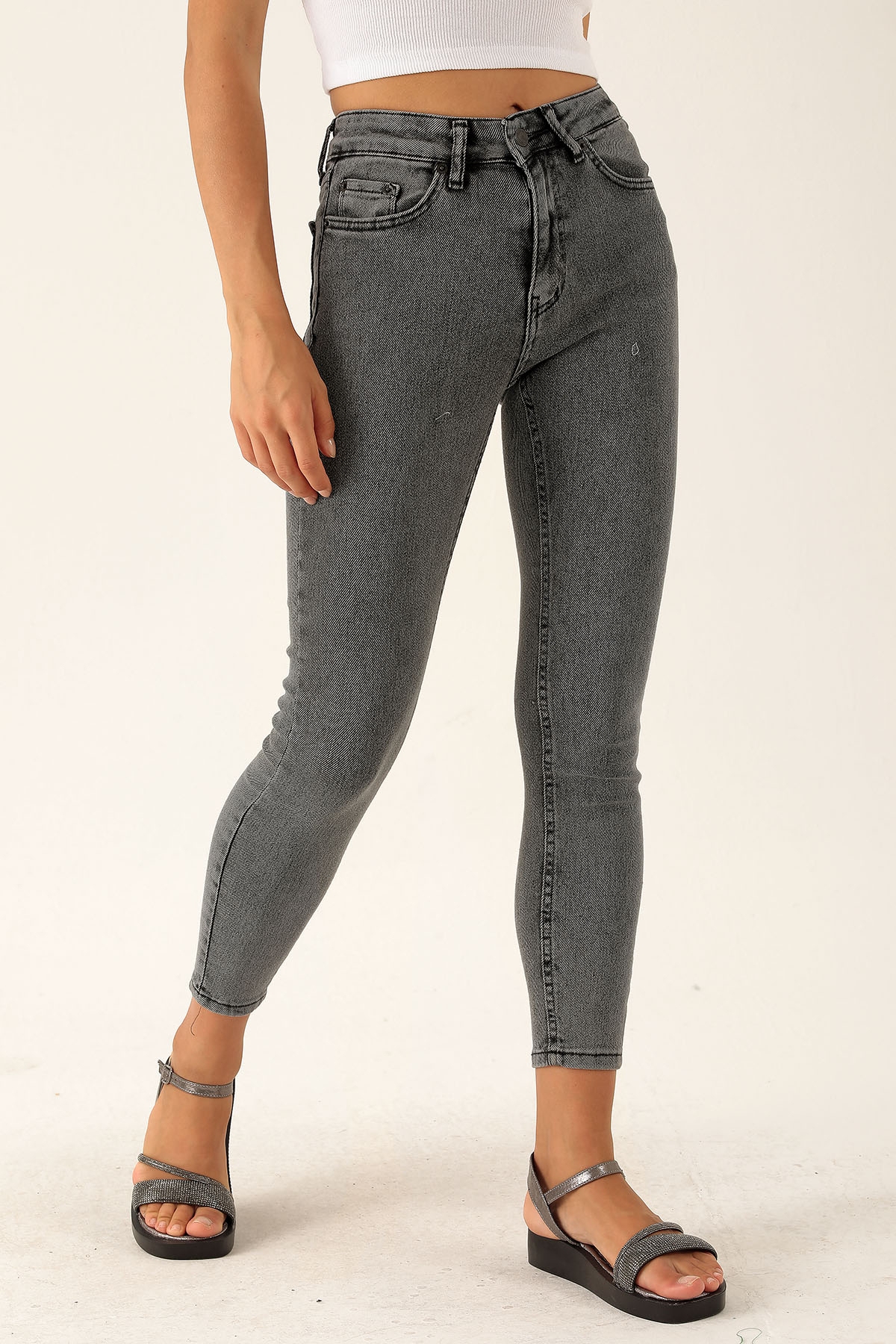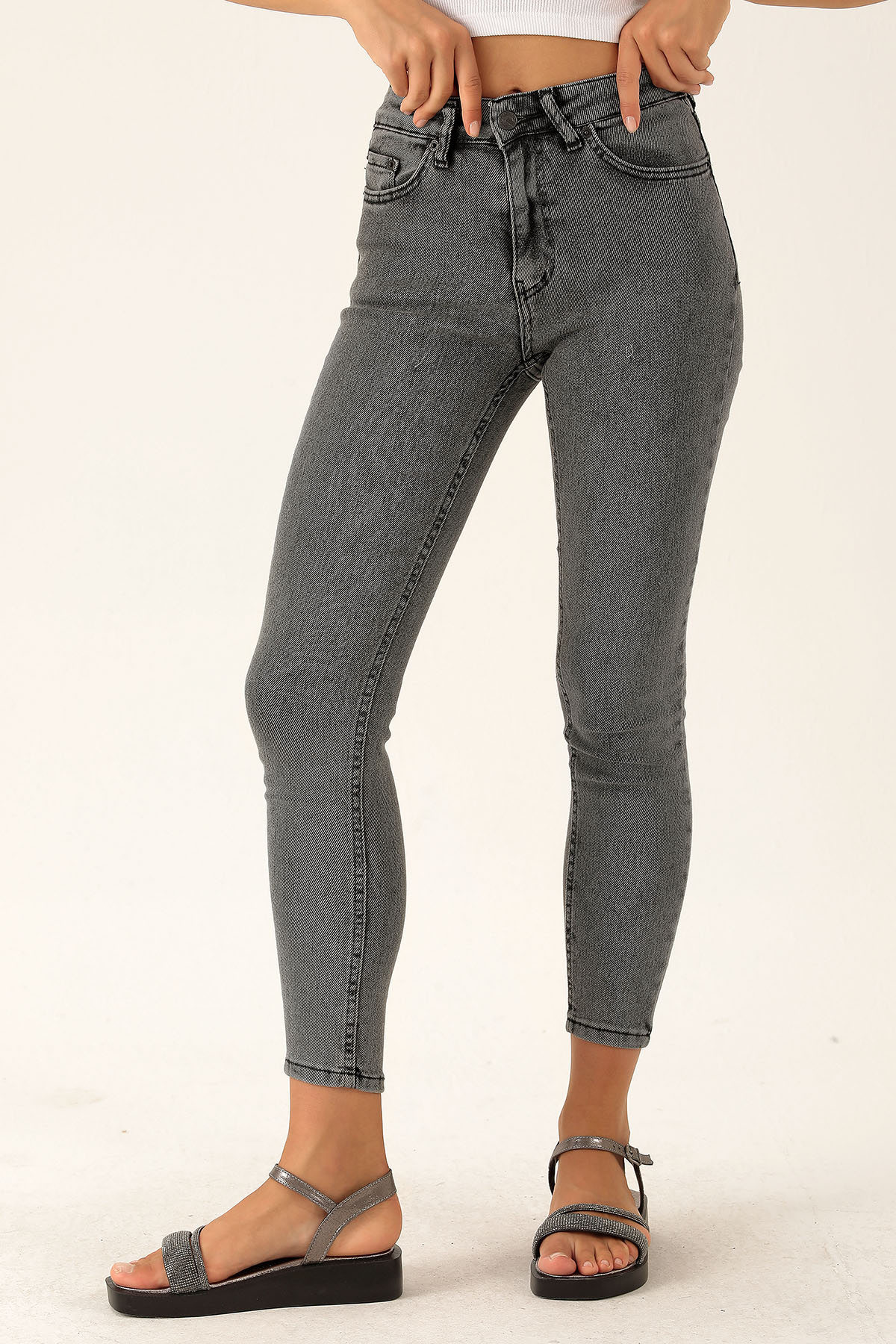 Yüksek Bel Dar Paça Bayan Pantolon - 3023-1 Füme