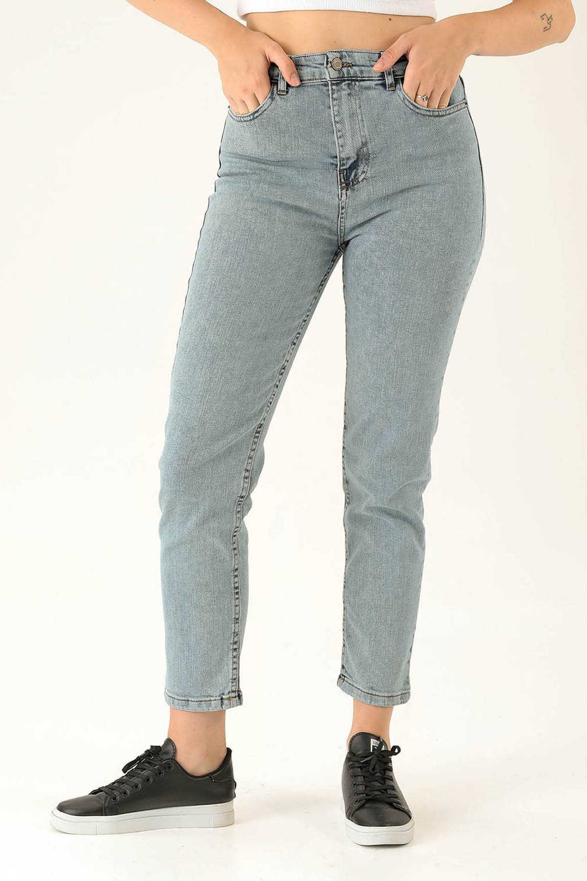 Yüksek Bel Mom Jean - 1121 Açık Mavi