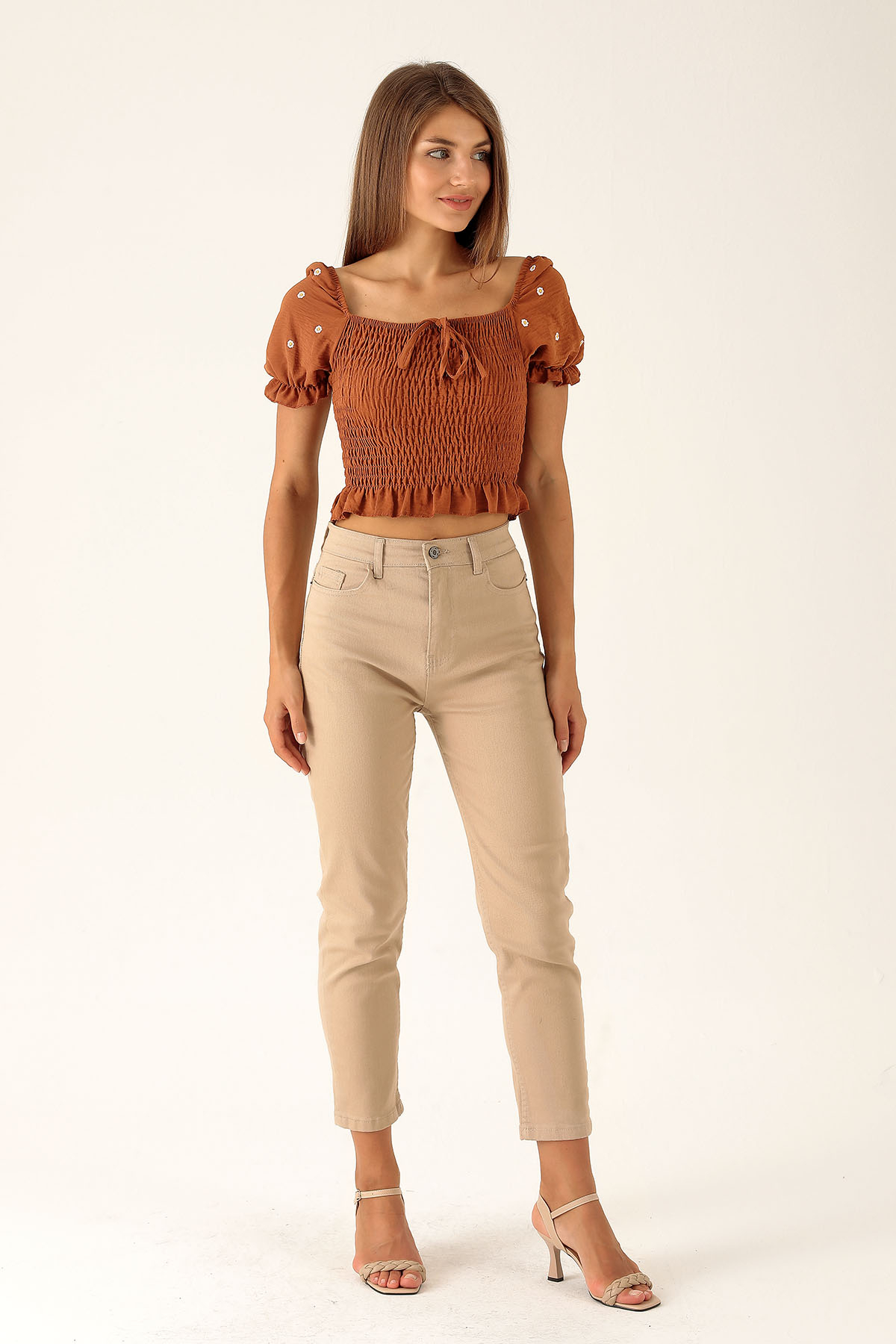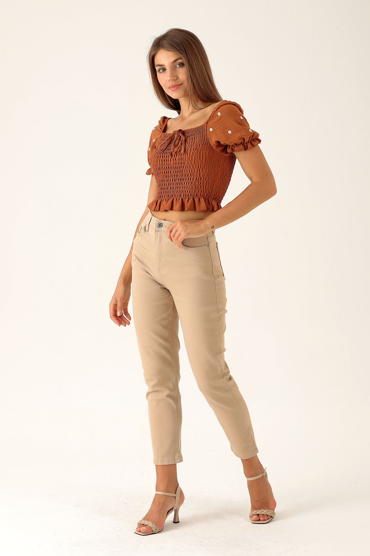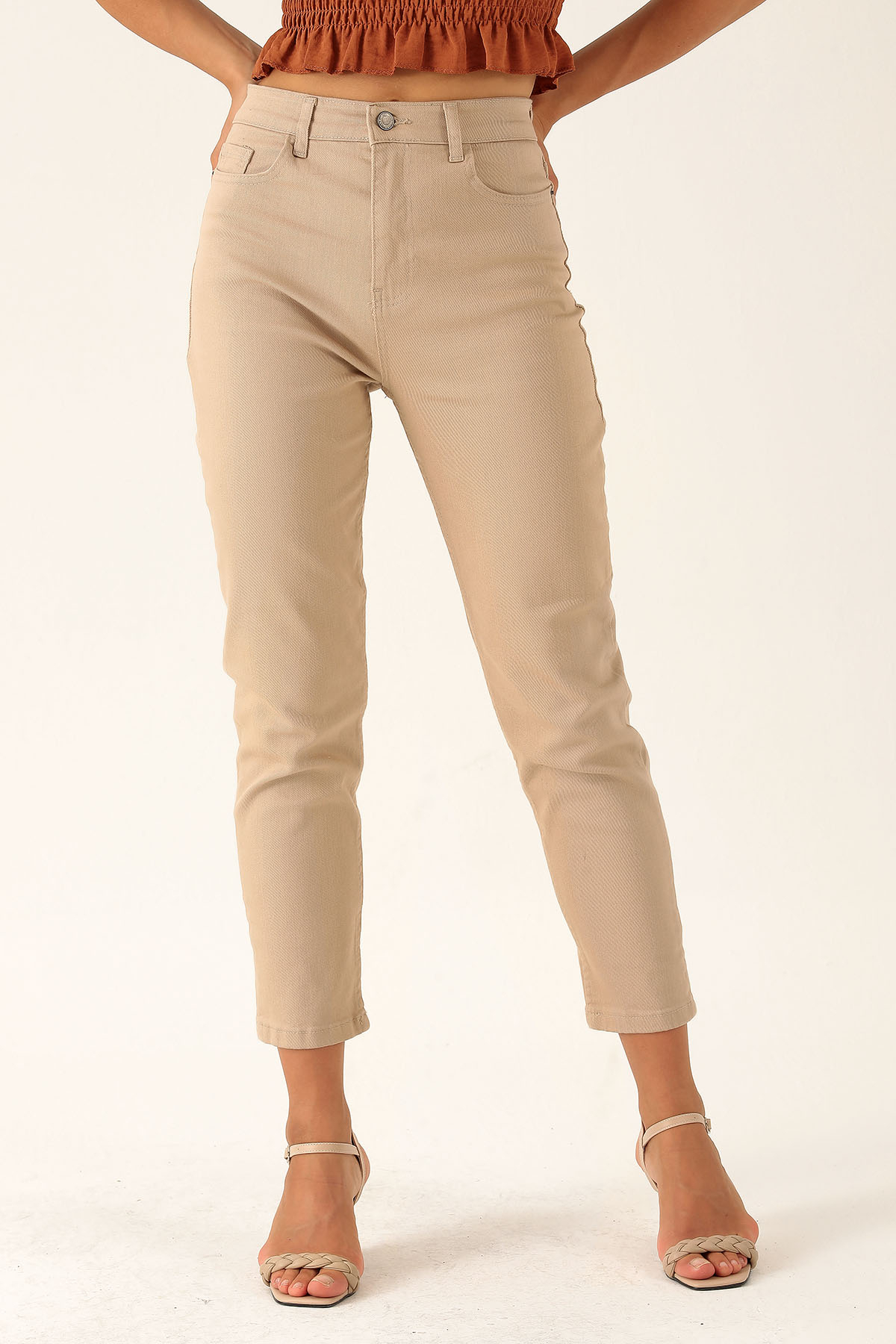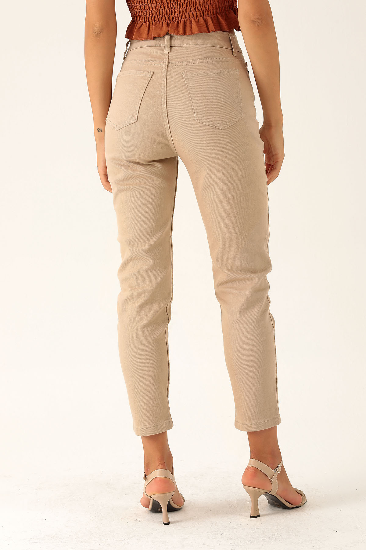 Yüksek Bel Mom Jean - 1121 Bej