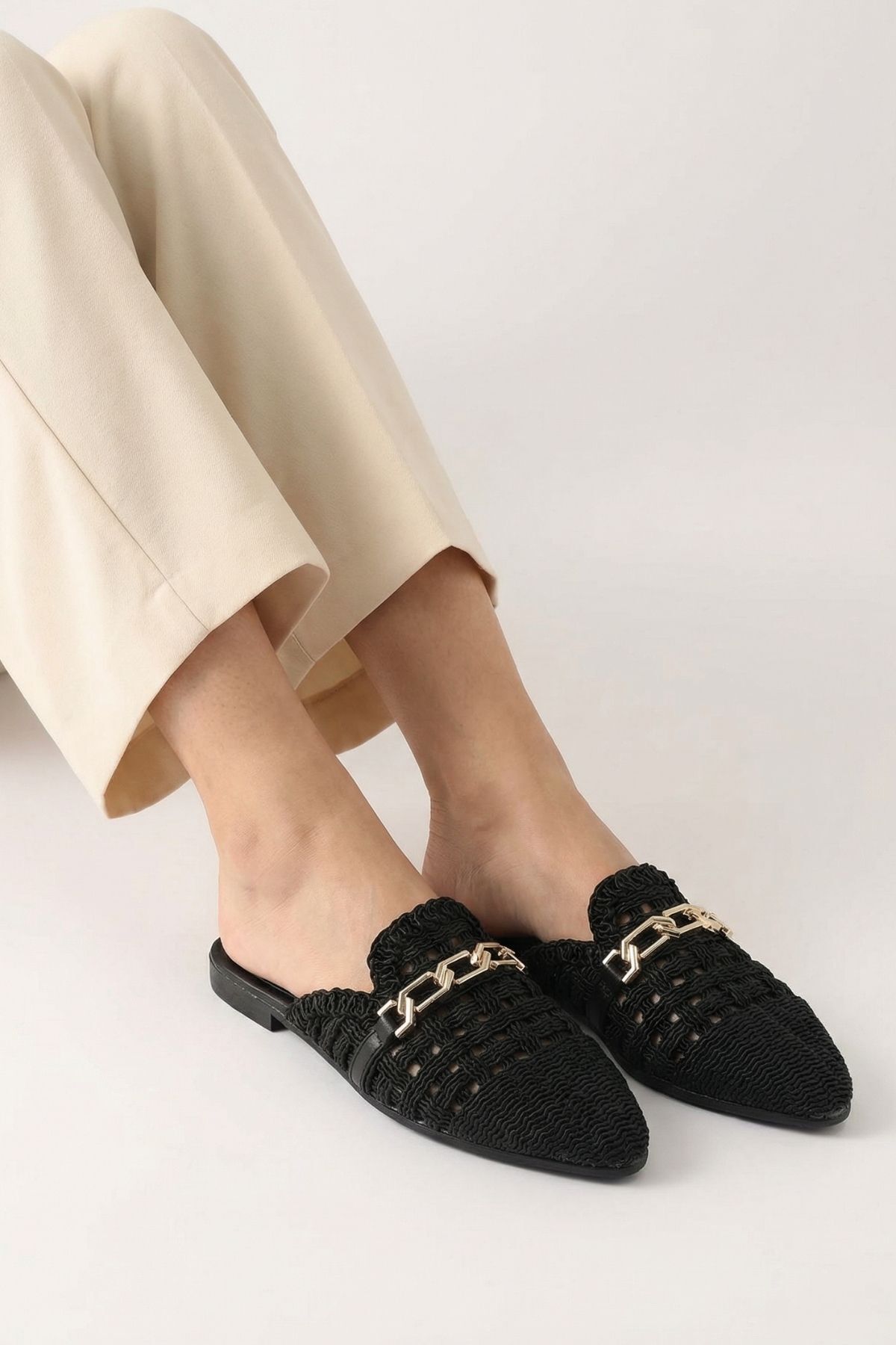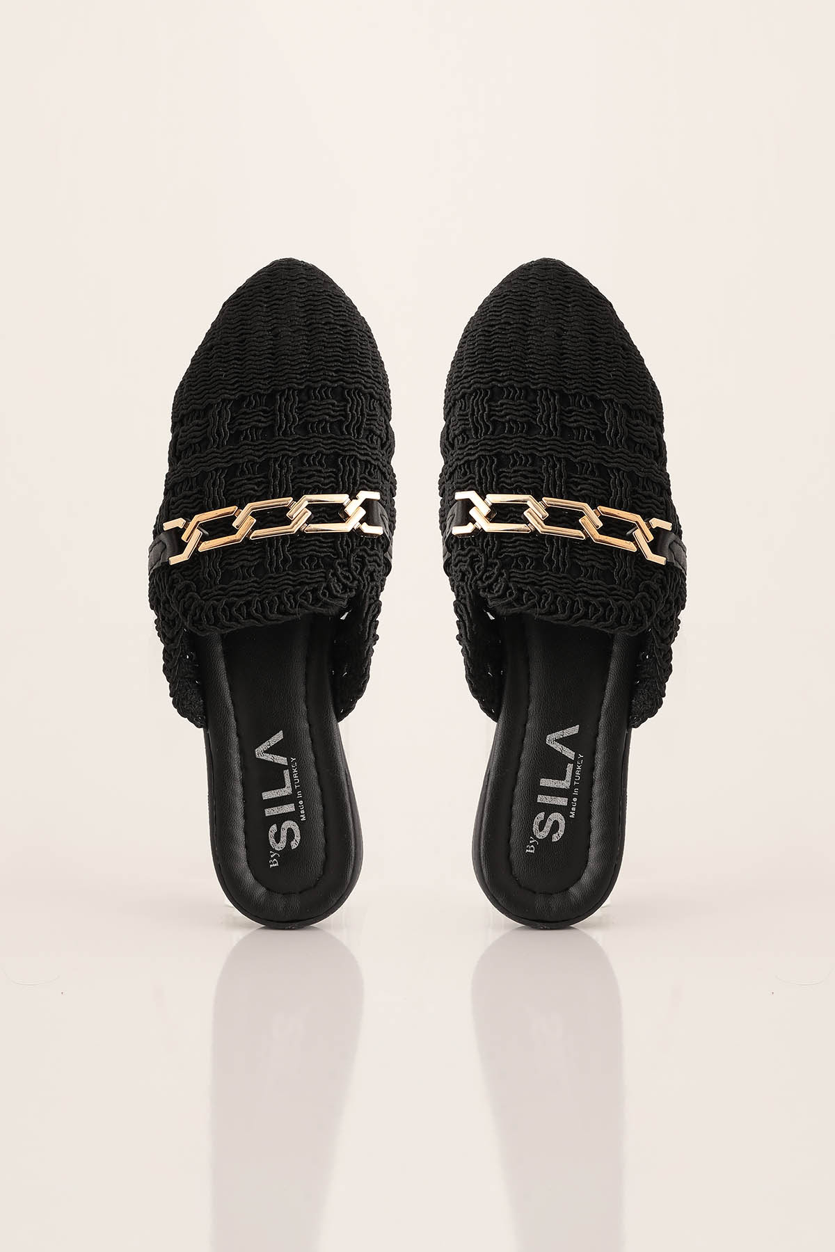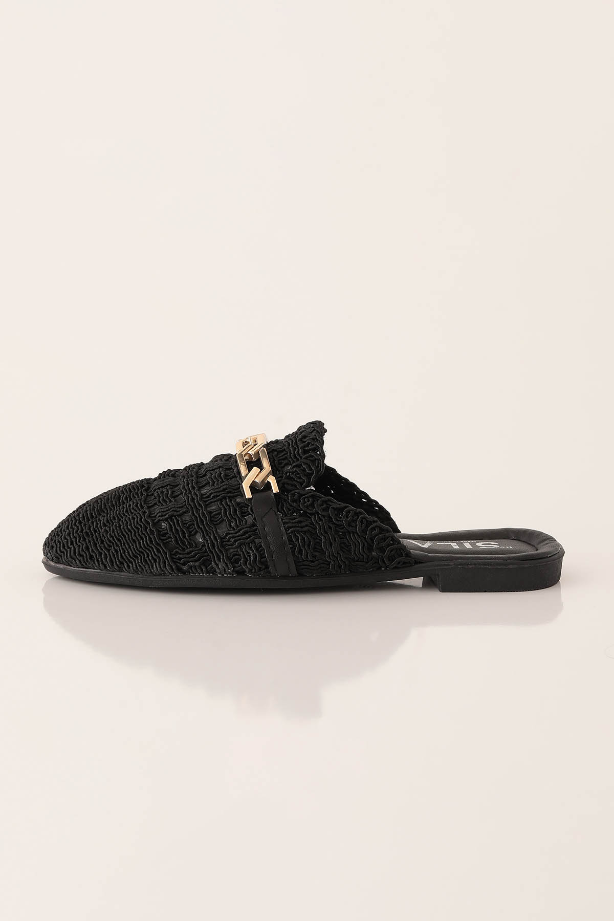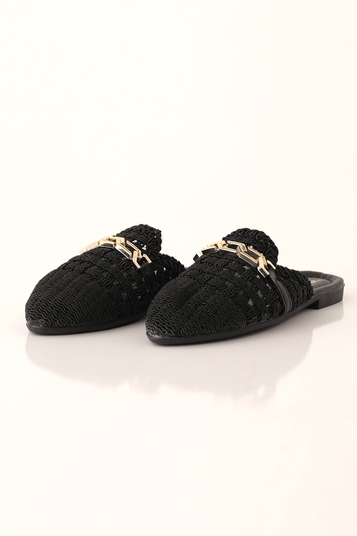 Zincir Detay Hasır Terlik - 7030 Siyah