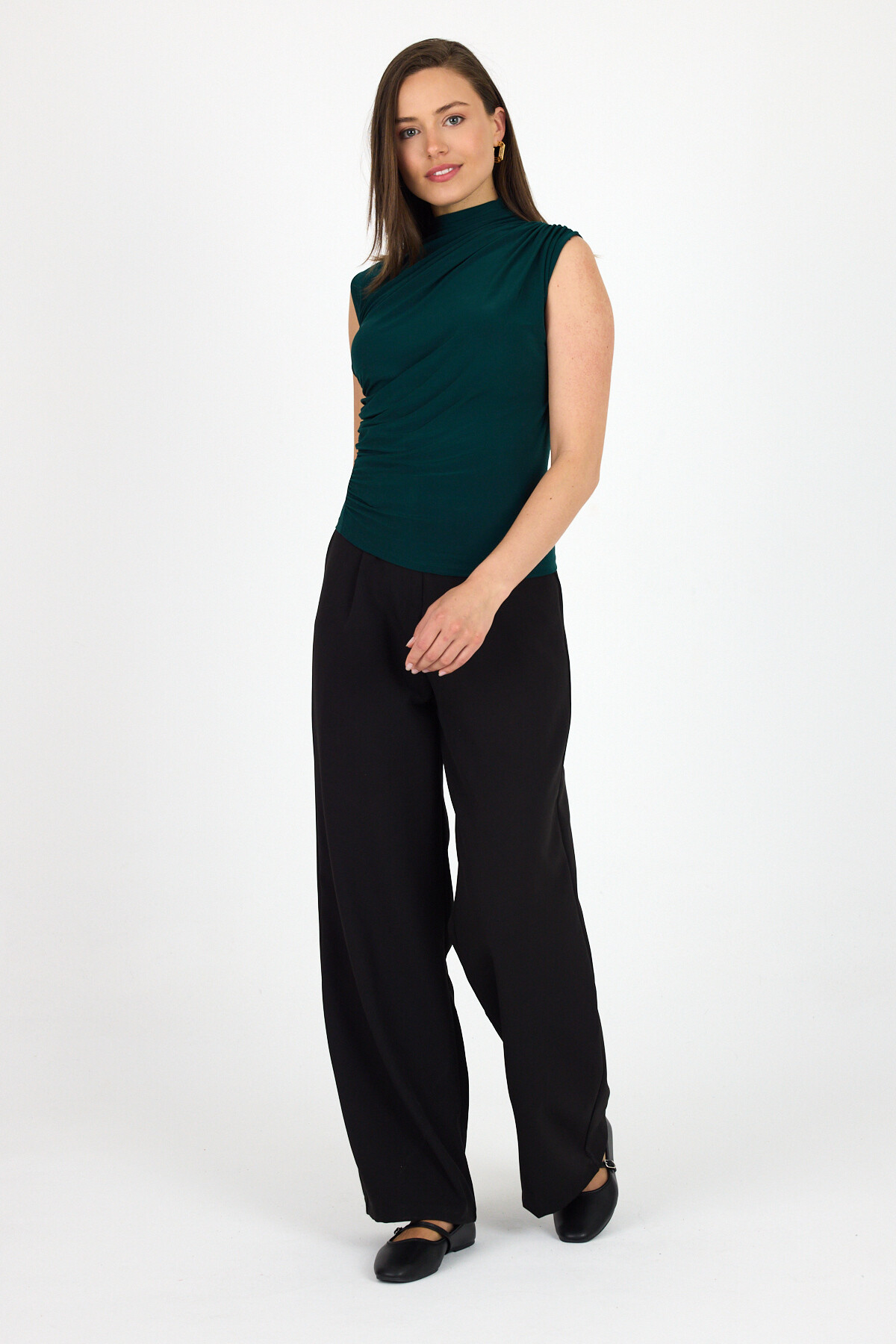 Zümrüt Kolsuz Büzgülü Sandy Bluz 2430